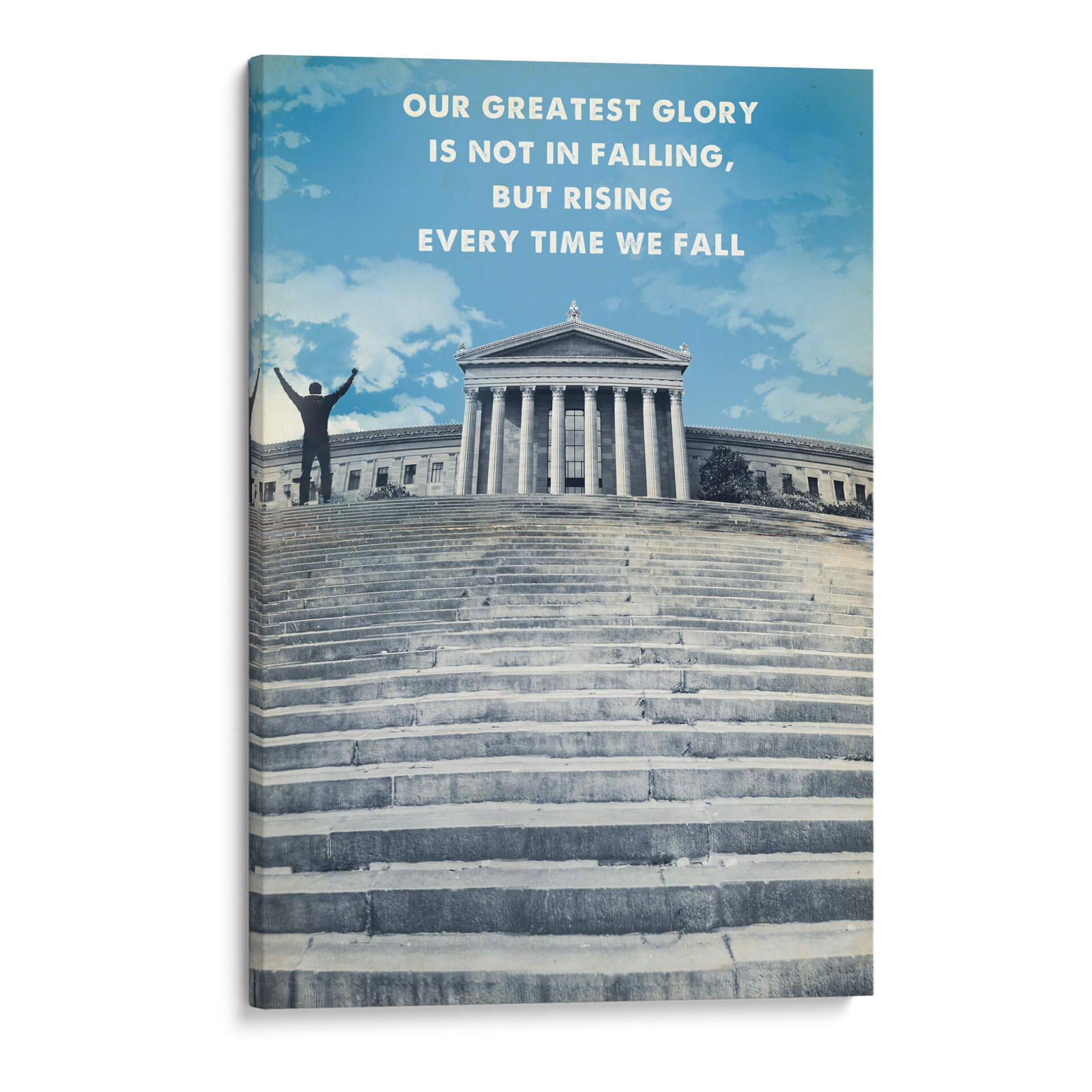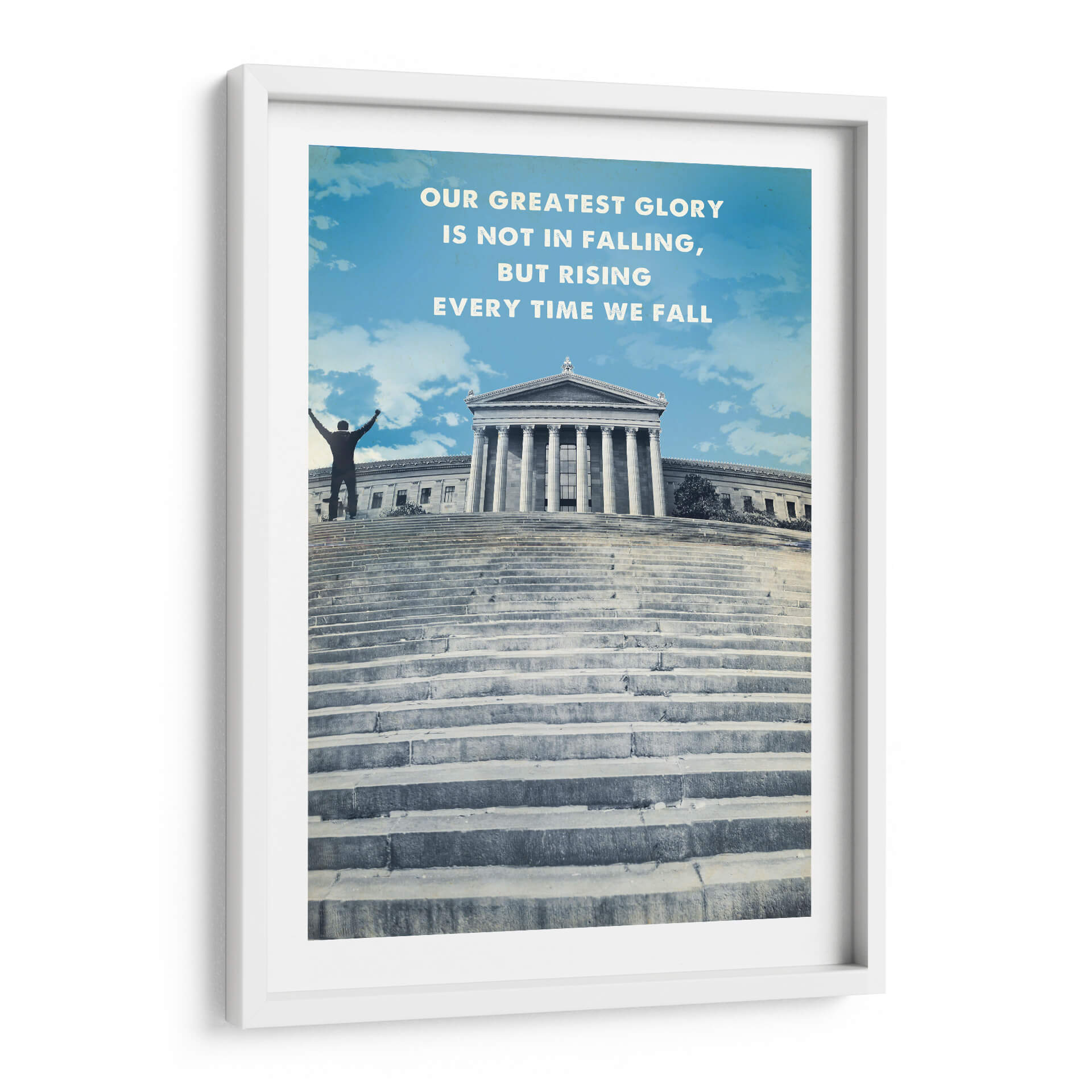 Inspira determinación y resiliencia con este impactante cuadro decorativo "Rocky Film". La obra presenta una icónica escalinata, evocando la famosa escena de "Rocky", coronada por un edificio de arquitectura clásica y un cielo azul vibrante salpicado de nubes. Una silueta solitaria se alza en la cima de las escaleras con los brazos extendidos, un poderoso símbolo de triunfo y superación. La paleta de colores, con predominio de azules celestes y tonos fríos en la arquitectura y las escaleras, crea una atmósfera de seriedad y aspiración. Este cuadro es perfecto para infundir motivación y un espíritu de lucha en cualquier espacio. Ideal para oficinas, estudios de entrenamiento o cualquier rincón de tu hogar donde necesites un recordatorio constante de que la verdadera gloria reside en levantarse después de cada caída. Su estilo gráfico y cinemático lo convierte en una pieza de conversación única. Añade esta obra maestra inspiradora a tu colección y transforma tu entorno en un espacio de fortaleza y perseverancia, atrayendo miradas y transmitiendo un mensaje de empoderamiento a todos tus visitantes. Un homenaje al espíritu indomable que todos llevamos dentro.