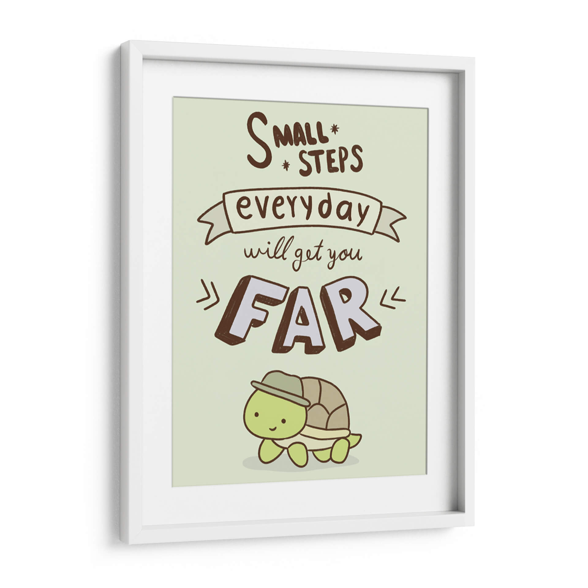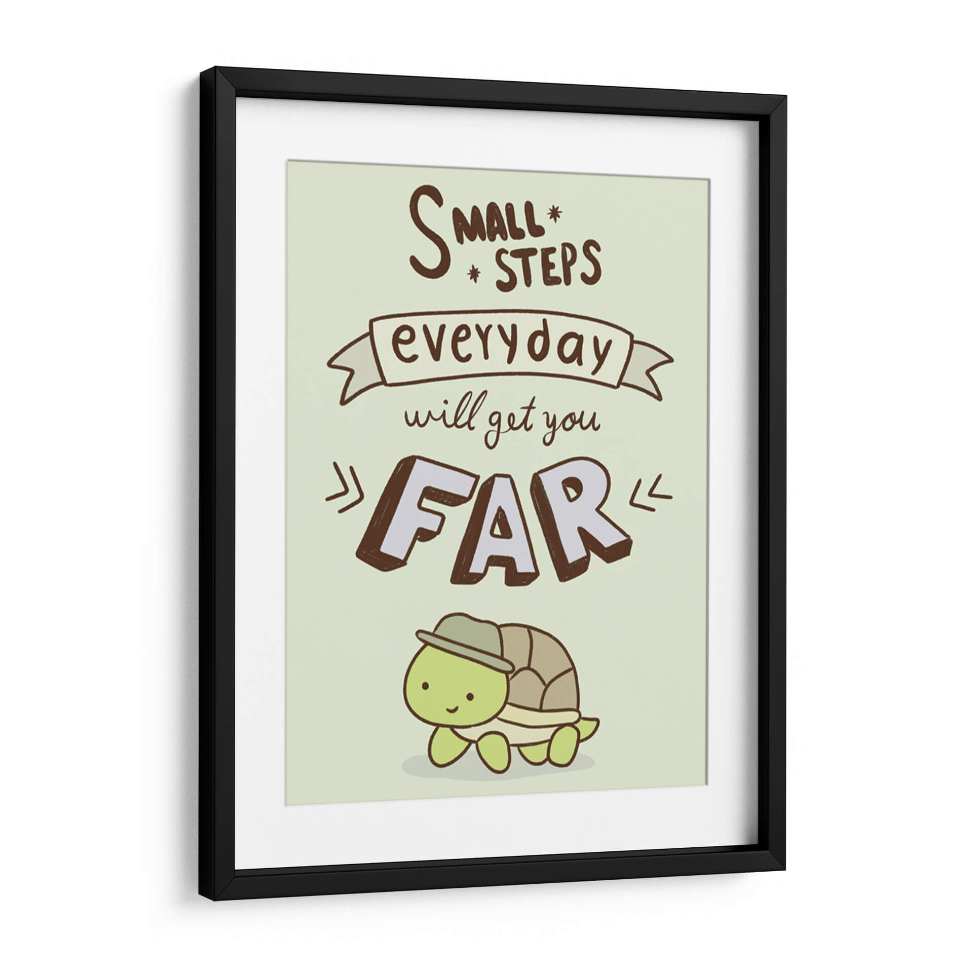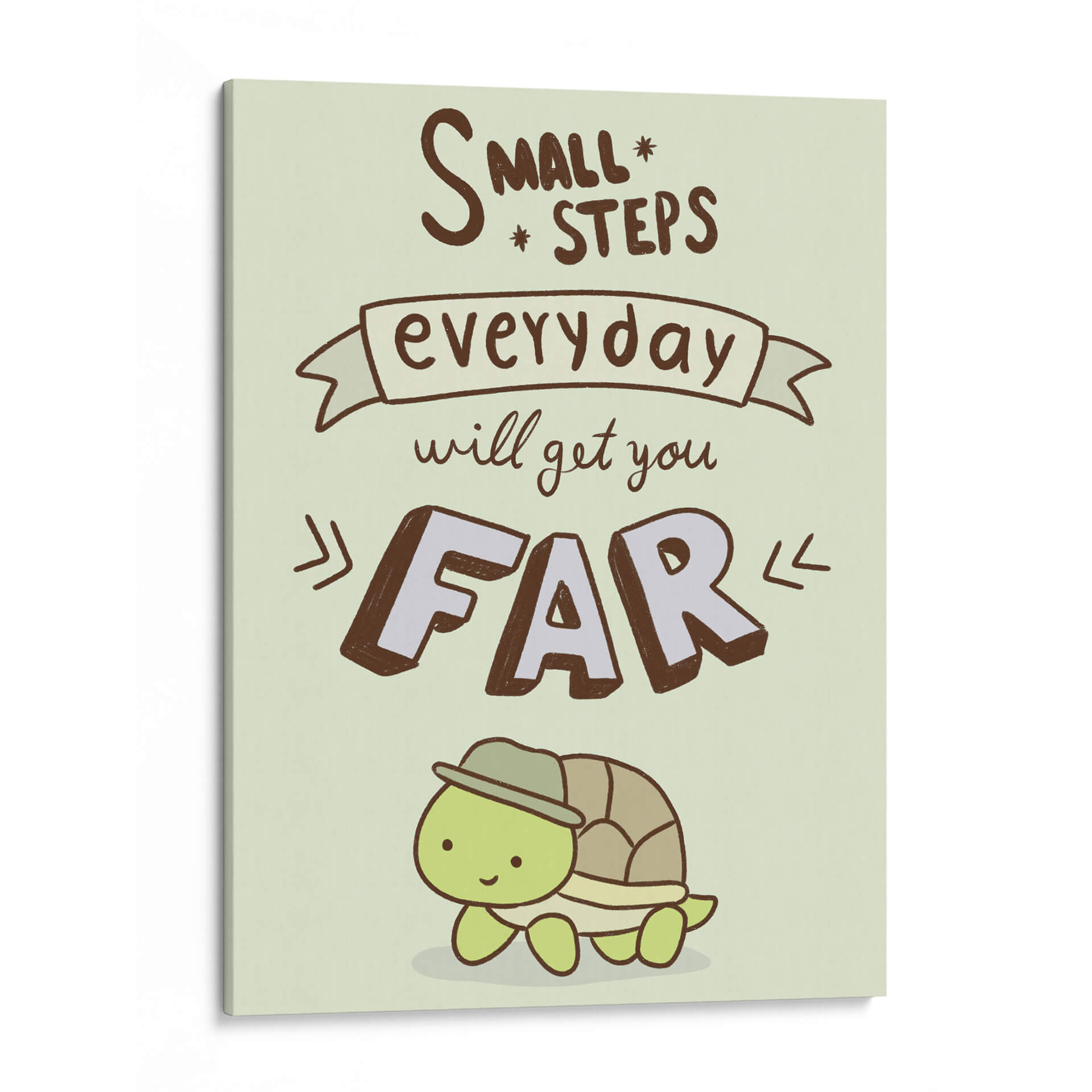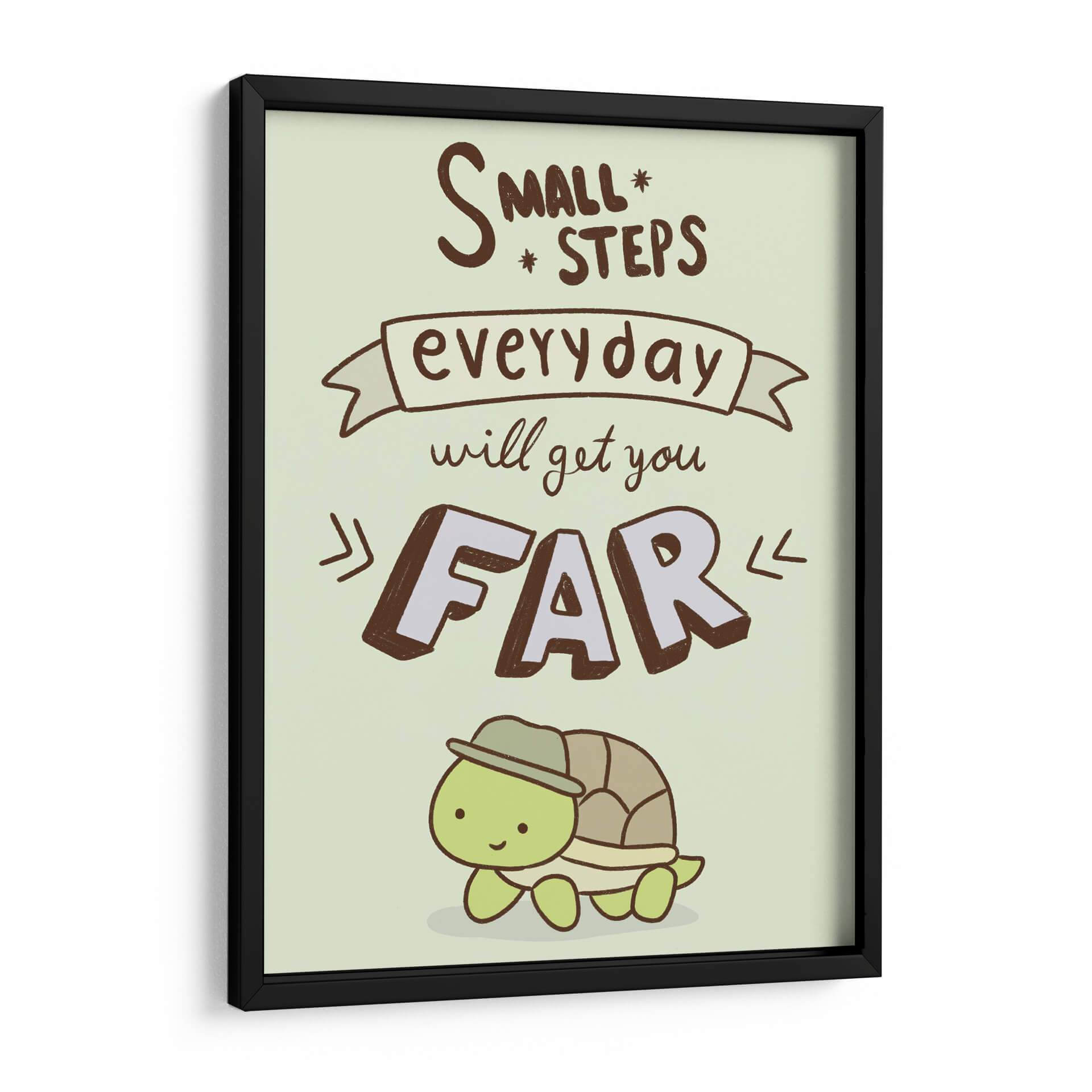 Inyecta una dosis de optimismo y perseverancia en tu espacio con este encantador cuadro decorativo. La obra 'Small steps' de Maita San presenta una adorable tortuga con un sombrero, que camina con determinación bajo una inspiradora frase: "Small steps everyday will get you FAR". La paleta de colores suave, dominada por tonos pastel de verde y marrón, crea una atmósfera de calma y dulzura, ideal para fomentar un ambiente positivo y alentador. El estilo de ilustración infantil y el diseño minimalista de la composición hacen que esta pieza sea versátil, perfecta para añadir un toque de ternura y motivación a la habitación de un niño, una oficina en casa, o cualquier rincón que necesite un recordatorio de que los pequeños progresos conducen a grandes logros. Este cuadro es más que una simple decoración; es un símbolo visual de la importancia de la constancia y la paciencia en el camino hacia nuestras metas, transmitiendo un mensaje poderoso de esperanza y resiliencia. Añade esta obra única a tu colección y deja que su energía positiva ilumine tu día a día, recordándote la fuerza que reside en cada paso, por pequeño que sea.
