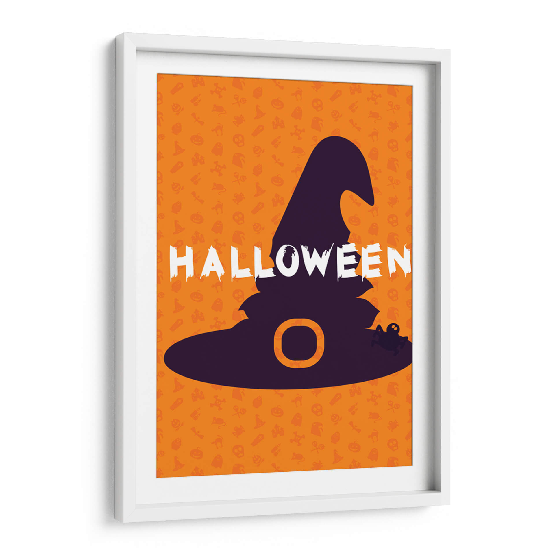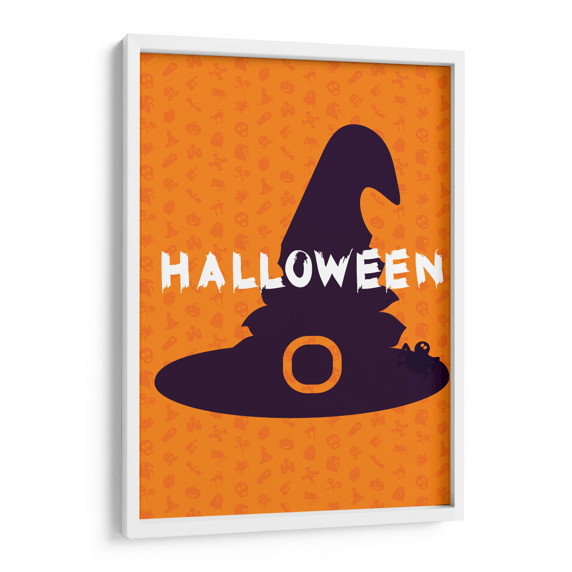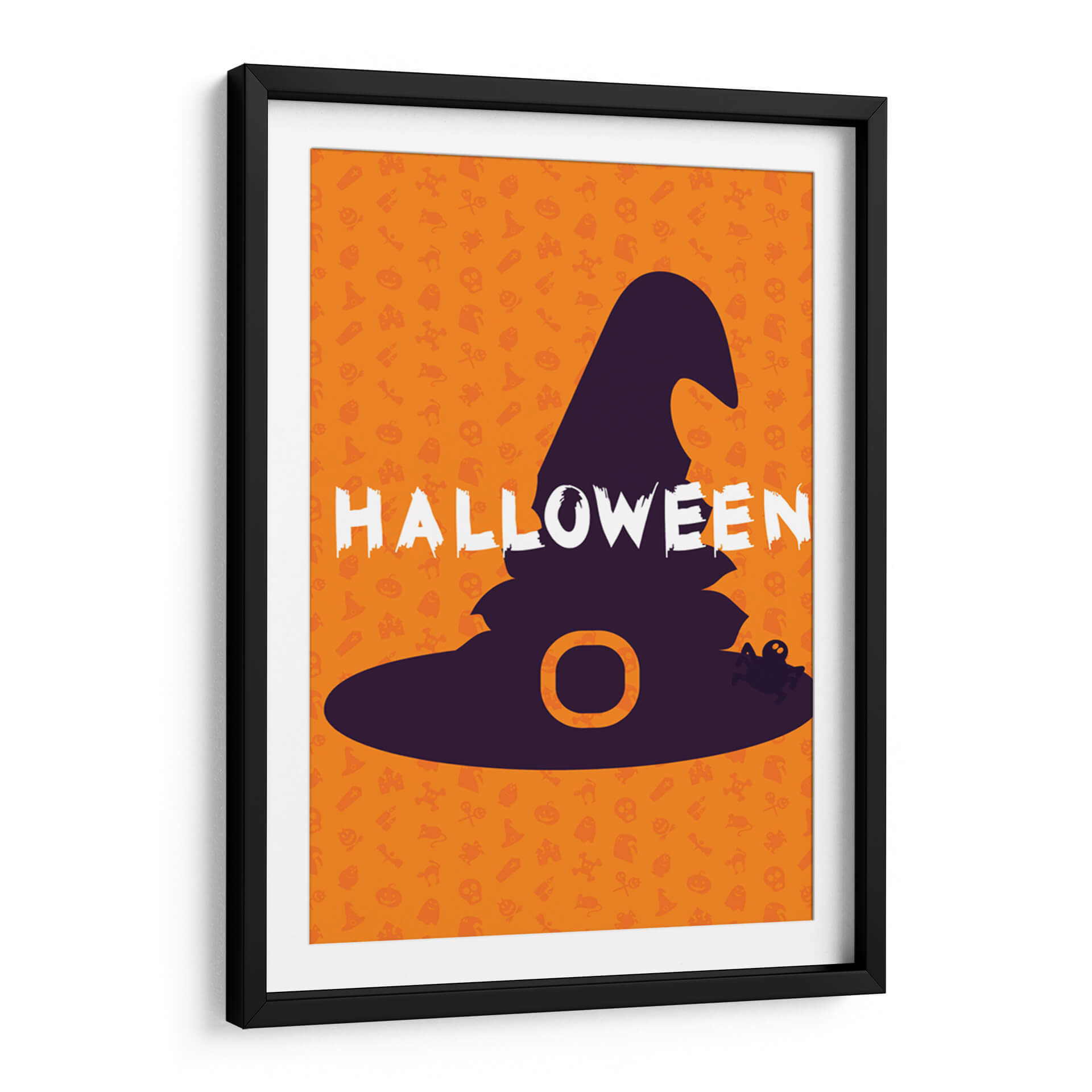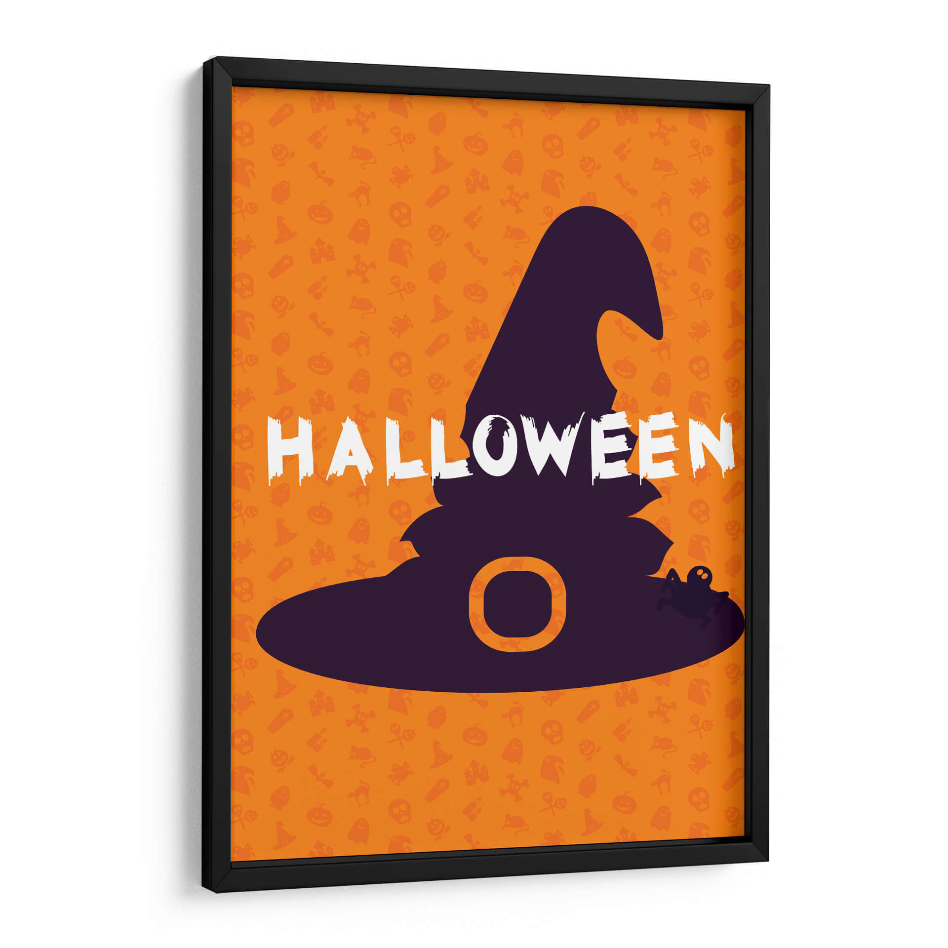 Celebra la temporada espeluznante con nuestro cautivador cuadro decorativo 'Sombrero de bruja espeluznante'. Esta obra de arte digital presenta un llamativo sombrero de bruja morado oscuro sobre un vibrante fondo naranja, adornado con un patrón sutil pero festivo de iconos de Halloween como fantasmas, calabazas y telarañas. La palabra 'HALLOWEEN' en letras blancas audaces añade un toque juguetón y directo. Un pequeño y simpático fantasma sentado en el ala del sombrero y un búho de aspecto misterioso completan la escena, inyectando un aire de diversión y encanto a esta pieza. Su composición gráfica y el uso de colores contrastantes, naranja y morado, la hacen destacar y capturar la atención. Este cuadro es la elección perfecta para infundir un espíritu festivo en cualquier espacio, desde la sala de estar hasta una fiesta temática. Es ideal para añadir un toque de alegría y misterio a tu decoración de otoño o para exhibir durante todo el mes de octubre. Su diseño moderno y temático lo convierte en un punto focal ideal para hogares, oficinas o cualquier lugar que busque un toque de magia de Halloween. Transforma tu entorno con este diseño único y lleno de carácter.