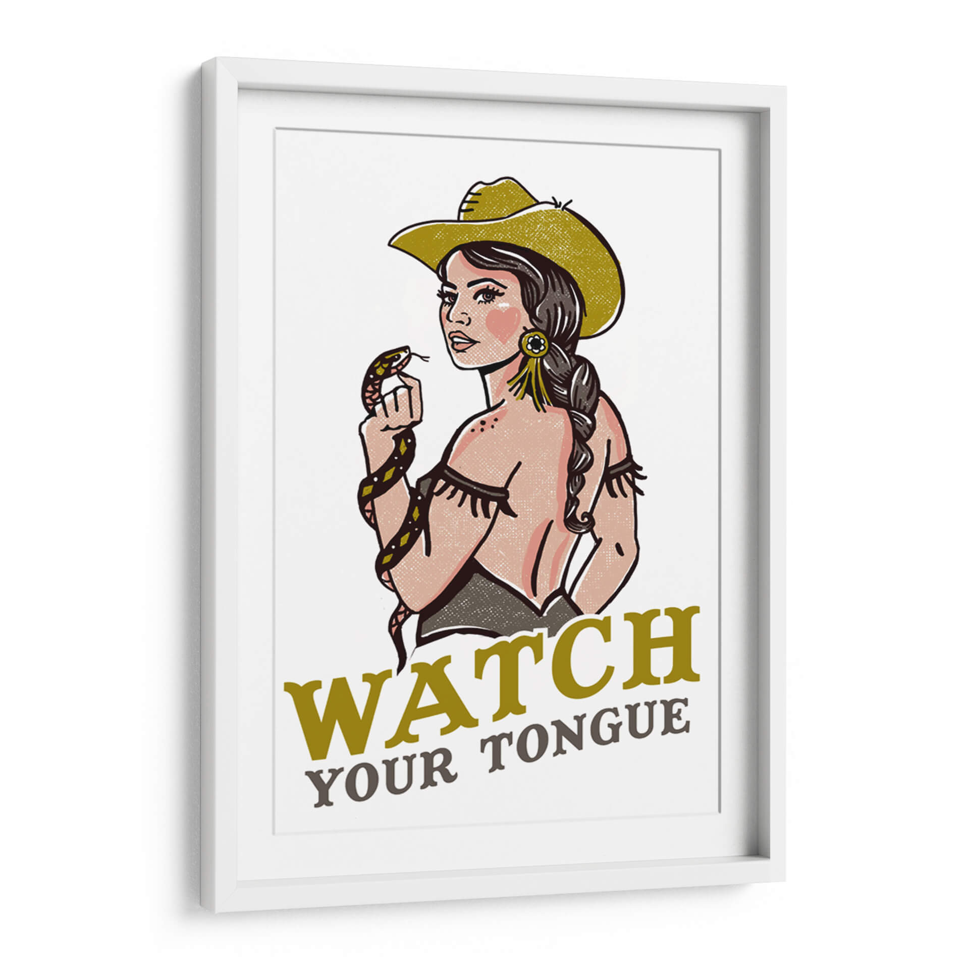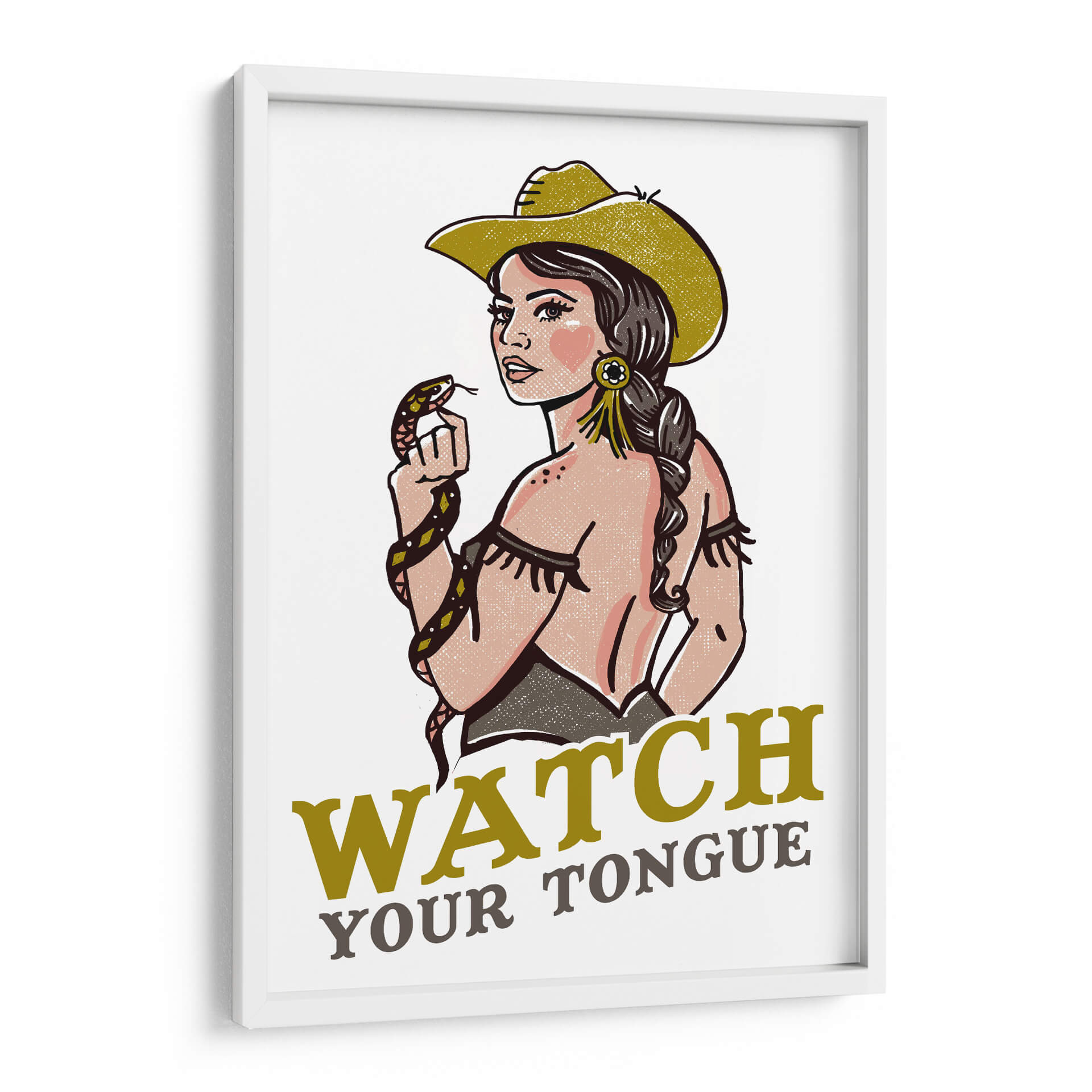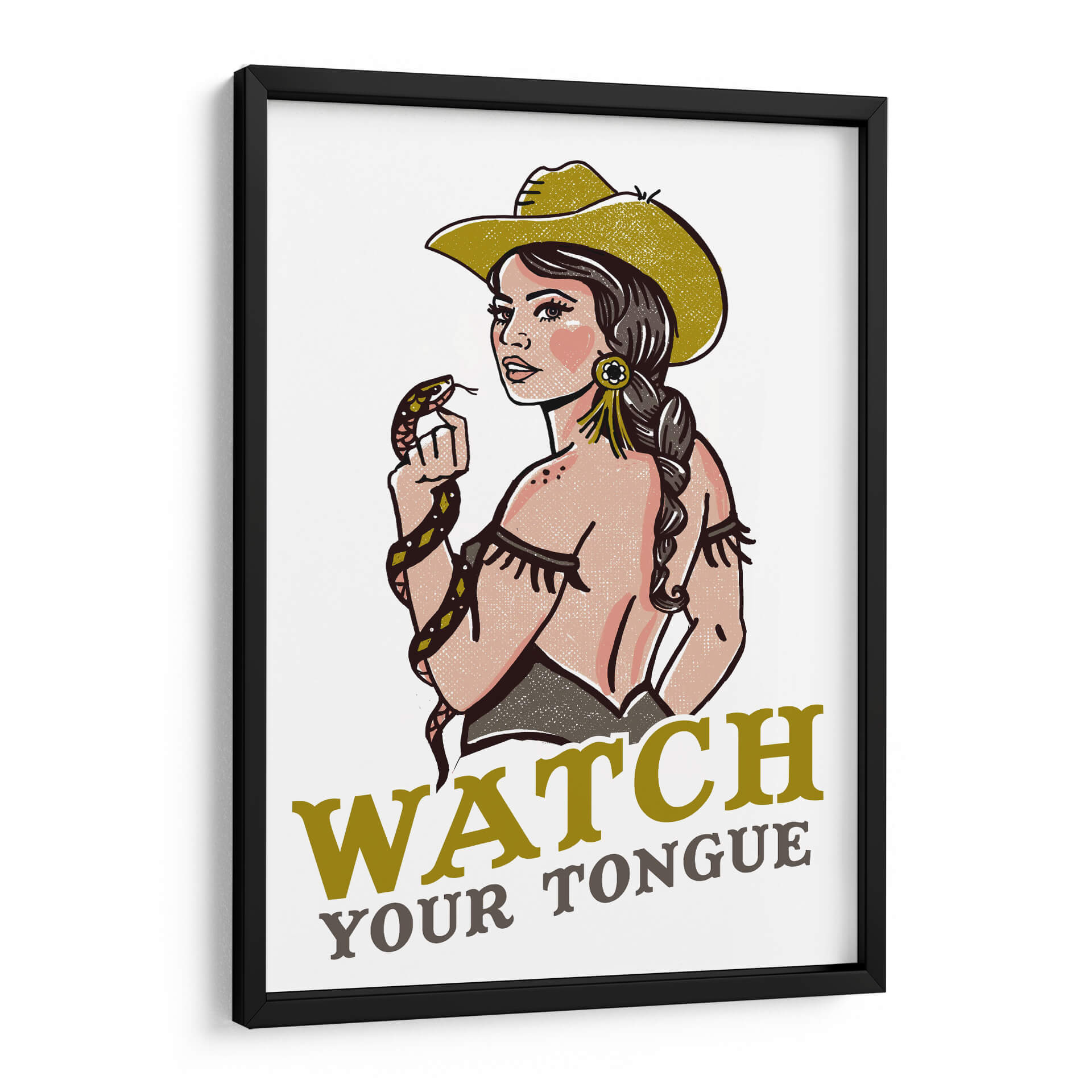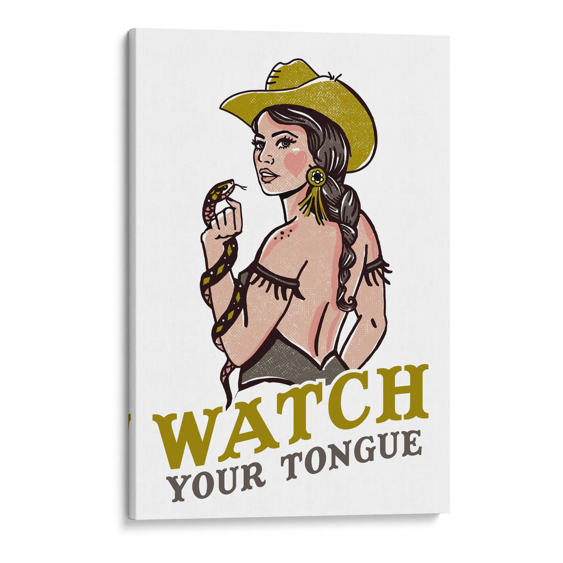 Inyecta audacia y carácter a tu espacio con este impactante cuadro decorativo "Watch Your Tongue, vaquera pin-up ruda, una serpiente de cascabel". Esta obra de arte, creada por The Whiskey Ginger, presenta una figura femenina con un sombrero de vaquero y una serpiente enroscada en su mano, transmitiendo un mensaje de fuerza y confianza. La paleta de colores, dominada por tonos tierra y acentos vibrantes, junto con un estilo que evoca el arte retro y el pin-up, crea una atmósfera única y cautivadora. El diseño gráfico distintivo, con líneas definidas y una composición centralizada, asegura que esta pieza se convierta en el punto focal de cualquier habitación. Ideal para quienes buscan añadir un toque de rebeldía y personalidad a su hogar u oficina, este cuadro es perfecto para salas de estar modernas, estudios o cualquier espacio que necesite un acento audaz y memorable. Su estilo versátil lo hace fácil de integrar en diversas decoraciones, desde lo rústico hasta lo contemporáneo, aportando una narrativa visual que invita a la reflexión y al empoderamiento. Añade esta pieza única a tu colección y transforma tus paredes con arte que habla.