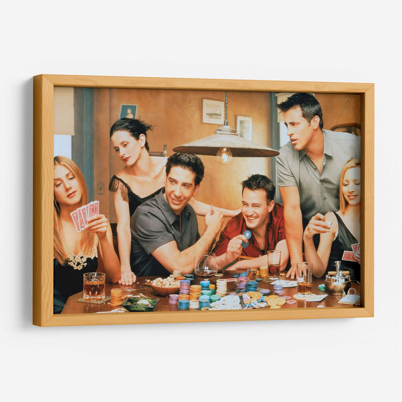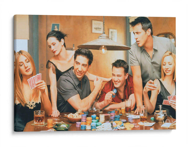 Sumérgete en la atmósfera vibrante de una partida de póker con este cautivador cuadro decorativo. La obra, titulada 'The One With All The Poker', captura un momento íntimo y lleno de expectación entre un grupo de amigos, cada uno inmerso en la estrategia del juego. La paleta de colores cálidos, dominada por tonos tierra y acentos de colores vivos en las fichas de póker y las cartas, crea un ambiente acogedor y lleno de energía. Las expresiones faciales de los personajes transmiten una mezcla de concentración, diversión y camaradería, invitando al espectador a formar parte de la escena. La composición, con los personajes reunidos alrededor de una mesa dispuesta para el juego, genera una sensación de conexión y dinamismo. Este cuadro decorativo es ideal para añadir un toque de personalidad y un punto focal de conversación a tu sala de estar, estudio u oficina. Su estilo narrativo y realista lo convierte en una pieza versátil, perfecta para espacios que buscan reflejar momentos de ocio, amistad y estrategia. Transforma tu pared en una ventana a una historia intrigante, añadiendo carácter y estilo a tu decoración.
