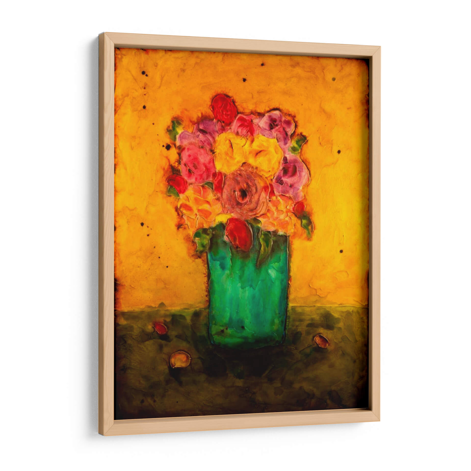 Celebra la vitalidad y la calidez con "Buenos Días Sol", un cuadro decorativo que irradia alegría y energía. Esta obra captura un vibrante ramo de flores en tonos rosados, rojos y amarillos, dispuestos en un jarrón de un profundo verde esmeralda. El fondo, bañado en un intenso color ocre y salpicado sutilmente con texturas y puntos oscuros, evoca la luz y el calor de un día soleado, creando un contraste dinámico con la serenidad floral. La técnica empleada, con pinceladas visibles y una textura rica, otorga profundidad y carácter a la pieza, acercándose a un estilo expresionista abstracto. "Buenos Días Sol" es ideal para infundir vida y optimismo en cualquier espacio, ya sea una sala de estar moderna, un comedor acogedor o un estudio personal. Transforma tu hogar en un refugio de color y luz con este evocador cuadro decorativo que promete capturar miradas y conversaciones. Añade un toque de naturaleza estilizada y la promesa de un nuevo día a tu decoración. Es una elección perfecta para quienes buscan arte contemporáneo que comunique felicidad y vitalidad.
