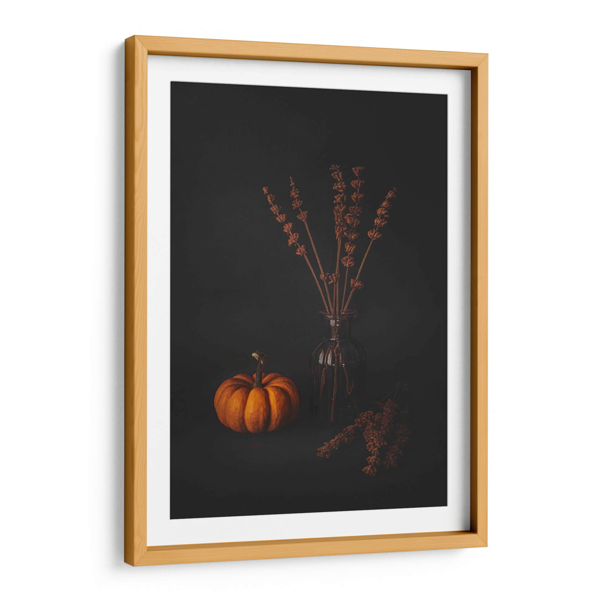 Aporta una atmósfera de serenidad otoñal y elegancia rústica a tu hogar con "Lavandas y la Calabaza", una cautivadora obra de arte del artista Cicek Kiral. Esta pieza presenta una exquisita composición de una vibrante calabaza anaranjada junto a un jarrón de cristal oscuro que contiene delicadas espigas de lavanda seca. El telón de fondo oscuro y profundo realza los tonos cálidos y terrosos de la calabaza y la lavanda, creando un efecto visual impactante y a la vez sutil. La iluminación suave y la atención al detalle transmiten una sensación de calma y contemplación, evocando la belleza efímera de la naturaleza y la calidez de la temporada de otoño. Este cuadro decorativo es ideal para añadir un toque de sofisticación natural a cualquier espacio, desde una acogedora sala de estar hasta un tranquilo dormitorio o un elegante comedor. Su estilo atemporal y su paleta de colores rica y armoniosa lo convierten en una adición versátil para una variedad de estilos decorativos, desde el rústico moderno hasta el contemporáneo. Permite que esta obra maestra visual te transporte a un momento de paz y aprecio por las simples maravillas del mundo natural. Es la elección perfecta para quienes buscan arte que inspire tranquilidad y celebre la belleza de las estaciones.