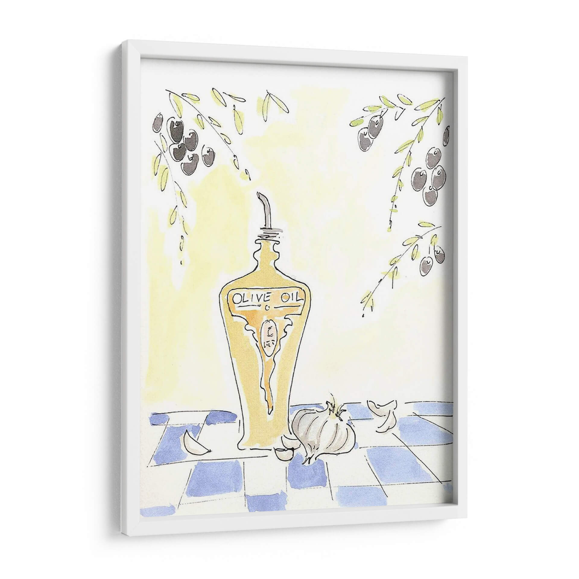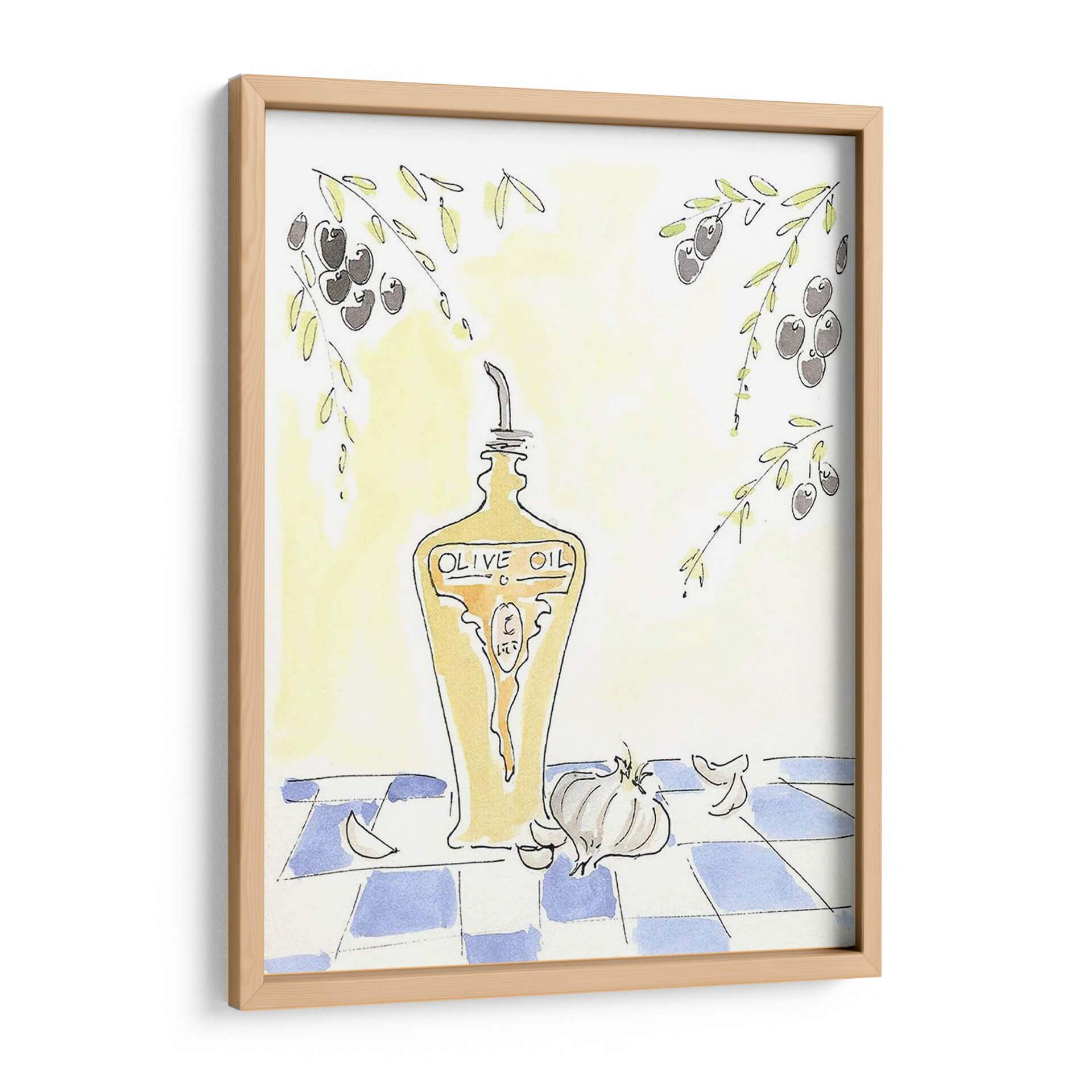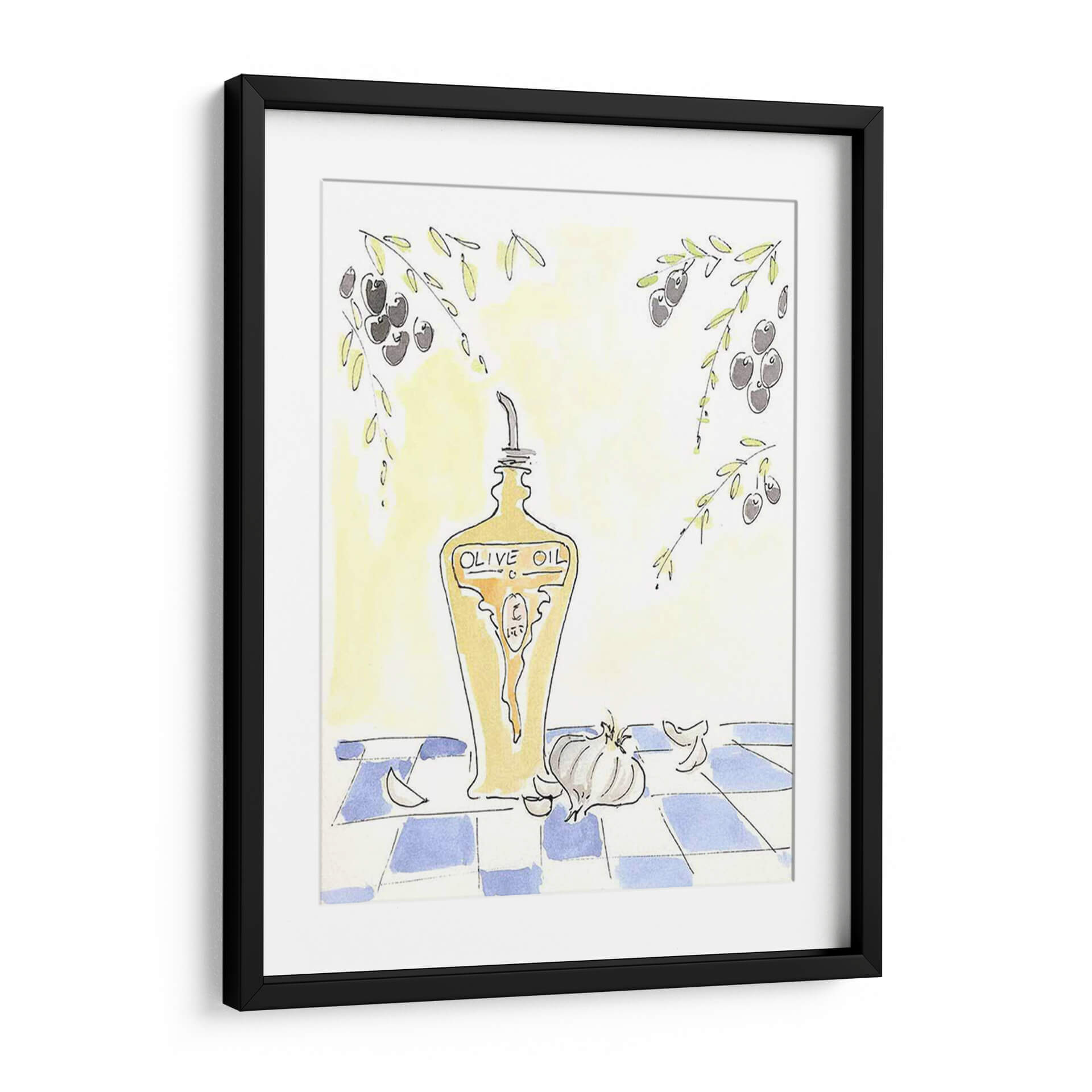 Transforma tu cocina o comedor con la encantadora obra de arte "Olio Della Cucina Iii" de Alan Paul. Esta pieza evoca una sensación de calidez y autenticidad mediterránea, presentando una botella de aceite de oliva rústica, ajo fresco y delicadas ramas de olivo sobre un mantel a cuadros. La paleta de colores, dominada por tonos amarillos suaves, ocres y toques de verde y morado, crea una atmósfera acogedora y rústica. El estilo de ilustración, con trazos de acuarela y contornos definidos, aporta un toque artesanal y genuino. Ideal para espacios que buscan reflejar un estilo de vida hogareño y una apreciación por los ingredientes frescos y la cocina tradicional. Este cuadro decorativo es perfecto para añadir un acento de color y carácter a tu cocina, comedor o incluso a una acogedora taberna. Imagina la frescura y el sabor del Mediterráneo cobrando vida en tus paredes con esta hermosa ilustración culinaria.