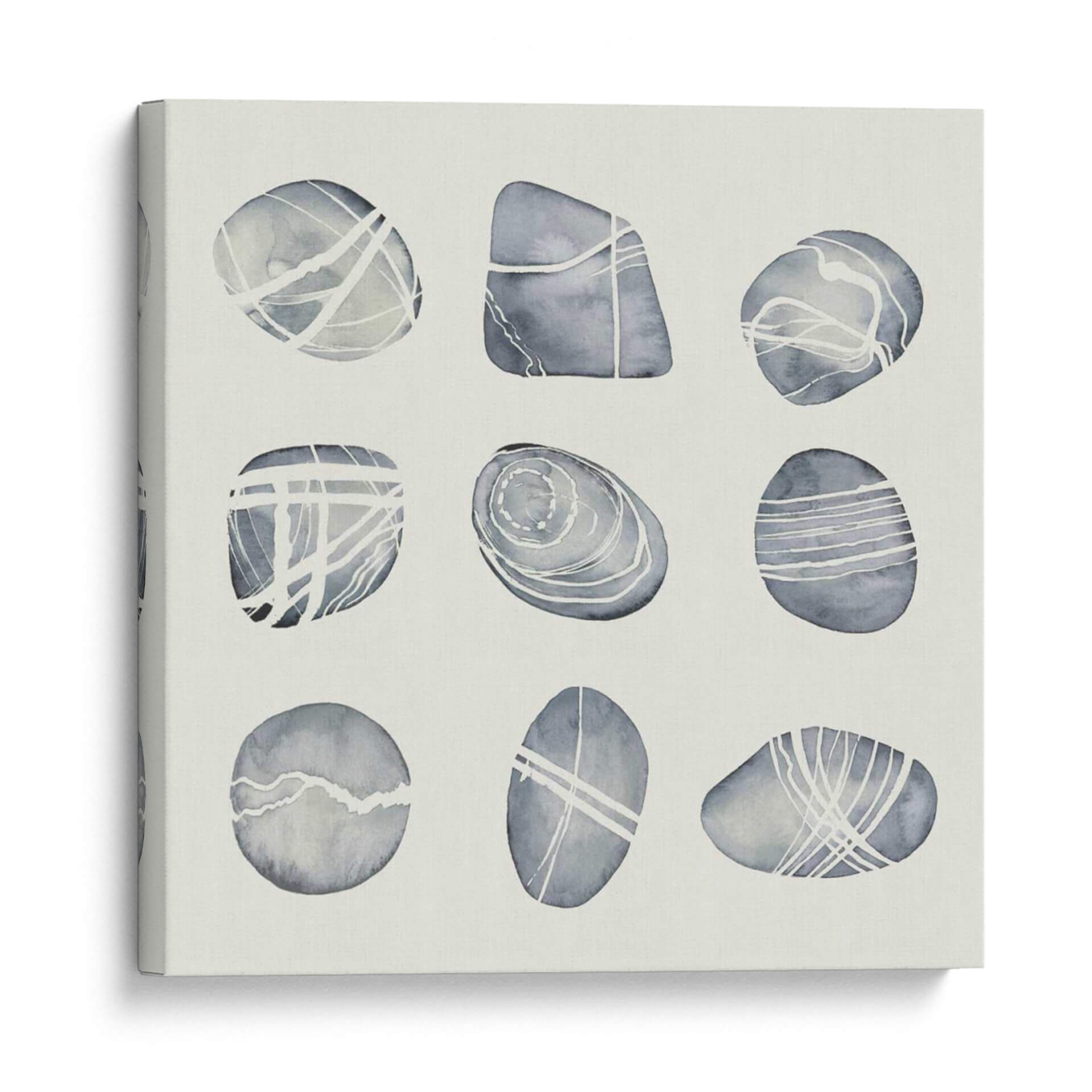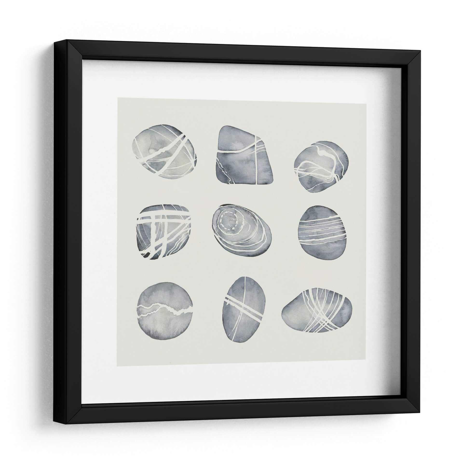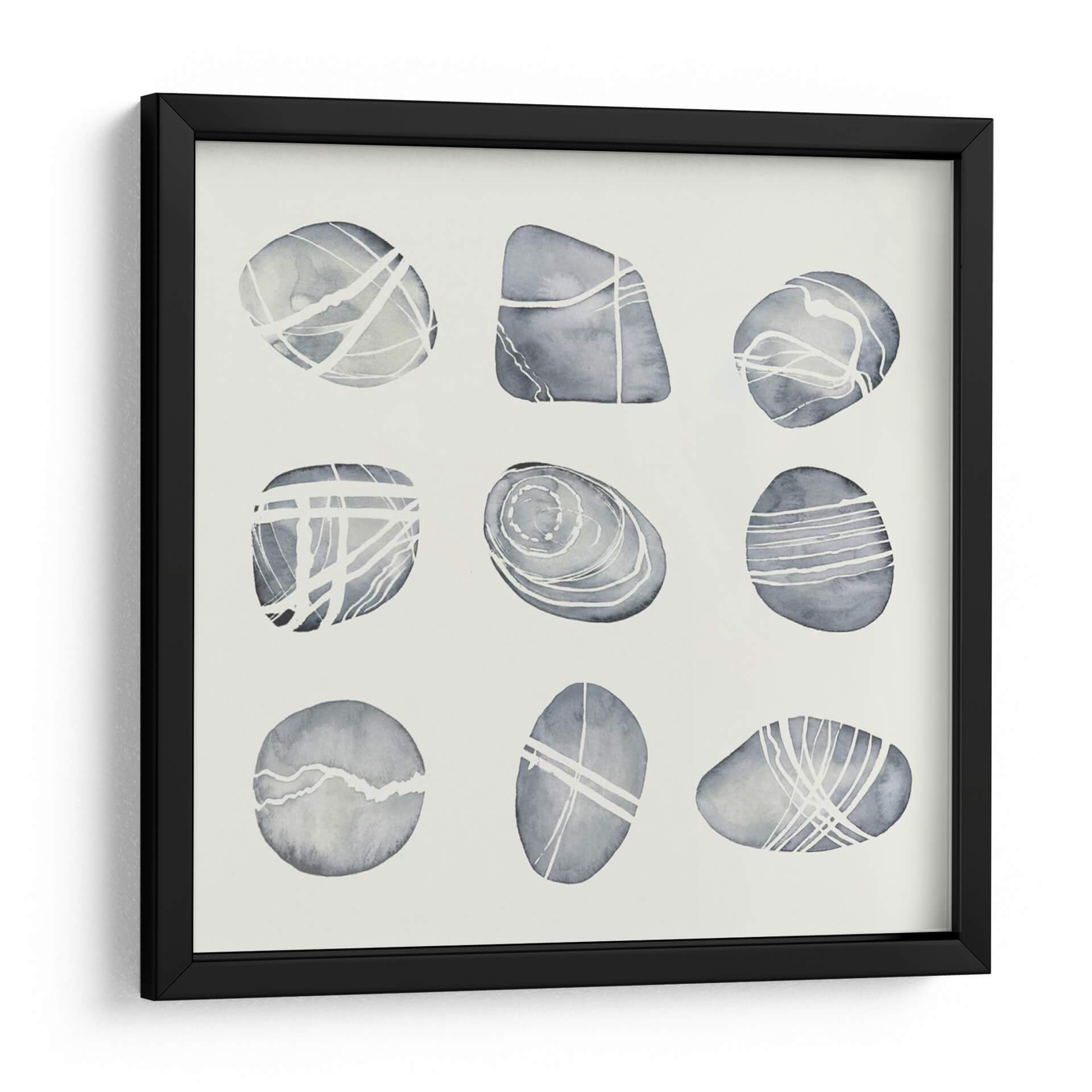 Sumérgete en la serenidad y la belleza natural con "Río Desgastado II" de Grace Popp, una obra de arte que captura la esencia de guijarros suaves y pulidos por el tiempo. A través de una paleta de tonos grises y blancos, esta pieza evoca una atmósfera de calma y equilibrio, perfecta para transformar cualquier espacio en un santuario de paz. La técnica acuarela y las líneas delicadas que adornan cada forma de guijarro sugieren el fluir del agua y la erosión paciente de la naturaleza, creando una composición visualmente atractiva y a la vez contemplativa. Este cuadro decorativo es ideal para quienes buscan añadir un toque de elegancia sutil y conexión con elementos naturales a su hogar u oficina. Su diseño minimalista y contemporáneo se adapta a una variedad de estilos decorativos, desde el escandinavo hasta el moderno, aportando una sensación de orden y armonía. Imagina cómo este lienzo puede convertirse en el punto focal de tu sala de estar, un recordatorio sereno en tu dormitorio o una fuente de inspiración en tu estudio. "Río Desgastado II" no es solo una obra de arte, es una invitación a la quietud y a la apreciación de la belleza en sus formas más puras y simples, añadiendo profundidad y carácter a tus paredes.