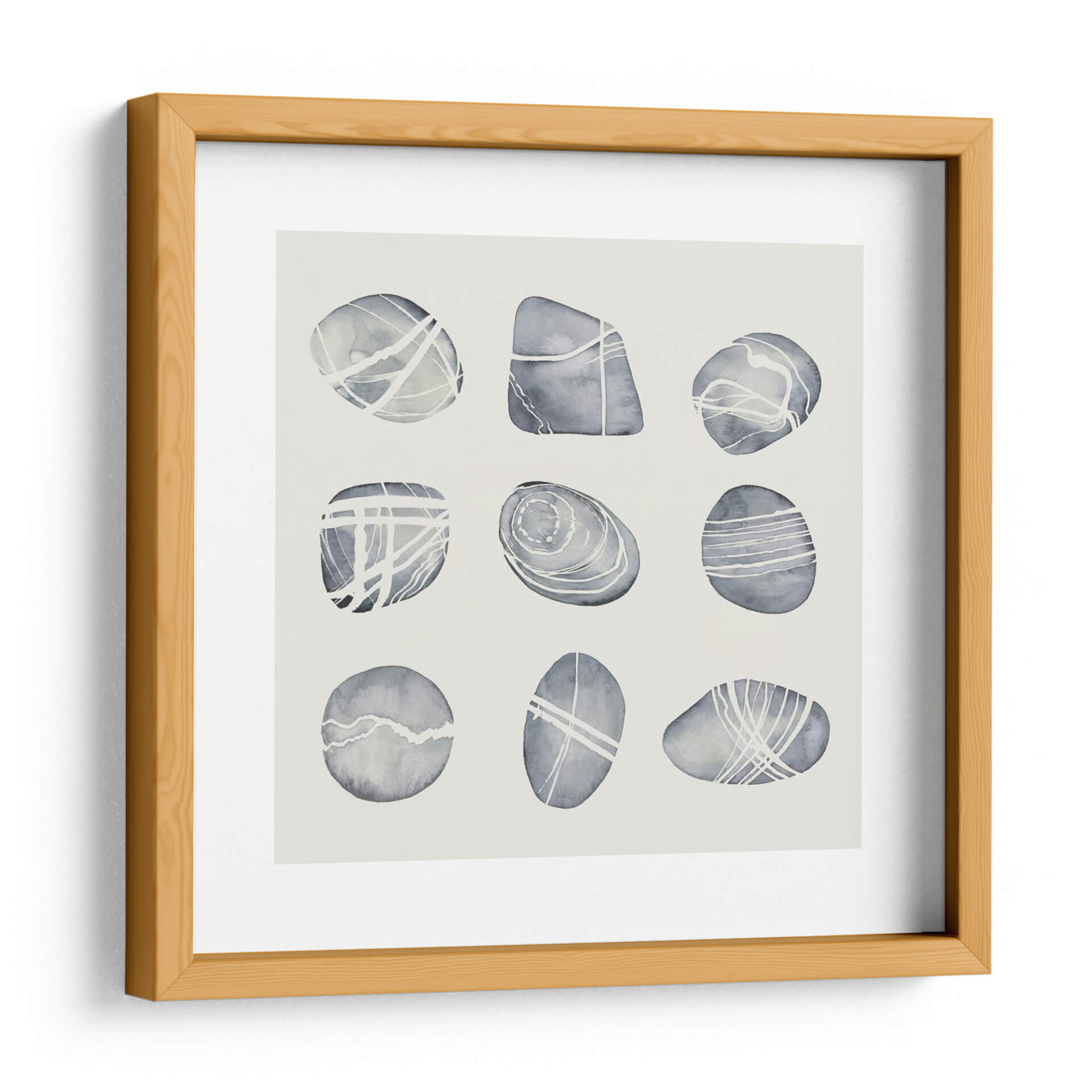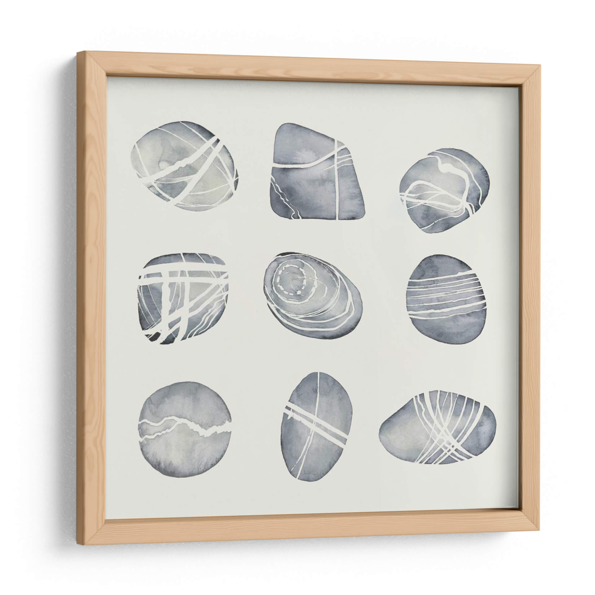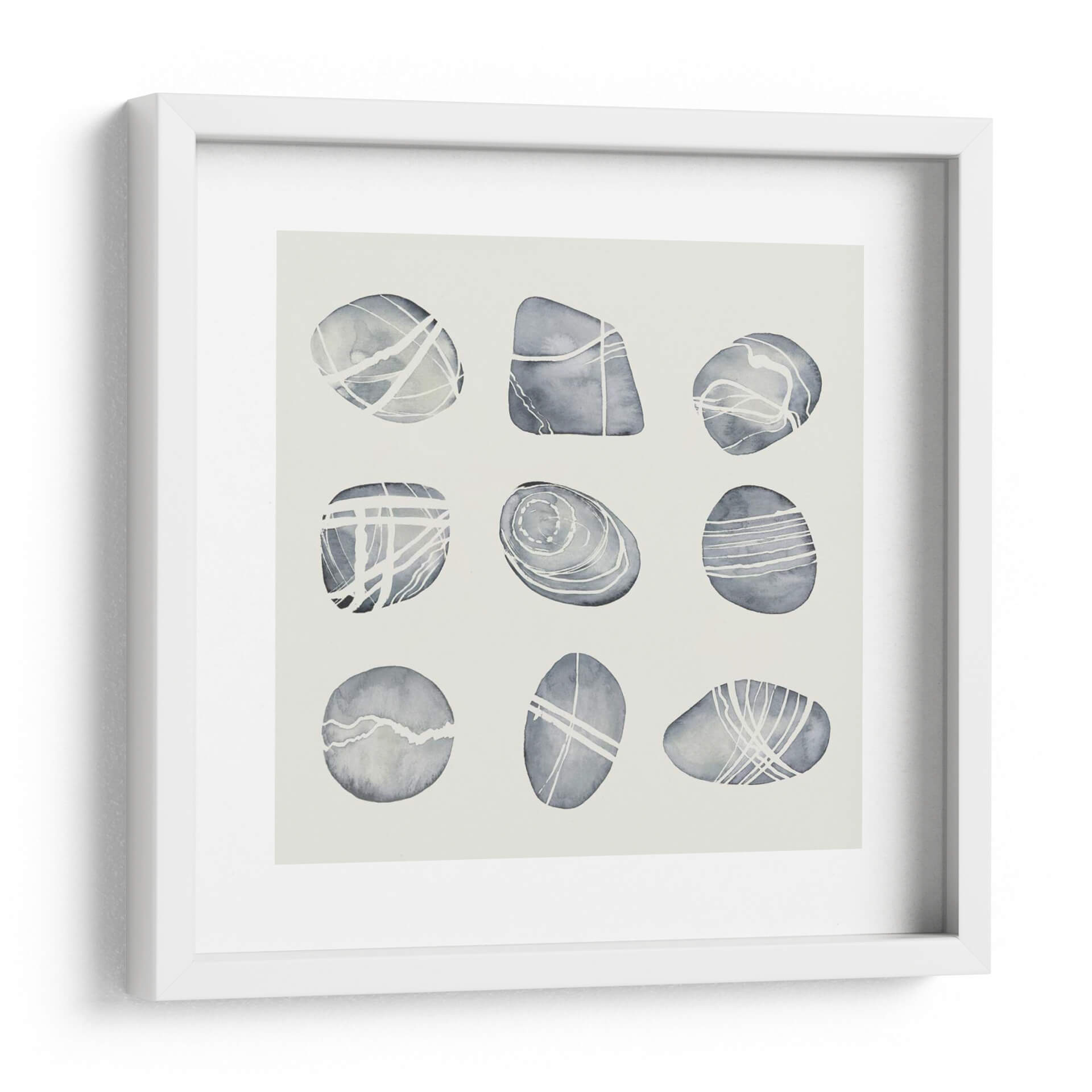 Sumérgete en la serenidad y la belleza natural con "Río Desgastado II" de Grace Popp, una obra de arte que captura la esencia de guijarros suaves y pulidos por el tiempo. A través de una paleta de tonos grises y blancos, esta pieza evoca una atmósfera de calma y equilibrio, perfecta para transformar cualquier espacio en un santuario de paz. La técnica acuarela y las líneas delicadas que adornan cada forma de guijarro sugieren el fluir del agua y la erosión paciente de la naturaleza, creando una composición visualmente atractiva y a la vez contemplativa. Este cuadro decorativo es ideal para quienes buscan añadir un toque de elegancia sutil y conexión con elementos naturales a su hogar u oficina. Su diseño minimalista y contemporáneo se adapta a una variedad de estilos decorativos, desde el escandinavo hasta el moderno, aportando una sensación de orden y armonía. Imagina cómo este lienzo puede convertirse en el punto focal de tu sala de estar, un recordatorio sereno en tu dormitorio o una fuente de inspiración en tu estudio. "Río Desgastado II" no es solo una obra de arte, es una invitación a la quietud y a la apreciación de la belleza en sus formas más puras y simples, añadiendo profundidad y carácter a tus paredes.