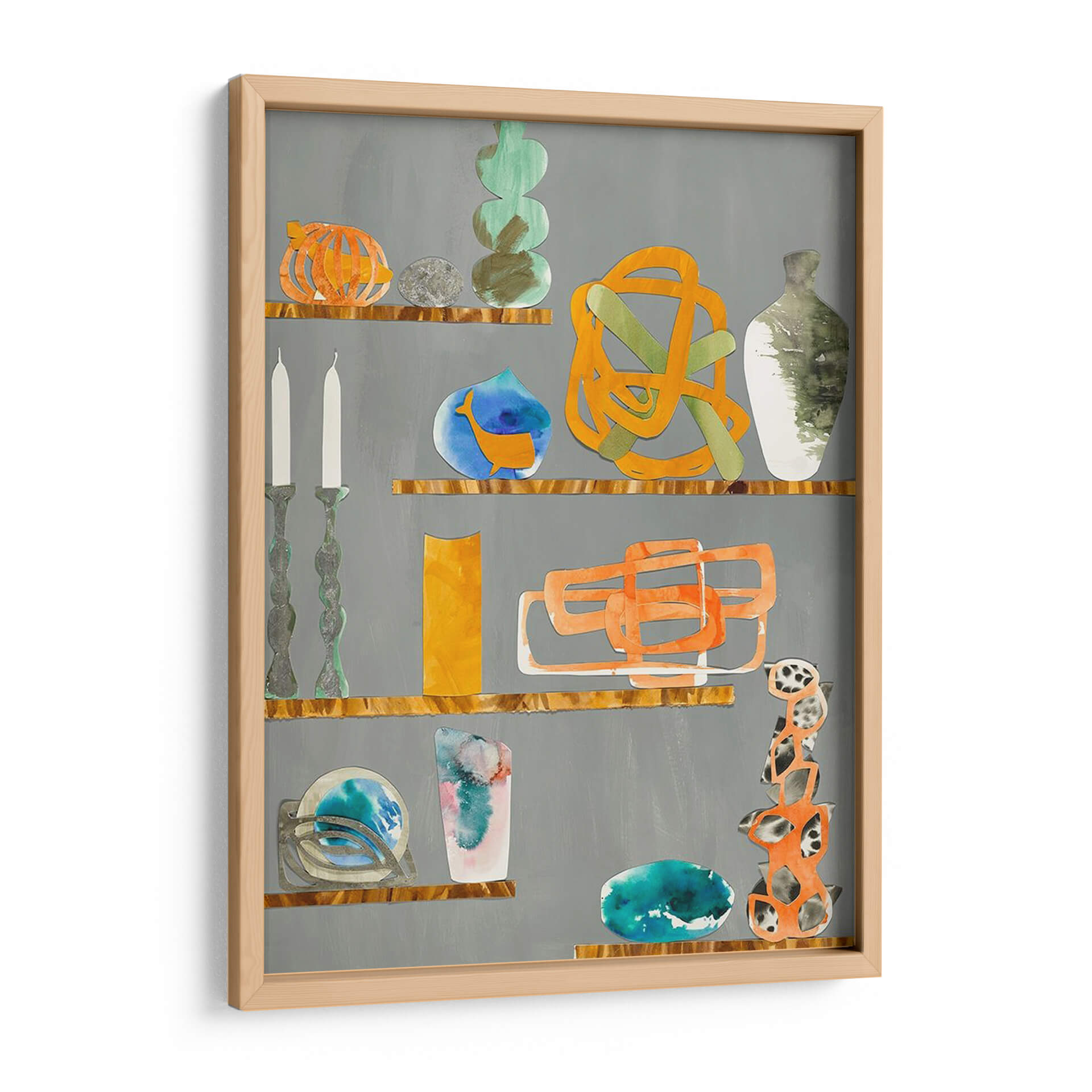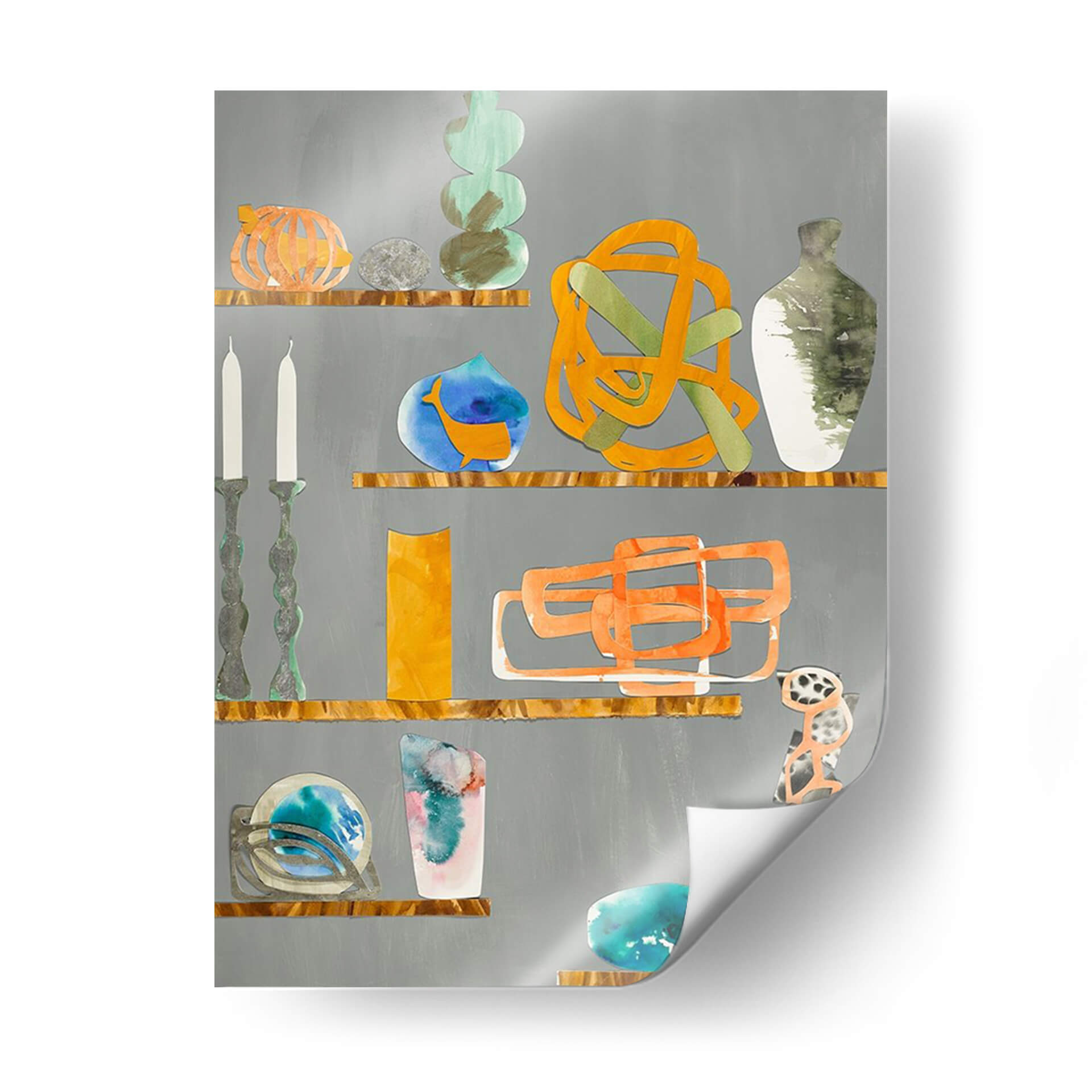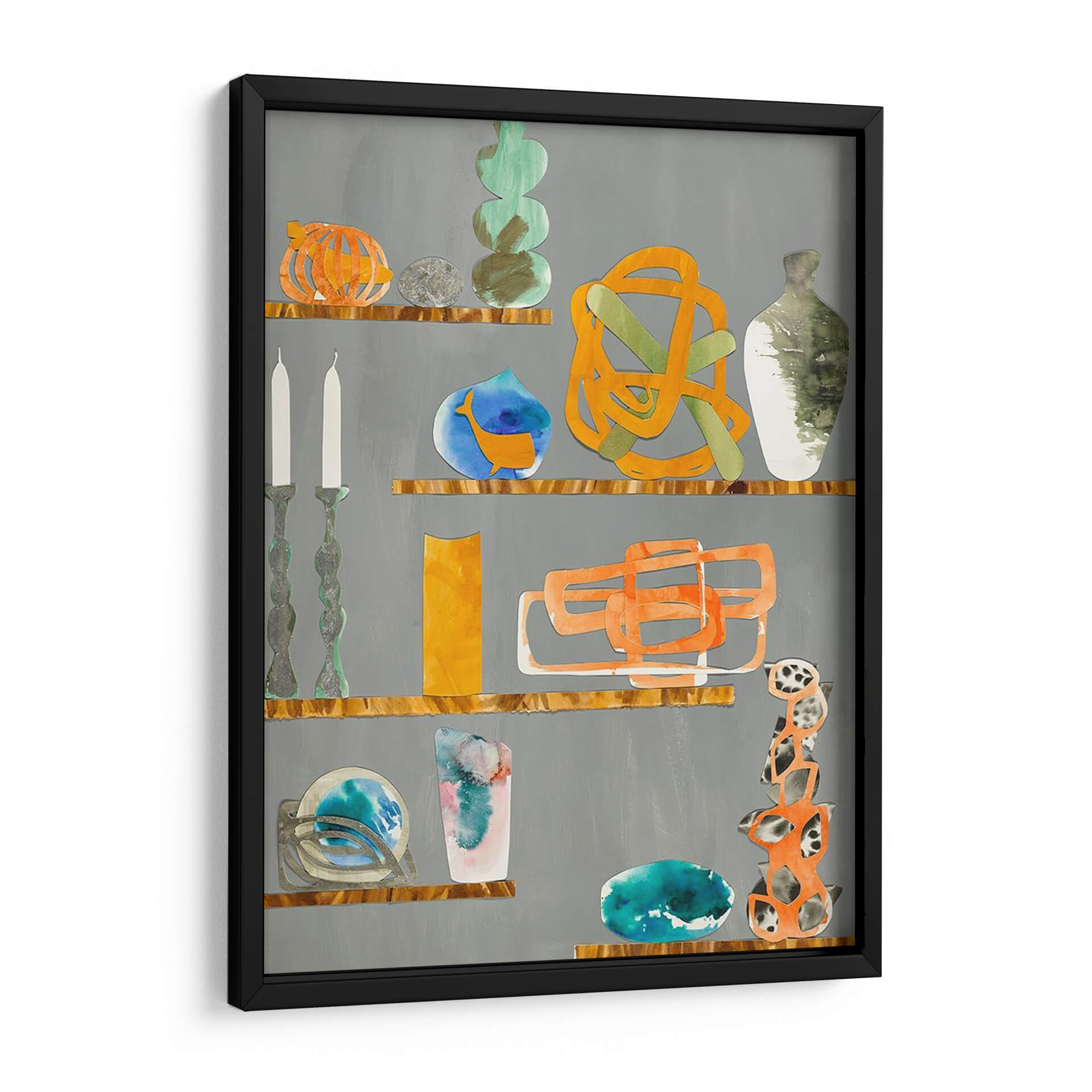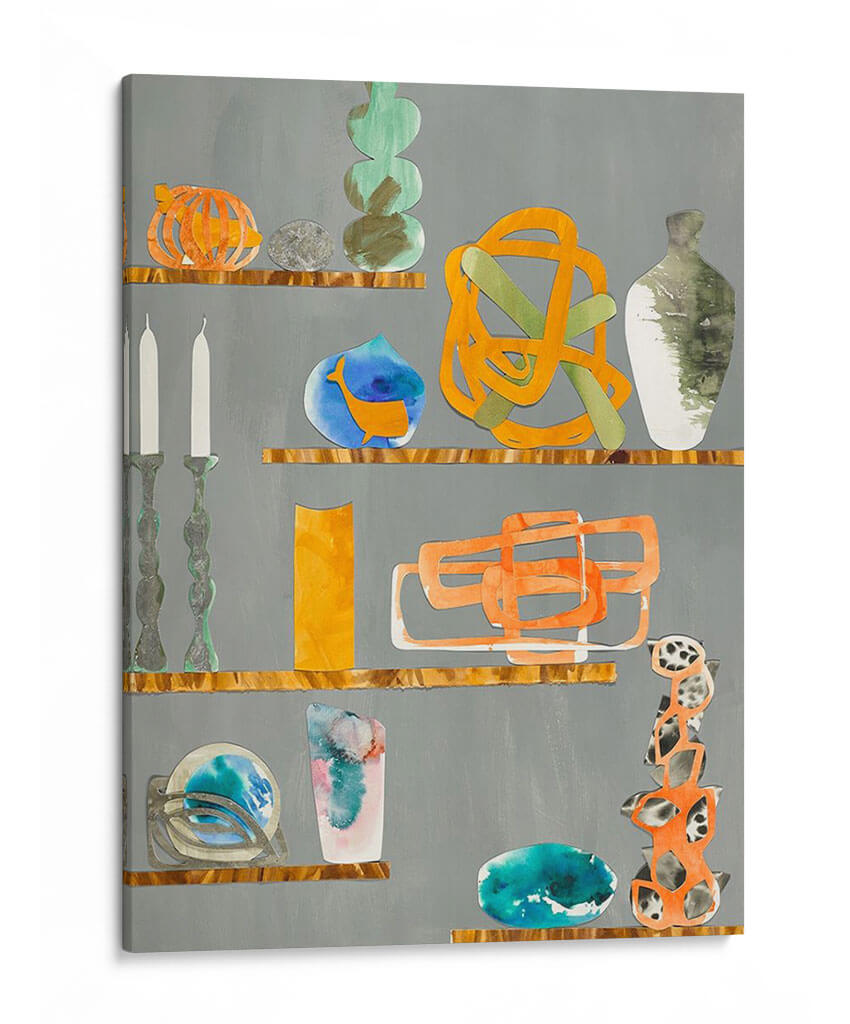 Sumérgete en la encantadora composición de 'Tinkets 2', una obra de arte de Brenna Harvey que evoca una sensación de curiosidad y orden lúdico. Este cuadro decorativo presenta una estantería gris como telón de fondo, sobre la cual se exhiben una serie de objetos eclécticos y formas abstractas que invitan a la contemplación. La paleta de colores, dominada por grises neutros, se ve realzada por vibrantes toques de naranja, azul, verde y tonos tierra, creando un equilibrio visual armonioso. Desde objetos que recuerdan a calabazas y candelabros hasta formas orgánicas y geométricas, la obra juega con la textura y el color para crear un diálogo fascinante. Es una pieza ideal para añadir un toque de sofisticación contemporánea y un aire de colección personal a tu sala de estar, estudio u oficina. El estilo abstracto y detallado de Harvey hace de 'Tinkets 2' un punto focal intrigante que estimula la imaginación y aporta una atmósfera de tranquilidad creativa a cualquier espacio decorado con buen gusto.