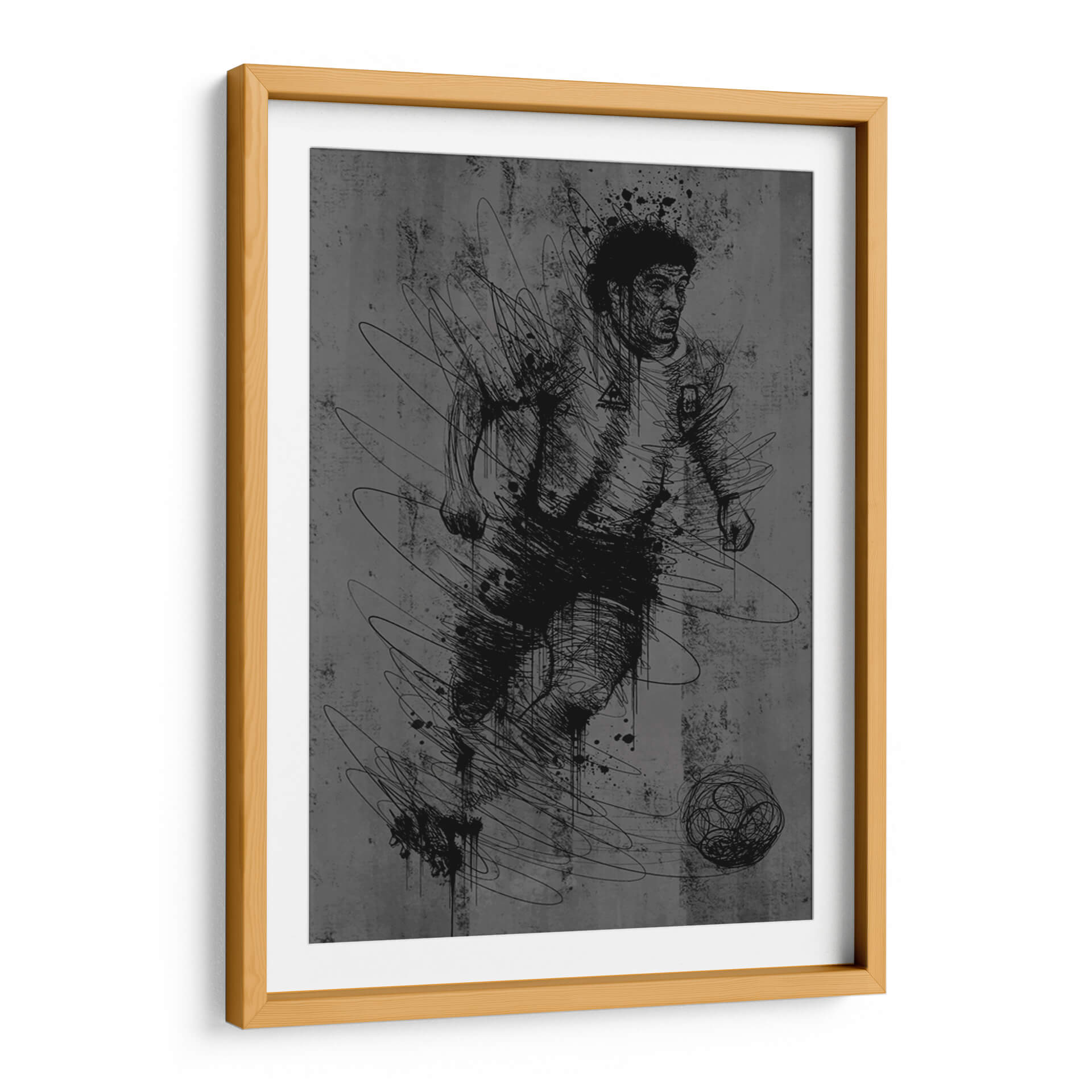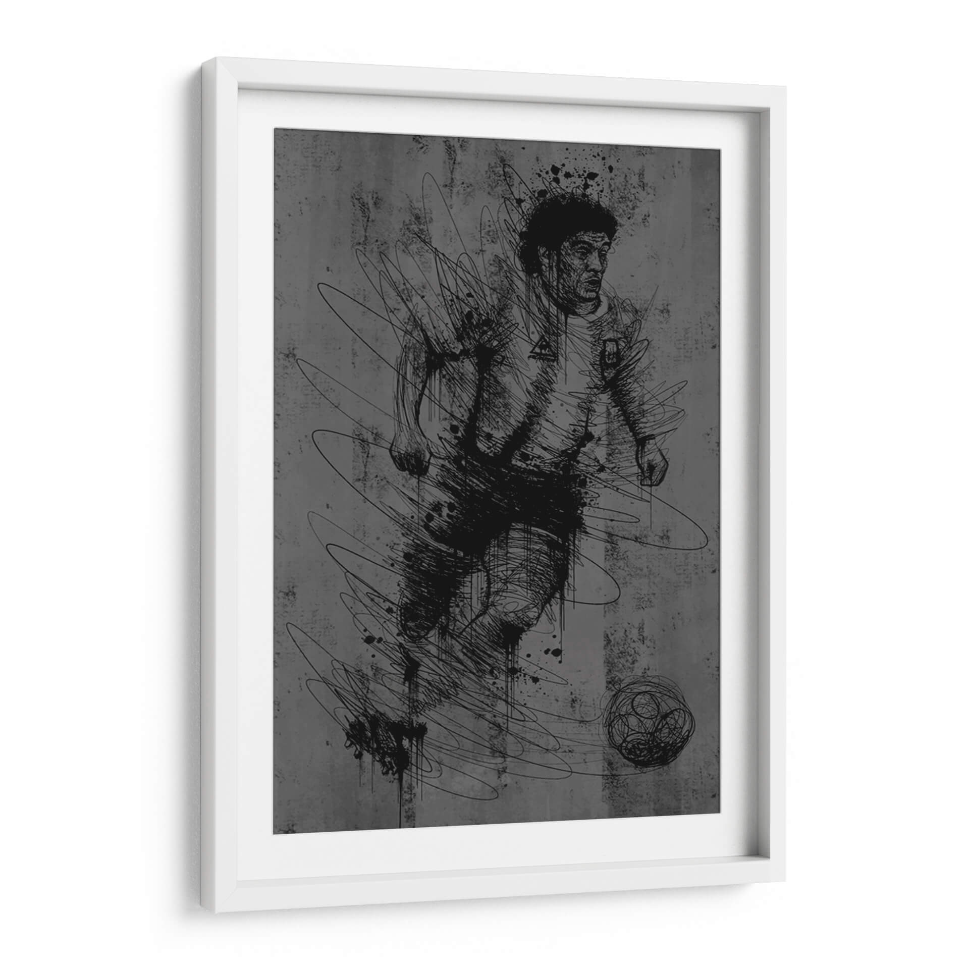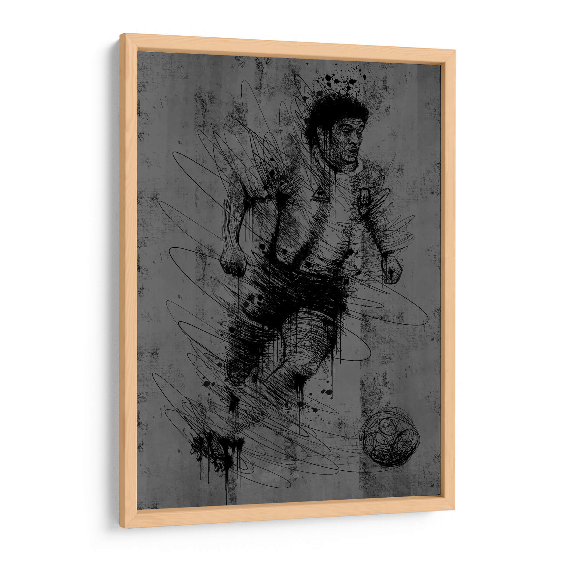 Captura la esencia dinámica del fútbol con este impactante cuadro decorativo "Simple Maradona" del artista Dry Ink. Esta obra de arte en blanco y negro presenta una representación estilizada y enérgica de un futbolista icónico en pleno movimiento, evocando la pasión y la maestría del deporte rey. Las líneas de boceto audaces y las salpicaduras de tinta crean una textura visual rica y un sentimiento de acción palpable, mientras que la paleta de grises y negros añade un toque de sofisticación y dramatismo. Ideal para los amantes del fútbol y del arte contemporáneo, este cuadro es perfecto para transformar cualquier espacio, desde una sala de estar moderna hasta una oficina o un bar deportivo. Su estilo gráfico y audaz lo convierte en un punto focal que inspira admiración y evoca recuerdos de momentos deportivos inolvidables. Añade un toque de leyenda y energía a tu decoración con esta pieza única que celebra el espíritu del juego.
