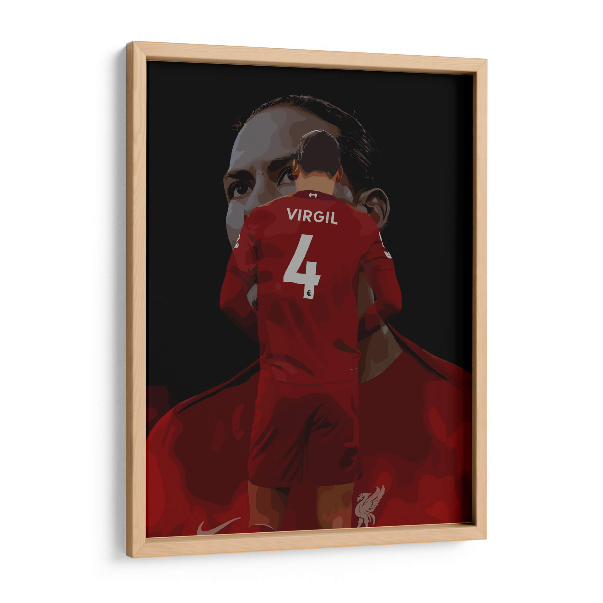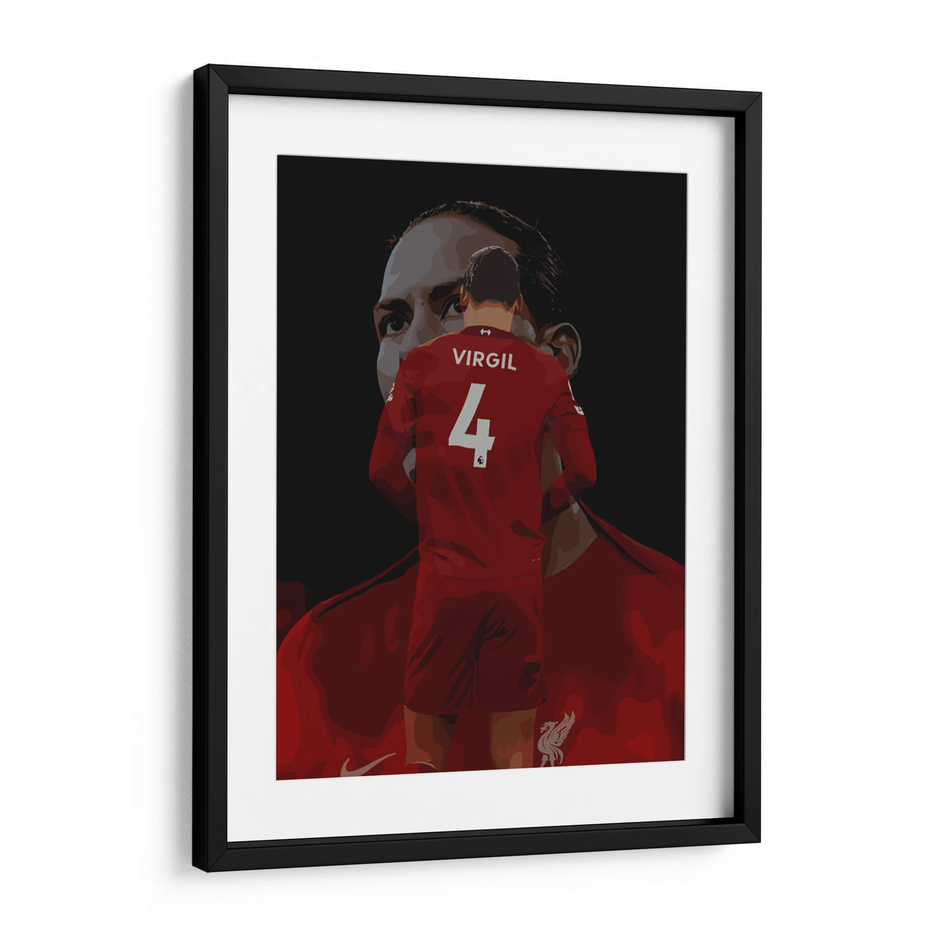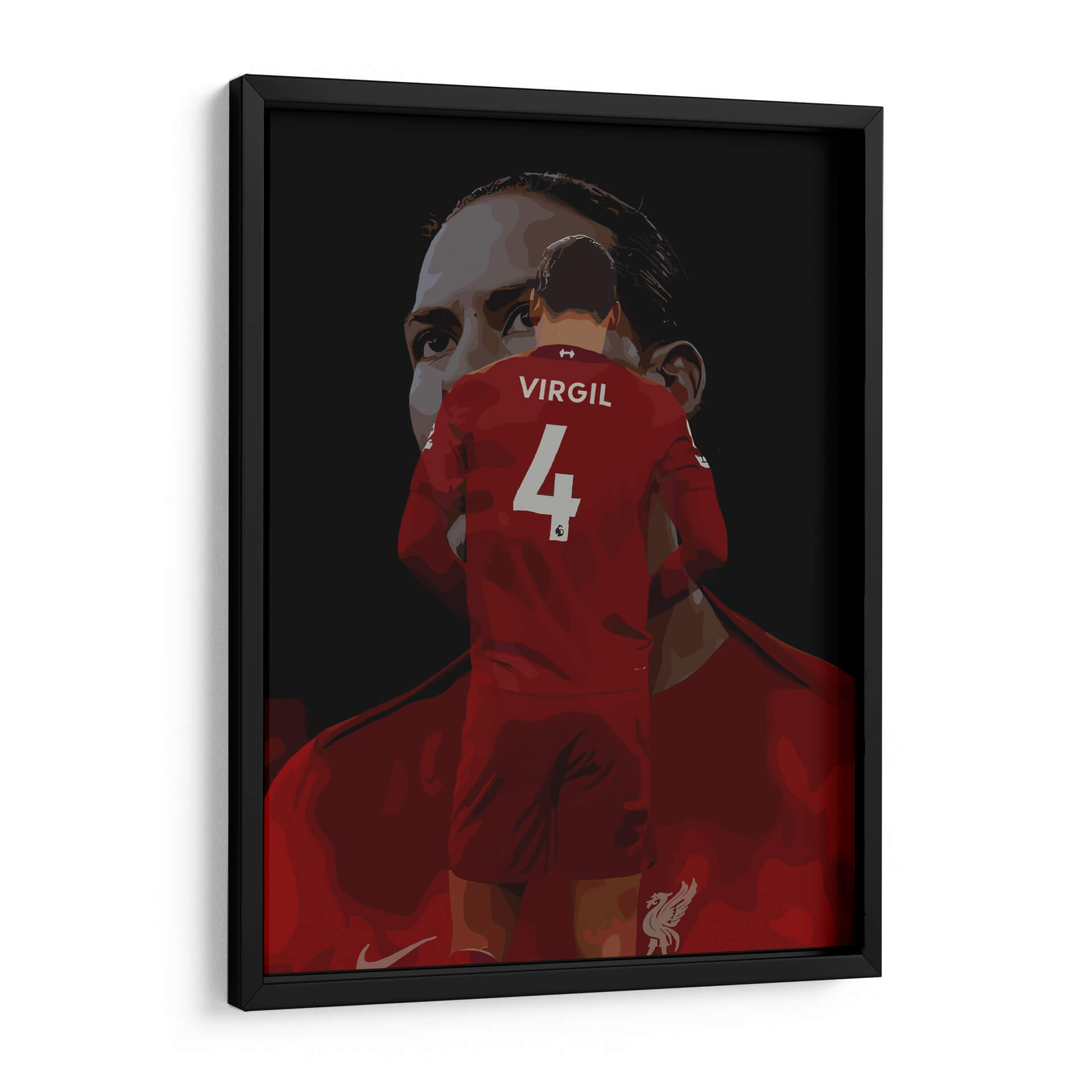 Transforma tu espacio con este cautivador cuadro decorativo digital, una obra de arte vibrante que captura la esencia de la figura icónica de Virgil Van Dijk. El diseño, con su estilo gráfico moderno y audaz, presenta al jugador de espaldas, vistiendo su icónica camiseta roja con el número 4 y su nombre visible. Un retrato superpuesto del jugador, enfocado en su mirada penetrante, añade profundidad y dramatismo a la pieza. La paleta de colores se centra en el rojo intenso de la equipación, contrastando con el fondo negro oscuro, creando un efecto visual potente y dinámico. La técnica de ilustración digital, con líneas definidas y áreas de color plano, confiere a la obra un carácter contemporáneo y enérgico. Este cuadro decorativo es ideal para los aficionados al fútbol, los amantes del arte deportivo o cualquiera que busque añadir un toque de pasión y fuerza a su decoración. Perfecto para salones, estudios, oficinas o incluso habitaciones temáticas, este cuadro de Virgil Van Dijk es una pieza que sin duda generará conversación y admiración, inyectando un espíritu competitivo y de determinación en cualquier ambiente. Añade un toque de grandeza deportiva a tu hogar u oficina con esta obra de arte exclusiva.