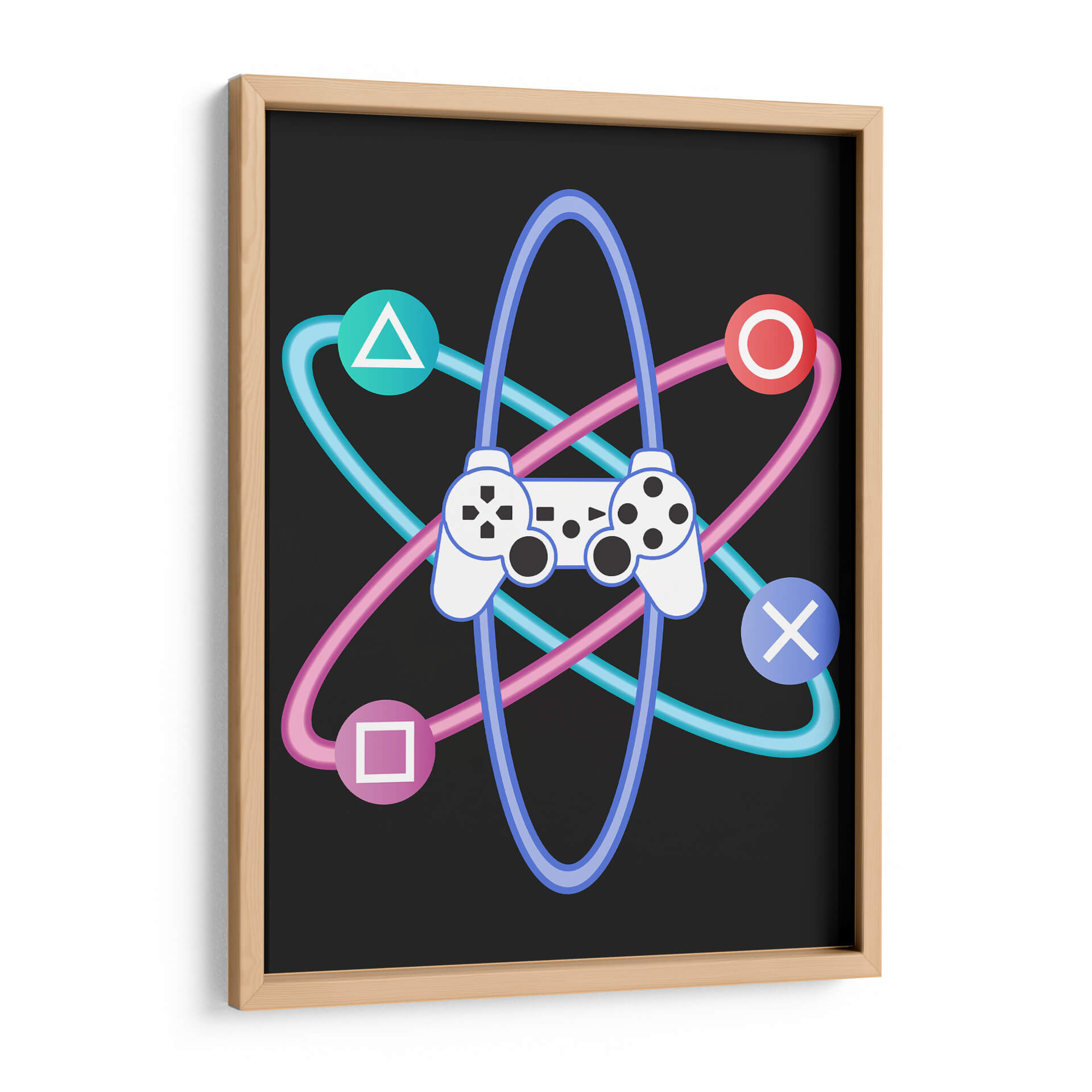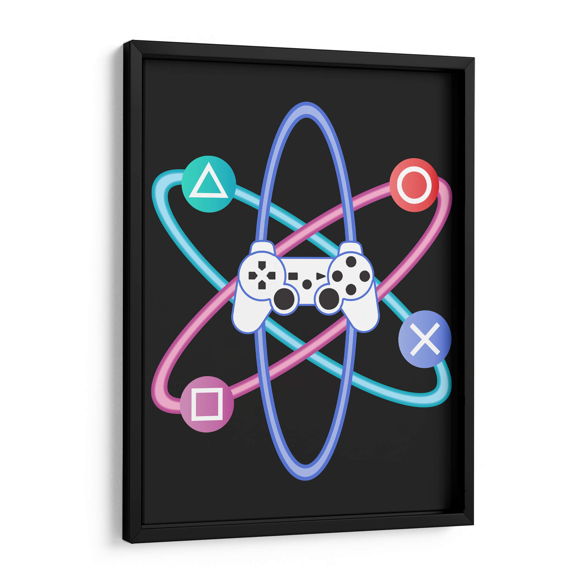 Sumérgete en el universo digital con "Atomic Gamer", una obra de arte que captura la esencia de la pasión por los videojuegos. Este cuadro decorativo presenta un icónico mando de consola suspendido en el centro, rodeado por órbitas de colores vibrantes que emulan la estructura atómica. Los símbolos clásicos de los botones de PlayStation (triángulo, círculo, cruz, cuadrado) se integran de manera sutil en este diseño conceptual, creando un punto focal dinámico y moderno. La paleta de colores, con sus tonos azules, rosados y turquesas contrastando sobre un fondo negro profundo, aporta un aire de misterio y energía, ideal para espacios que buscan un toque de originalidad y personalidad. Es una pieza perfecta para gamers de corazón, salas de juego, o cualquier ambiente que desee celebrar la cultura pop y la tecnología. Su diseño estilizado y contemporáneo lo convierte en un elemento decorativo versátil que inspira conversaciones y evoca la emoción de cada partida. "Atomic Gamer" no es solo un cuadro, es una declaración de estilo para los entusiastas del gaming.