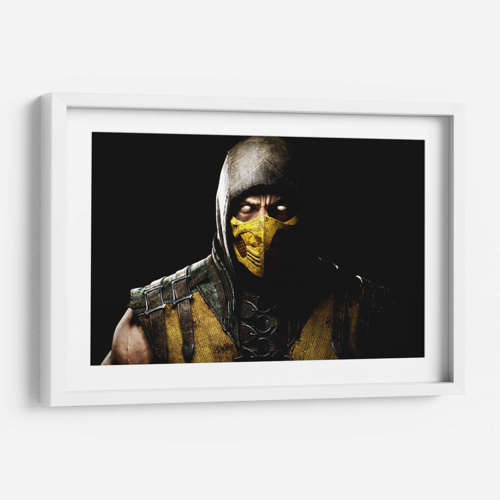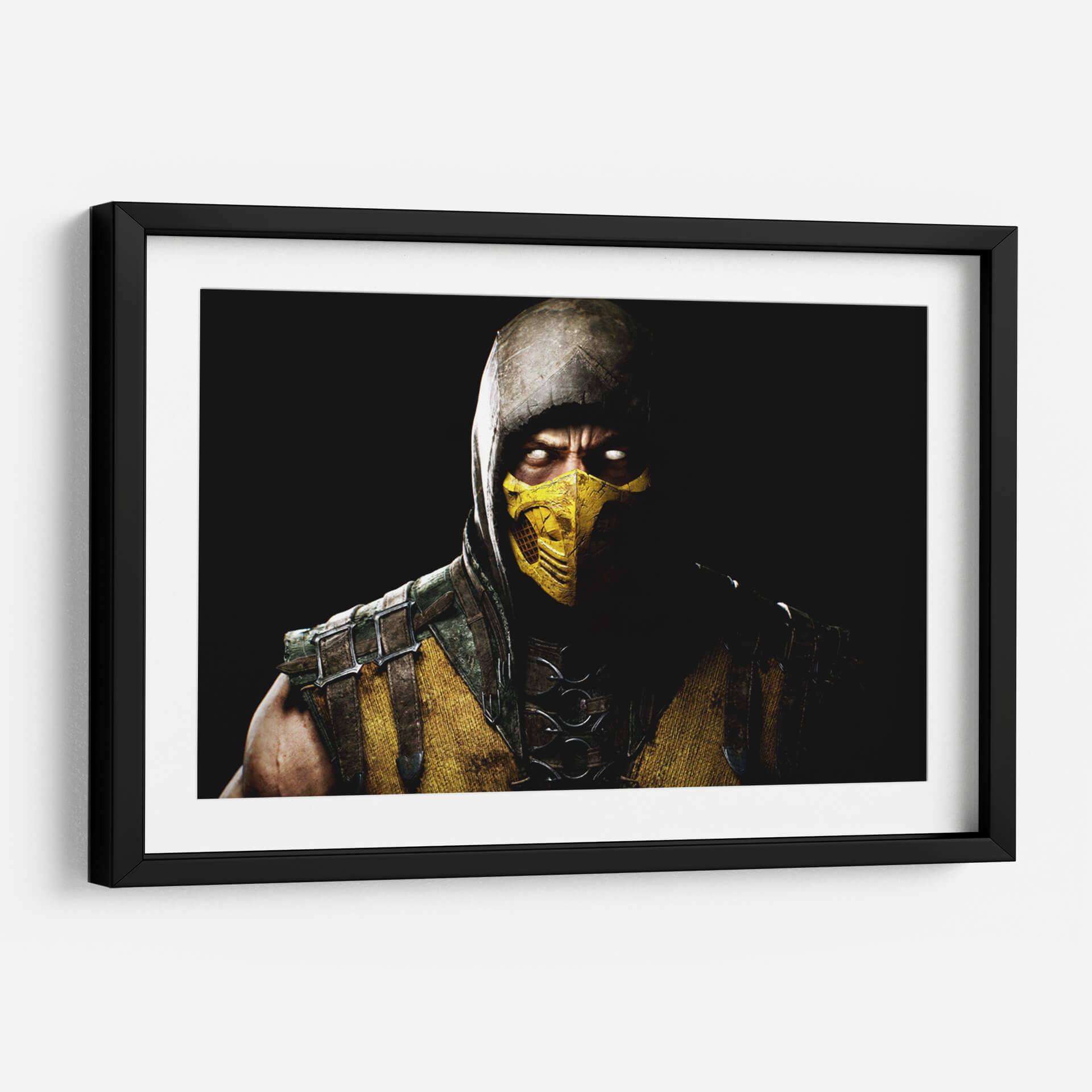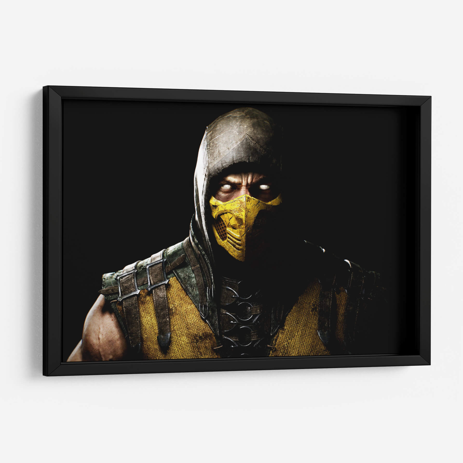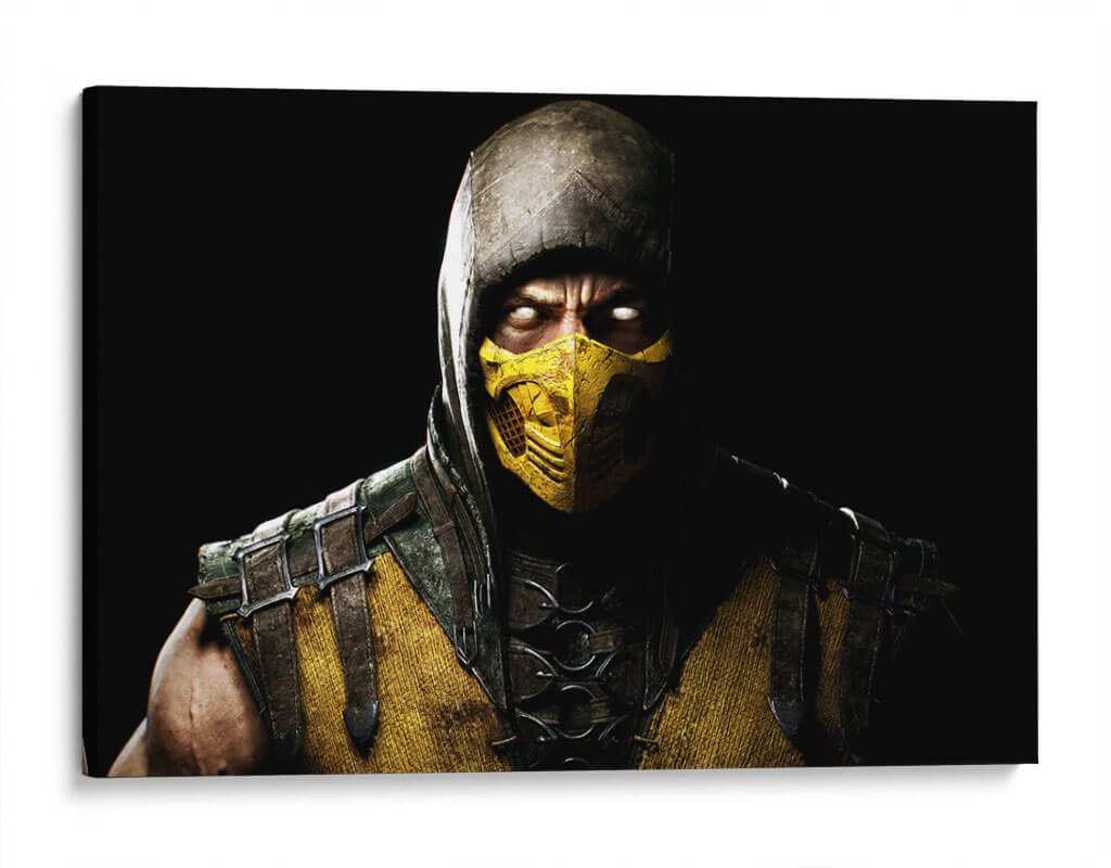 Sumérgete en la intensidad de 'Scorpion on white eyes', un cuadro decorativo que captura la esencia de un guerrero enigmático con una mirada penetrante. La obra presenta una figura masculina con un rostro cubierto por una máscara amarilla distintiva y un capuchón que envuelve su cabeza, creando un aura de misterio y poder. Los ojos blancos y luminosos contrastan dramáticamente con la oscuridad circundante, atrayendo la atención hacia la profundidad del personaje. La paleta de colores se centra en tonos ocres, amarillos intensos y marrones terrosos, complementados por detalles metálicos y texturas que sugieren una armadura desgastada por la batalla. La composición, un primer plano enfocado en el torso y el rostro, genera una conexión íntima y una sensación de confrontación. Este cuadro decorativo es ideal para espacios que buscan un toque de carácter y fuerza, como una sala de estar moderna, un despacho o una habitación temática. Transmite una atmósfera de determinación, peligro latente y una energía cruda que puede inspirar y cautivar a observadores. Añade un elemento de intriga y estilo a tu decoración con esta pieza impactante que evoca la figura de un escorpión listo para atacar.