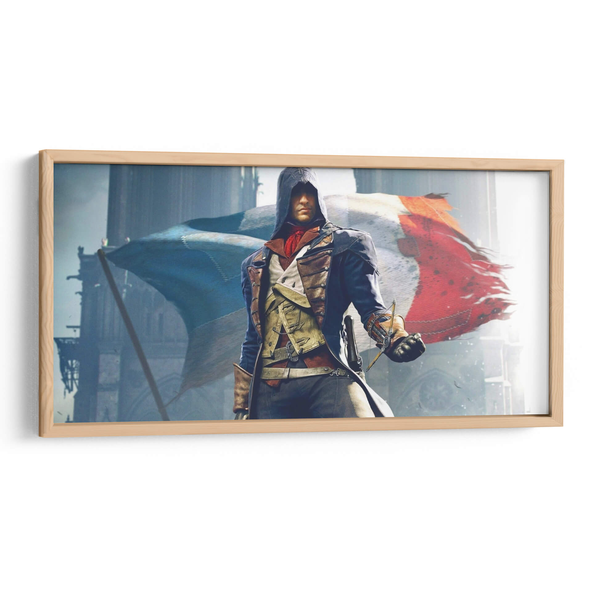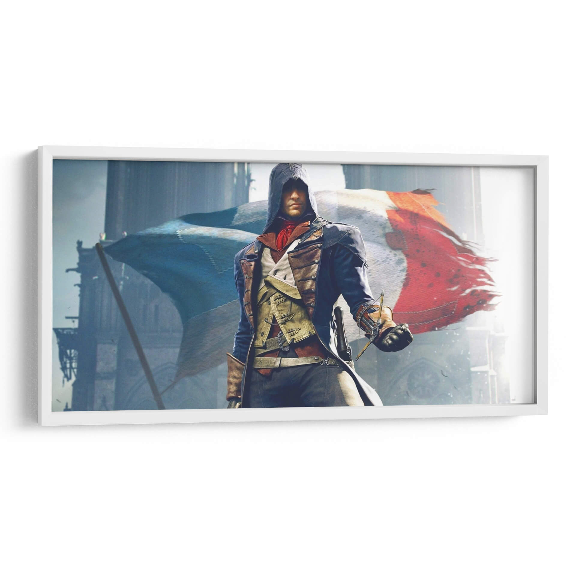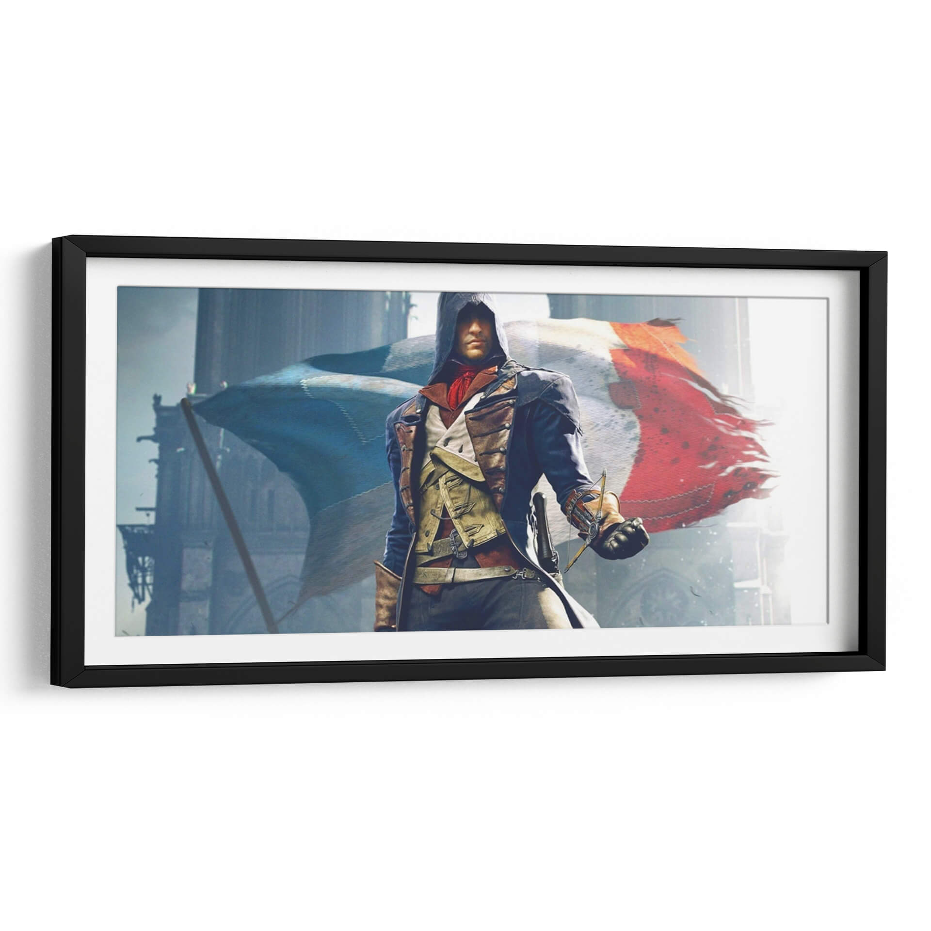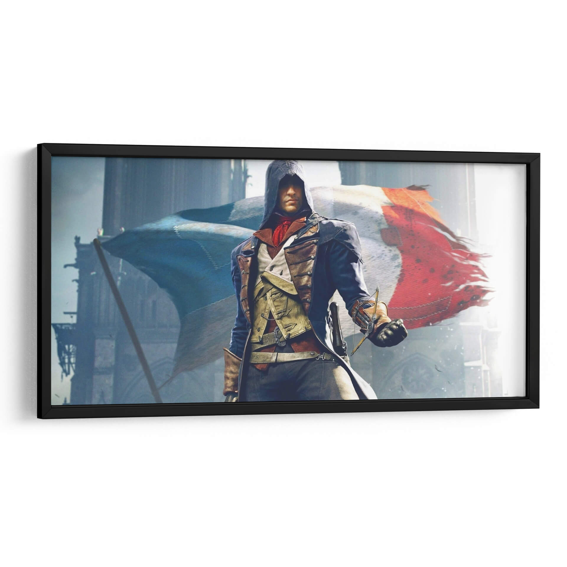 Descubre la fuerza y el espíritu de 'The Unity', un cuadro decorativo que evoca la pasión de la Revolución Francesa. Esta obra maestra digital captura a una figura icónica vestida con atuendos de época, portando con determinación una espada, mientras detrás ondea la vibrante bandera tricolor de Francia. La composición, dominada por tonos fríos y grises que contrastan con los cálidos rojos y azules de la bandera, crea una atmósfera de solemnidad y heroísmo. Las imponentes estructuras arquitectónicas de fondo sugieren un escenario histórico, añadiendo profundidad y realismo a la escena. Este cuadro decorativo es perfecto para aquellos que buscan infundir sus espacios con un sentido de historia, valentía y unidad nacional. Ideal para salones, estudios o despachos, 'The Unity' no solo embellecerá tu pared, sino que también servirá como un poderoso recordatorio de momentos trascendentales. Su estilo detallado y cinematográfico lo convierte en un punto focal cautivador para cualquier decoración moderna o temática, invitando a la reflexión y a la admiración.