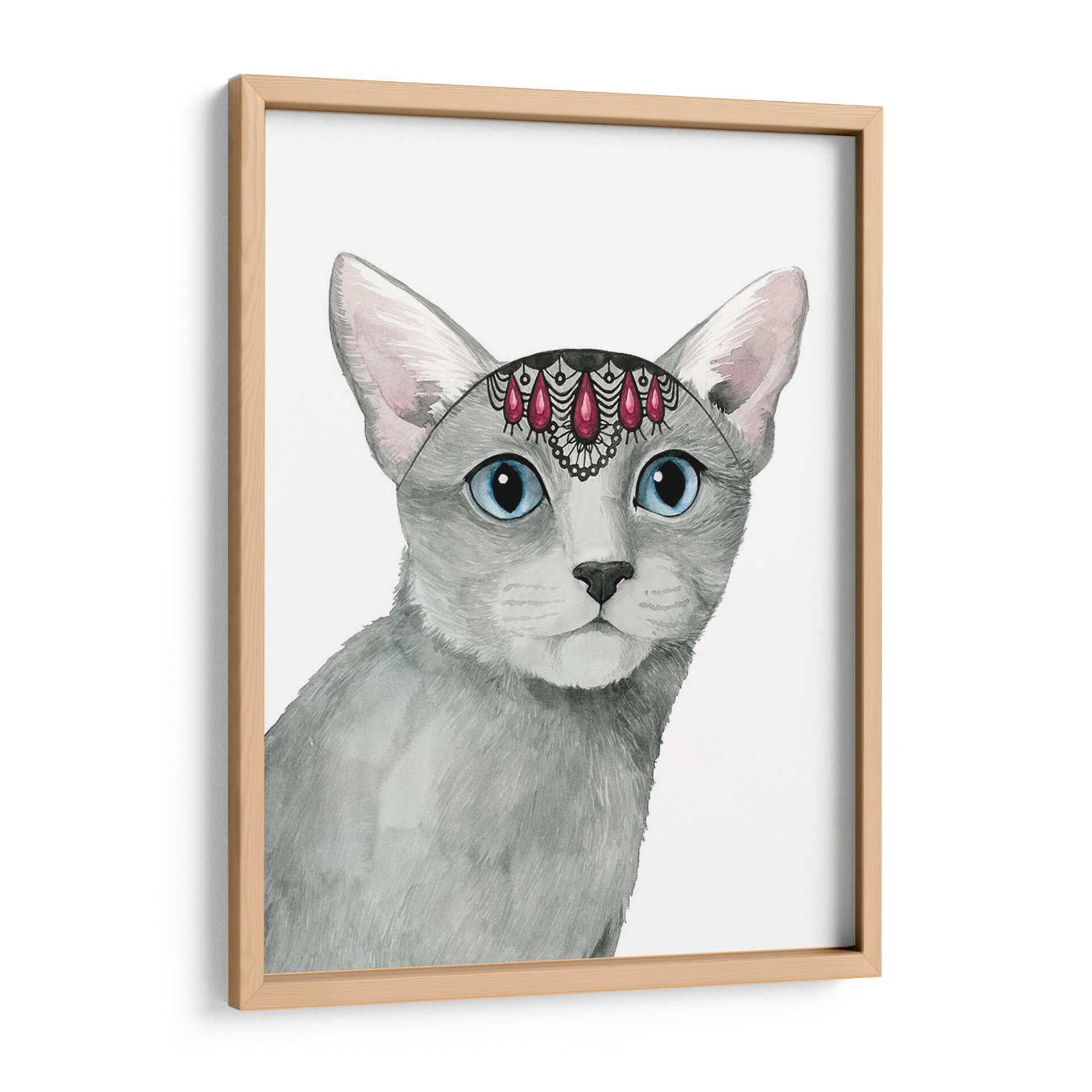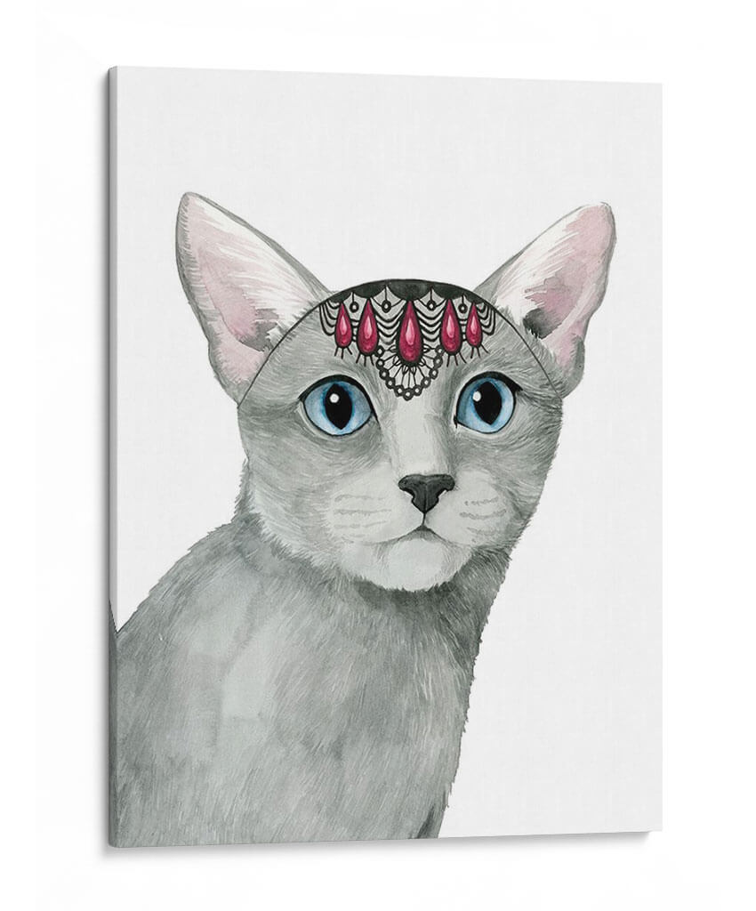 Este cautivador cuadro decorativo de un gato con un adorno en la frente es una obra de arte que irradia elegancia y un toque de misterio. La pieza presenta un felino de pelaje grisáceo, representado con trazos delicados y una mirada penetrante de intensos ojos azules que capturan la atención del espectador. El detalle distintivo es una elaborada diadema o tocado adornado con gotas de color rosa fucsia y patrones intrincados en negro, que añade un aire de realeza y sofisticación a la composición. La paleta de colores se centra en tonos grises suaves, contrastando con el vibrante rosa y el profundo negro del adorno, creando un equilibrio visual armonioso. El estilo, que combina el realismo con un toque de fantasía, hace que este cuadro sea ideal para añadir personalidad a cualquier espacio. Perfecto para salones modernos, dormitorios acogedores u oficinas con un toque de originalidad, este cuadro decorativo insuflará vida y carácter a tus paredes, invitando a la contemplación y al deleite estético. Es una pieza que, sin duda, generará conversación y admiración.