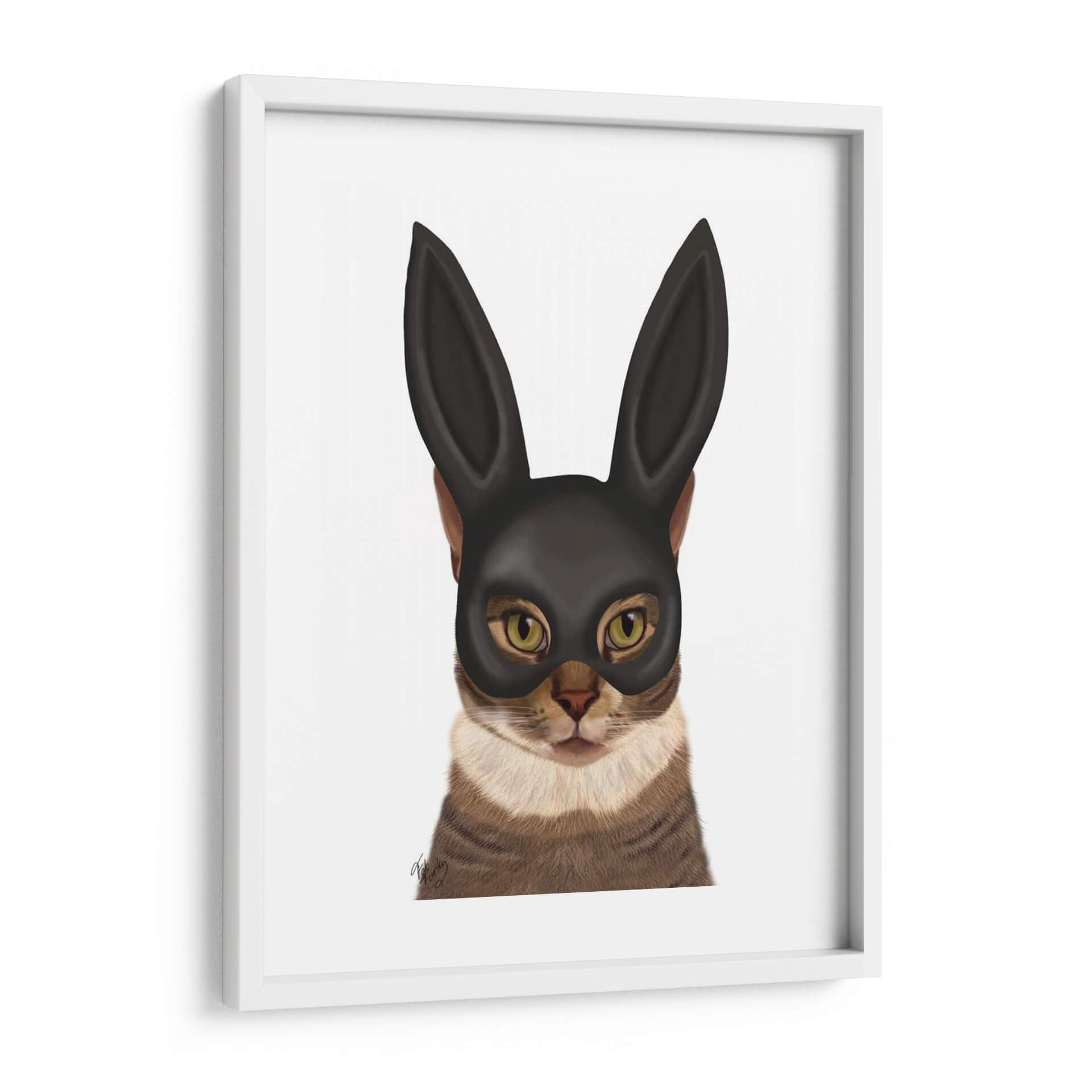 Sumérgete en la enigmática mirada de 'Gato Con Máscara De Conejito', una obra de arte que desafía las convenciones y captura la imaginación. Este cuadro decorativo presenta un felino majestuoso adornado con una peculiar máscara de conejito, creando un contraste intrigante entre la astucia del gato y la inocencia asociada a los conejos. La paleta de colores se centra en tonos cálidos y terrosos del pelaje del gato, realzados por el dramático negro de la máscara, que a su vez acentúa los penetrantes ojos dorados del animal. La composición es un retrato frontal, íntimo y directo, que invita a la contemplación y a la reflexión sobre la identidad y el disfraz. El estilo, realista con un toque surrealista, aporta una dimensión única a cualquier espacio. Ideal para salas de estar modernas, estudios creativos o dormitorios que busquen un toque de originalidad y misterio, esta pieza es un excelente punto de partida para conversaciones y una adición memorable a tu colección de arte de pared. Transmite una sensación de juego y enigma, perfecta para romper la monotonía y añadir carácter a tu decoración.