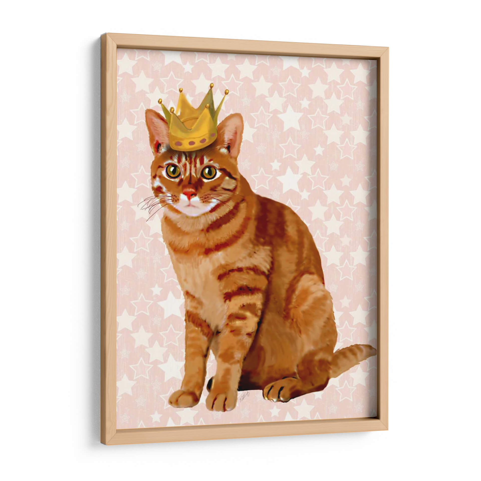 Este encantador cuadro decorativo presenta un majestuoso gato atigrado de color jengibre, adornado con una brillante corona dorada, sentado con elegancia sobre un fondo de estrellas pálidas en tono rosa pastel. La obra, titulada 'Gato De Jengibre Con Corona Llena' del artista Fab Funky, irradia una atmósfera de diversión juguetona y realeza caprichosa. Los ricos tonos anaranjados del gato contrastan maravillosamente con el delicado patrón de estrellas, creando una pieza visualmente atractiva que seguramente será un punto focal en cualquier habitación. El estilo artístico, con sus toques de pintura digital y texturas sutiles, evoca una sensación de calidez y encanto. Este cuadro es ideal para añadir un toque de personalidad y alegría a salas de estar, dormitorios o cualquier espacio que necesite una dosis de fantasía. Su diseño único lo convierte en una excelente opción para los amantes de los gatos y para aquellos que aprecian el arte contemporáneo con un toque de humor y originalidad. Transforma tu hogar en un refugio lleno de carácter con esta pieza singular.