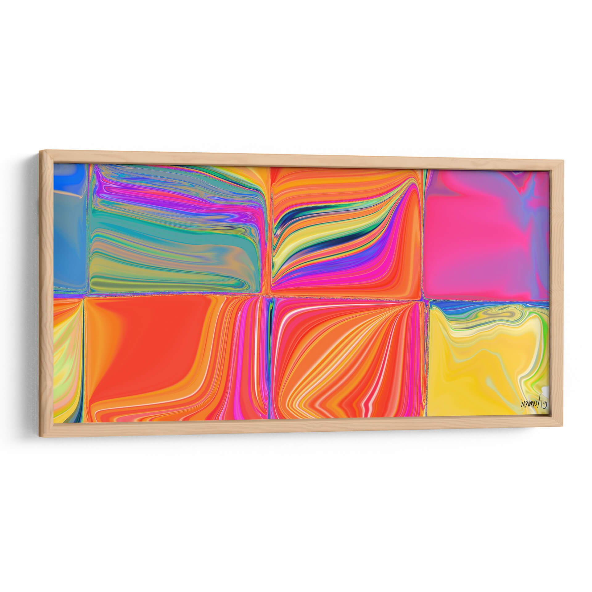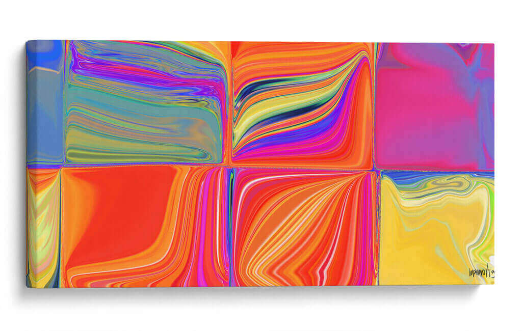 Sumérgete en la vibrante explosión de color y movimiento con la obra de arte "VIDA" de Gina Villalobos. Este cuadro decorativo abstracto es una sinfonía visual que cautiva la mirada y despierta los sentidos. La composición se divide en una cuadrícula de segmentos dinámicos, cada uno explorando texturas fluidas y patrones que parecen emanar energía. Predominan los tonos cálidos y vibrantes, con naranjas intensos, rosas eléctricos y amarillos brillantes, entrelazados con toques de azul y verde que aportan profundidad y contraste. Las pinceladas digitales, o más bien las formas fluidas, crean una sensación de movimiento perpetuo, como si la vida misma fluyera a través del lienzo. "VIDA" es una pieza contemporánea que irradia alegría y dinamismo, perfecta para infundir vitalidad en cualquier espacio. Ideal para salas de estar modernas, oficinas creativas o cualquier rincón que necesite un toque de optimismo y estilo. Transforma tu hogar en una galería de arte personal con esta obra que celebra la intensidad y la belleza del color. Este cuadro abstracto es un punto focal inigualable que invita a la contemplación y la conversación, añadiendo un carácter único y contemporáneo a tu decoración.