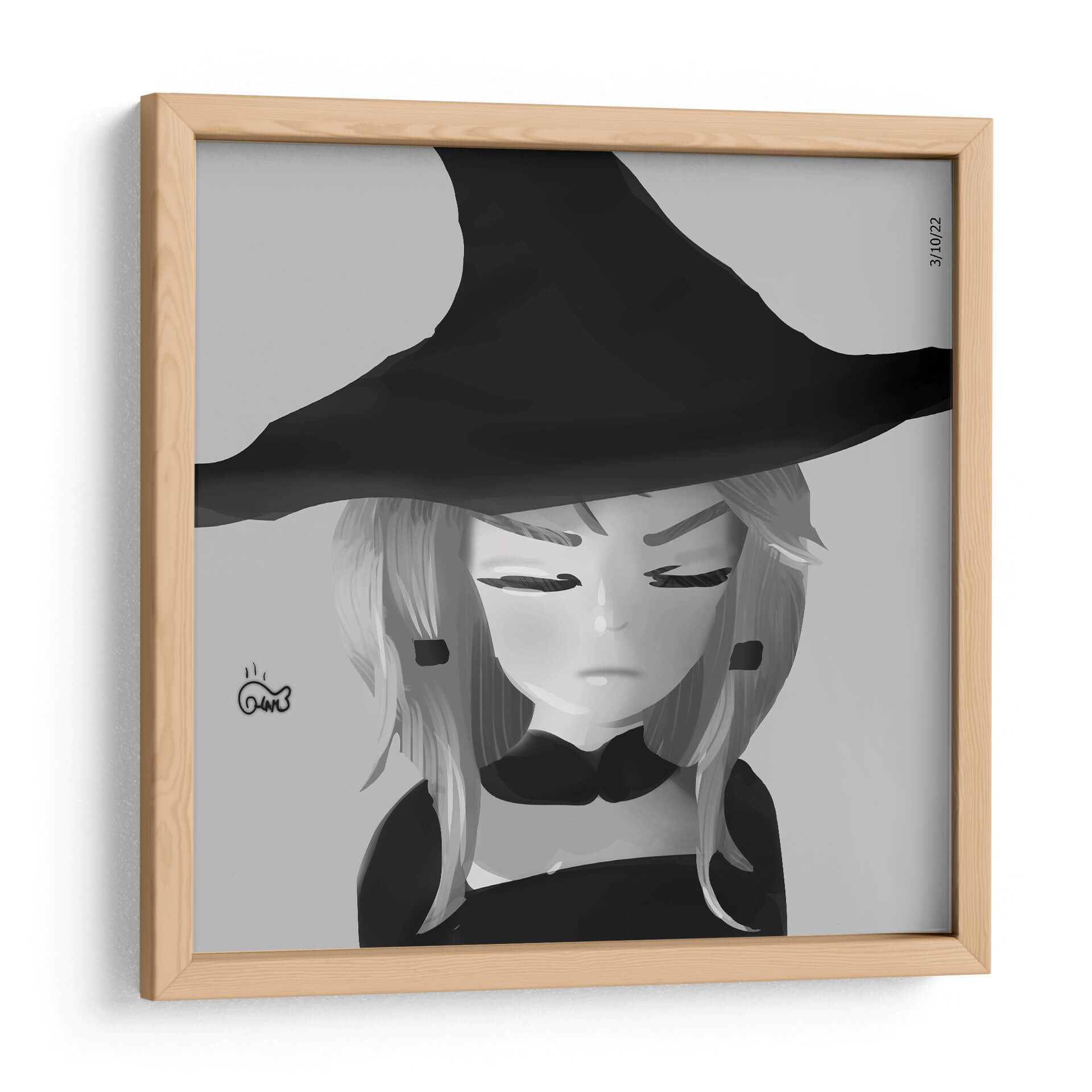 Sumérgete en el enigmático mundo del arte con "Bruja Enojada" de Ham Hams!, una obra digital que captura la esencia de un personaje misterioso y poderoso. Esta pieza, ejecutada en una paleta de grises y contrastes marcados, evoca una atmósfera de introspección y fuerza interior. La figura central, una bruja con su icónico sombrero y una expresión que oscila entre la determinación y la melancolía, se presenta con un estilo de ilustración contemporáneo que atrae la mirada. Los detalles sutiles, como el cabello que cae en cascada y la mirada de ojos cerrados, invitan a la contemplación. Este cuadro decorativo es perfecto para añadir un toque de carácter y profundidad a cualquier espacio, ya sea una sala de estar moderna, un estudio creativo o un dormitorio con personalidad. Su diseño monocromático lo hace versátil, combinando fácilmente con diversas paletas de colores y estilos de decoración. "Bruja Enojada" no es solo una imagen, es una declaración de intenciones, una pieza de arte contemporáneo que resonará con aquellos que aprecian la audacia y el misterio. Ideal para quienes buscan un punto focal que despierte conversaciones y refleje una sensibilidad artística única, este cuadro decorativo es una adición imprescindible a tu colección de arte de pared.