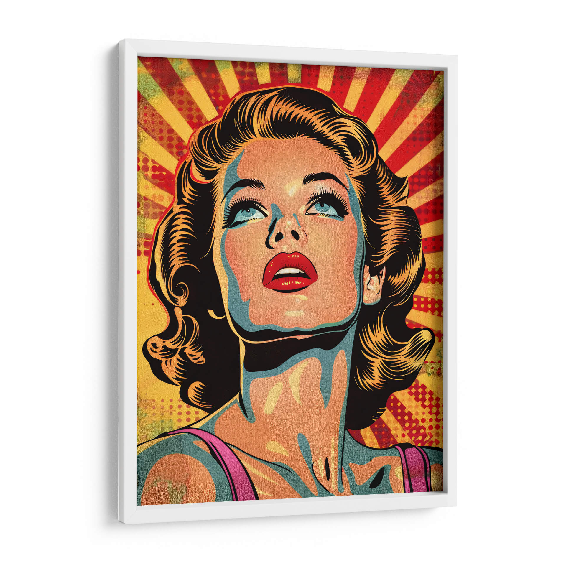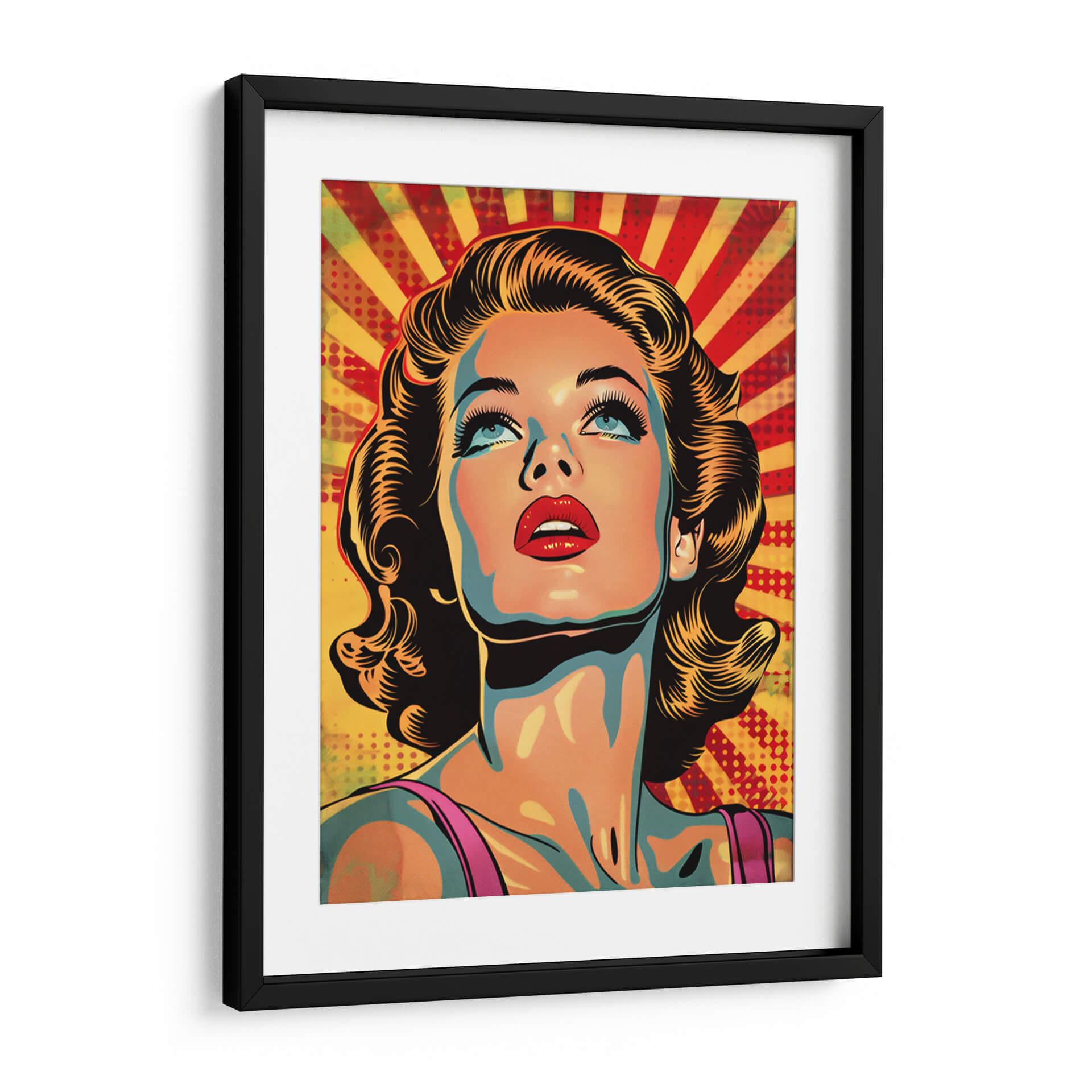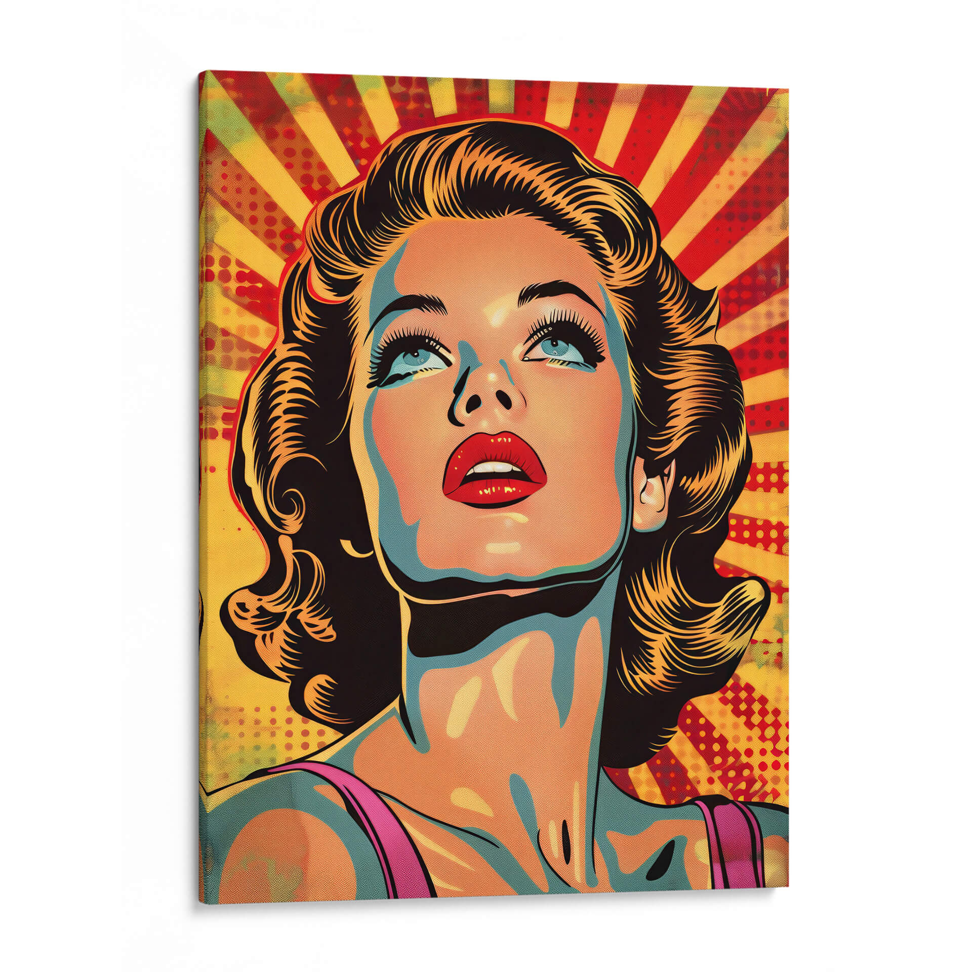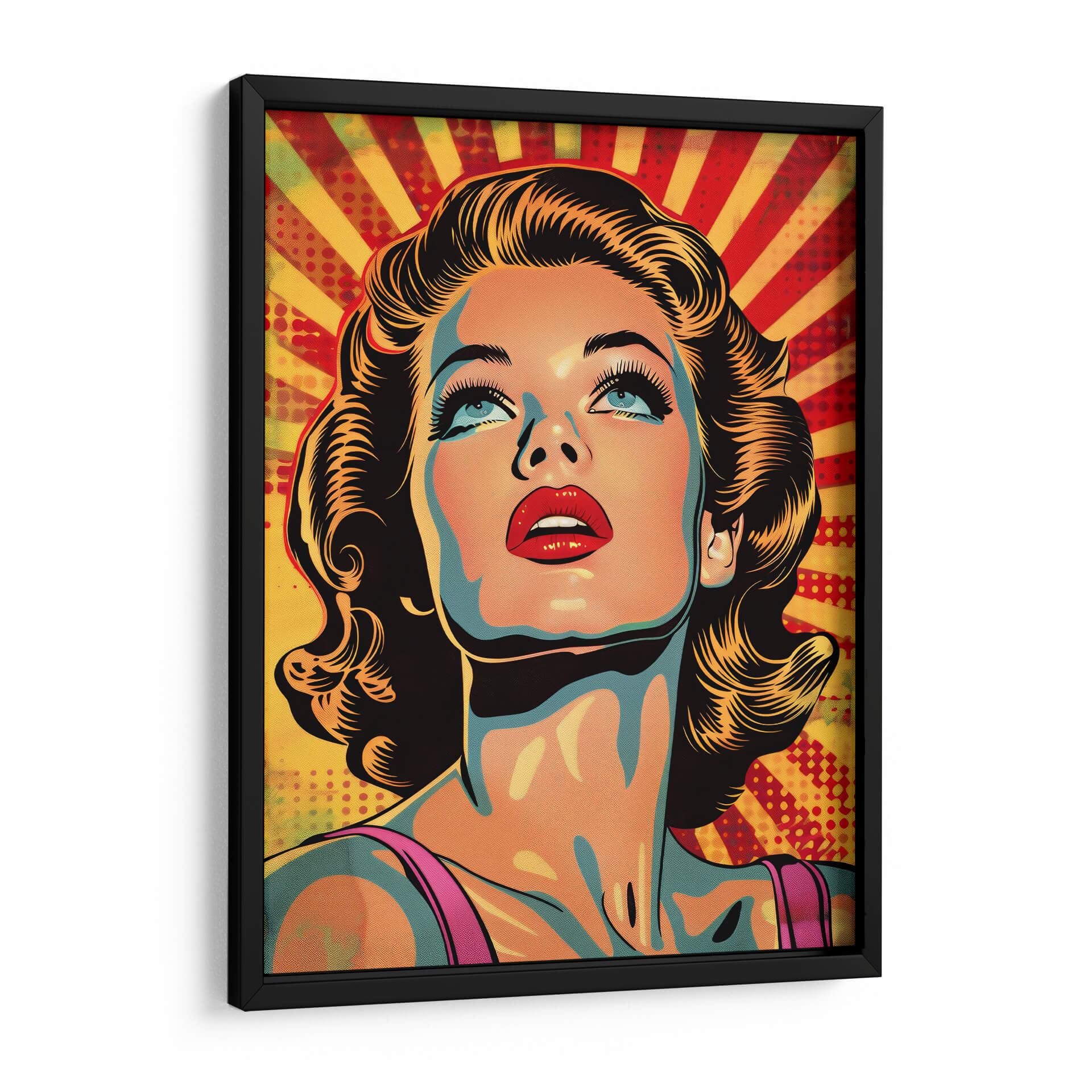 Sumérgete en la nostalgia y el glamour con este cautivador cuadro decorativo "Chica Vintage" de Paltik Arte Digital. Esta obra maestra evoca la época dorada de Hollywood y el estilo pop art, presentando un retrato vibrante de una mujer con una mirada soñadora hacia el cielo. La paleta de colores audaz, dominada por tonos cálidos como el amarillo y el rojo que irradian desde el fondo, contrasta maravillosamente con los toques de azul y naranja en la piel, creando una atmósfera dinámica y llena de energía. El estilo distintivo, con líneas definidas y un sombreado dramático, le confiere un carácter gráfico y atemporal. Ideal para añadir un toque de sofisticación retro a tu sala de estar, dormitorio o estudio, este cuadro decorativo es perfecto para quienes aprecian el arte con personalidad. Su composición centrada en el rostro, con énfasis en los expresivos ojos azules y los labios rojos intensos, atrae la mirada y genera conversación. La "Chica Vintage" no es solo una pieza decorativa, sino una invitación a revivir la elegancia y el encanto de una era pasada, aportando carácter y un estilo pop inconfundible a cualquier espacio moderno. Transforma tu hogar en una galería personal con esta obra impactante y llena de vida.