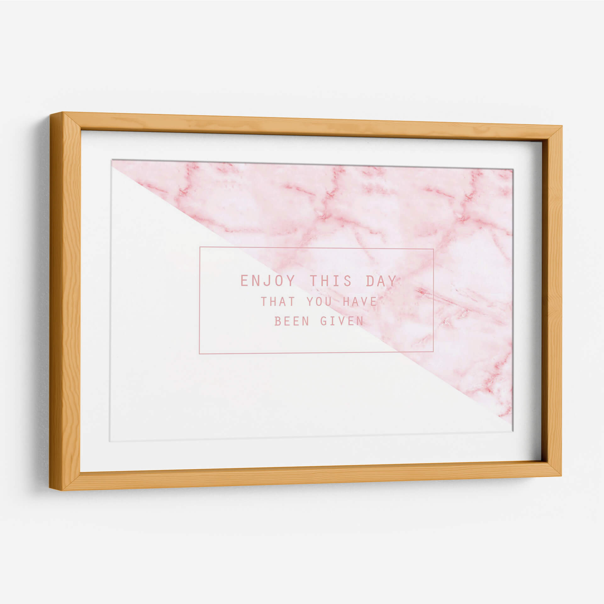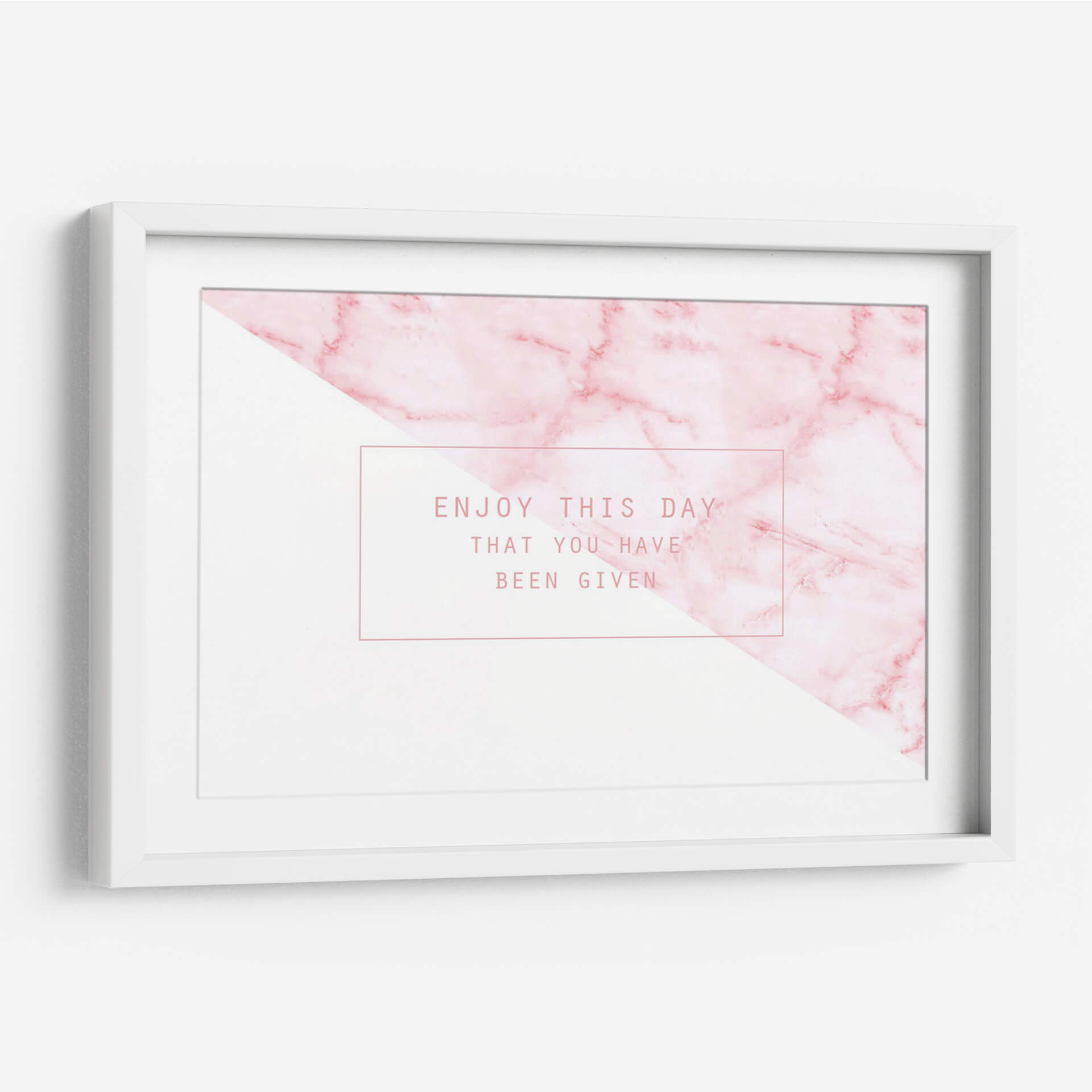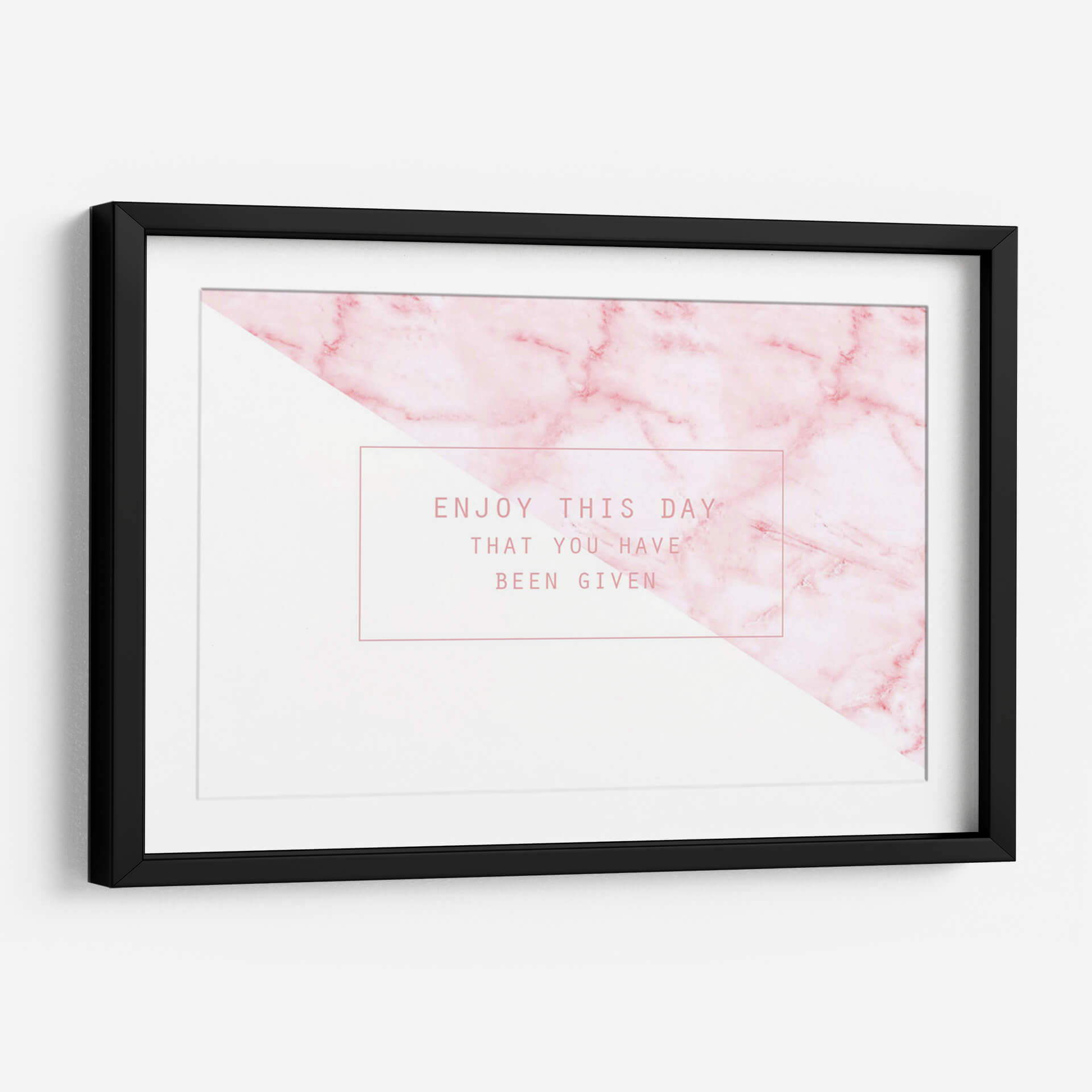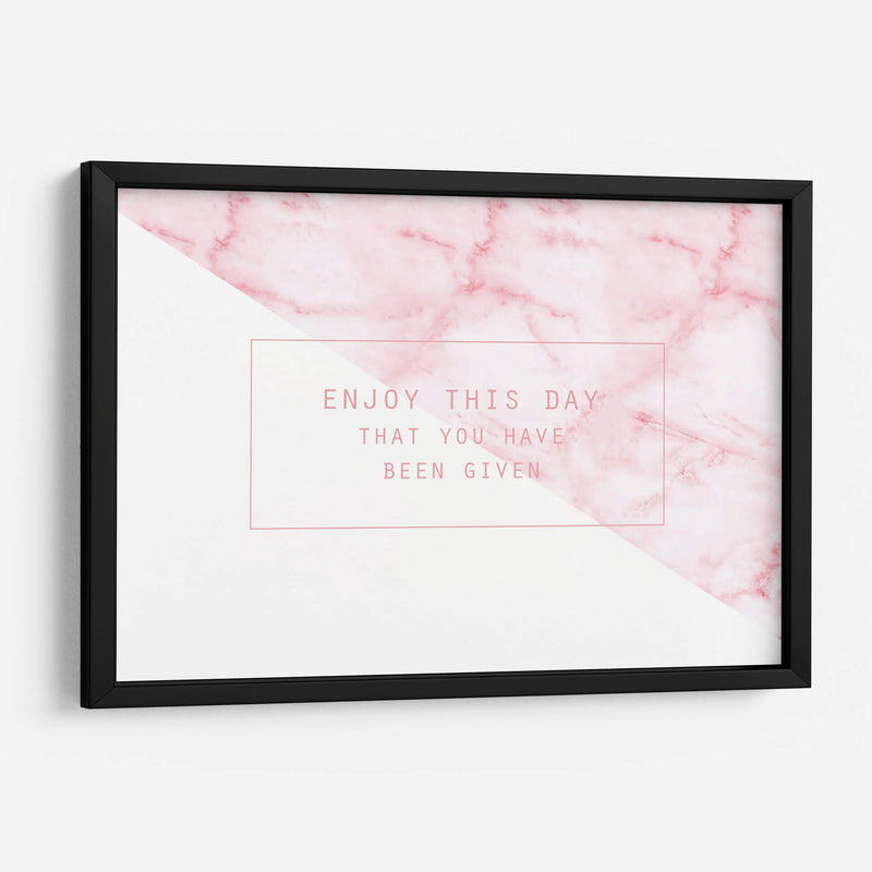 Captura la esencia de la positividad y el disfrute del presente con nuestro cuadro decorativo "Enjoy this day". Esta obra moderna combina una delicada textura de mármol en tonos rosados suaves con un contraste nítido de blanco puro, creando una composición geométrica y equilibrada que atrae la mirada. La frase "Enjoy this day that you have been given" se presenta en una tipografía elegante y sencilla dentro de un recuadro minimalista, añadiendo un mensaje inspirador y reflexivo. Los suaves degradados del mármol y la pureza del área blanca generan una atmósfera de calma y optimismo, perfecta para infundir serenidad en cualquier espacio. Ideal para salones, dormitorios o oficinas, este cuadro decorativo es un recordatorio diario de apreciar el momento actual. Su diseño contemporáneo y su paleta de colores sutiles lo convierten en una adición versátil que complementa diversos estilos de decoración, desde el moderno y minimalista hasta el escandinavo o el bohemio chic. Dale a tu hogar una dosis de inspiración y estilo con esta pieza única que invita a vivir el presente con alegría. Una elección perfecta para quienes buscan arte con significado y estética cuidada.