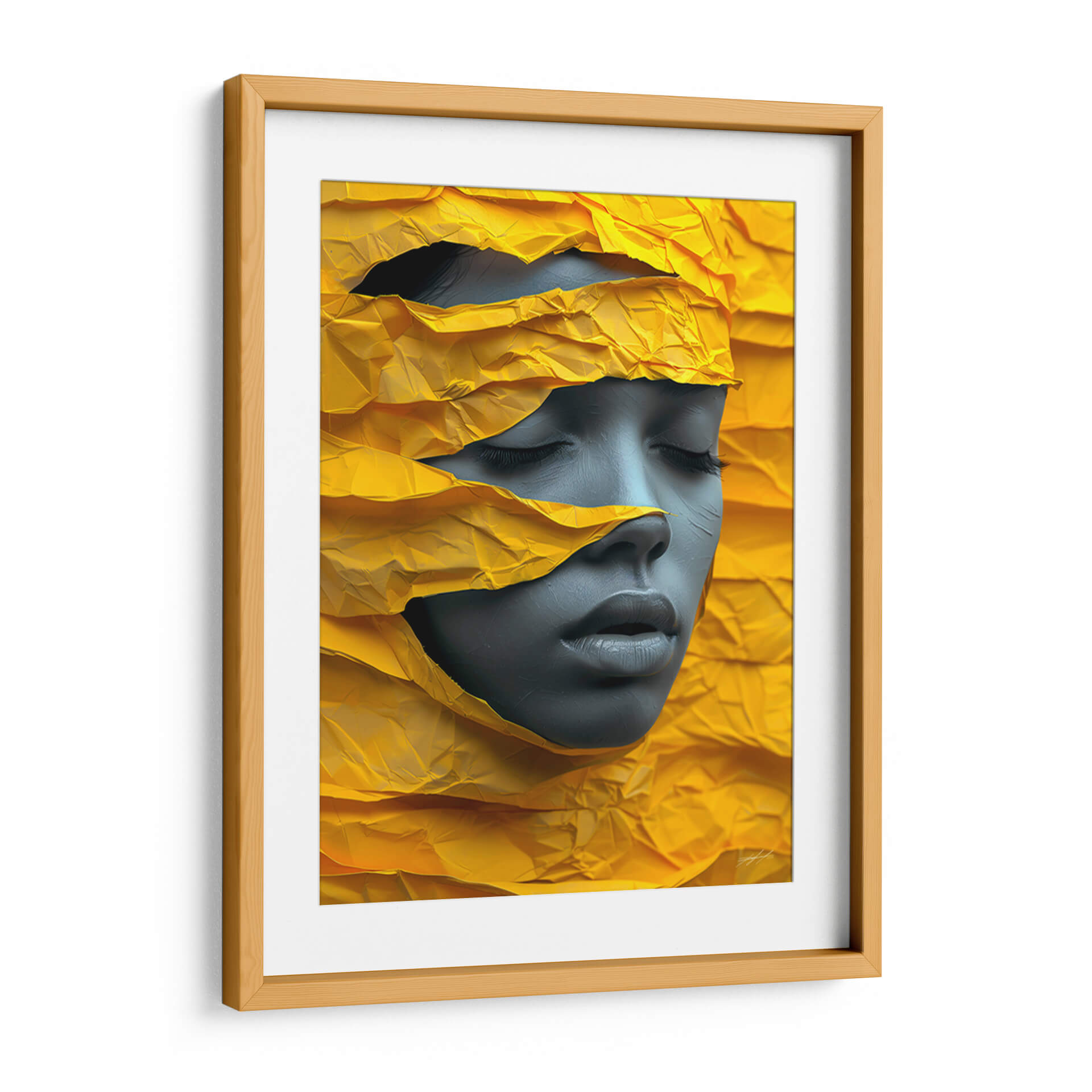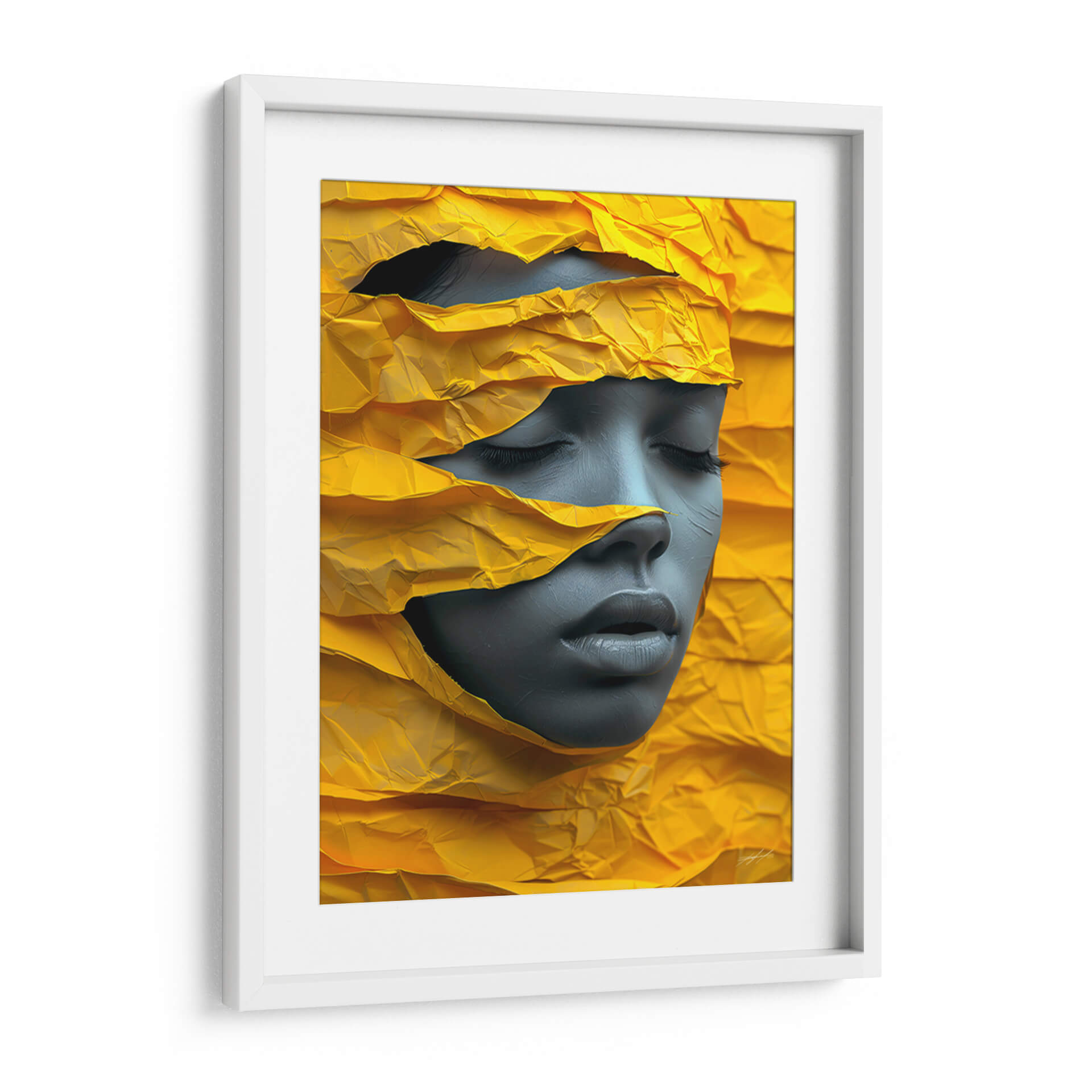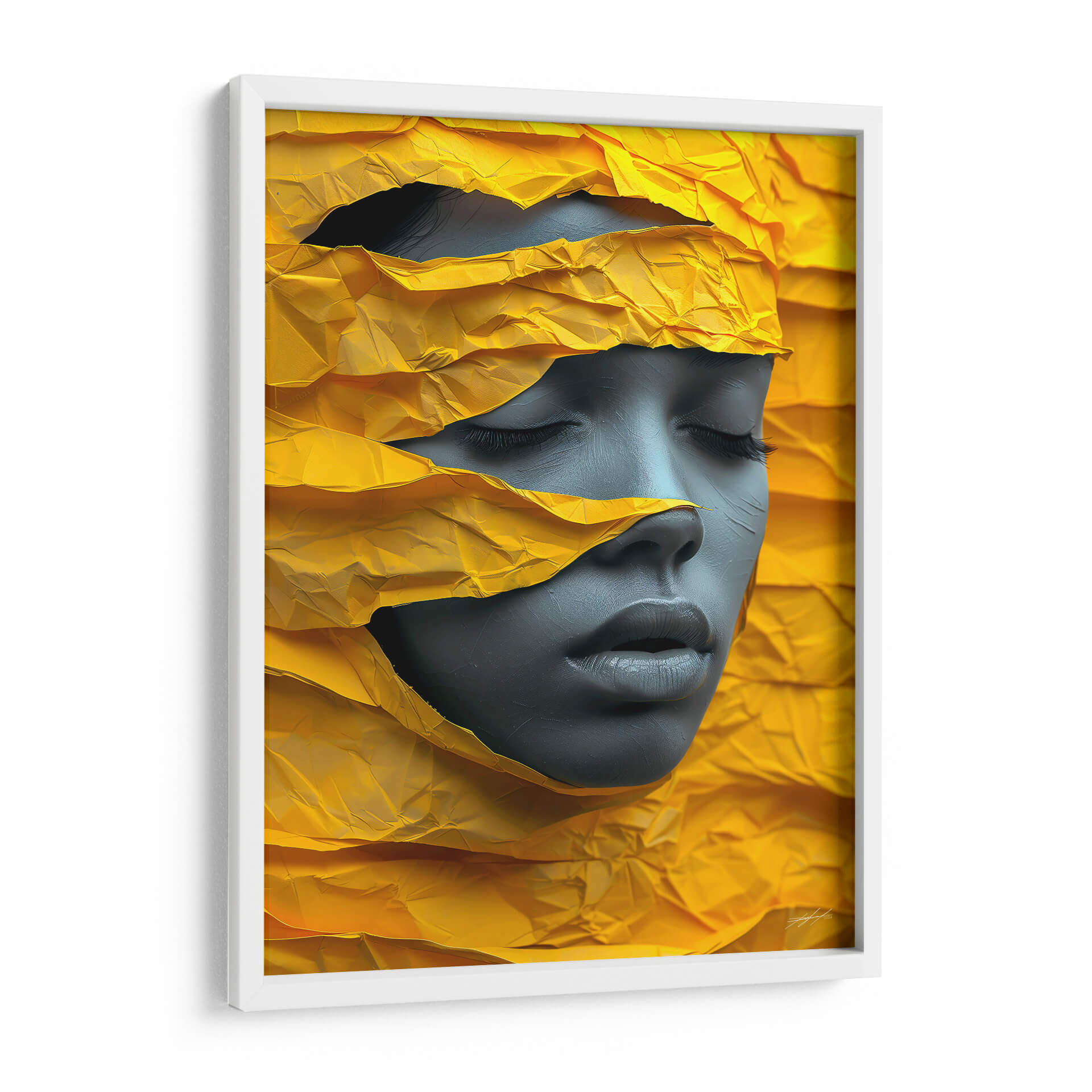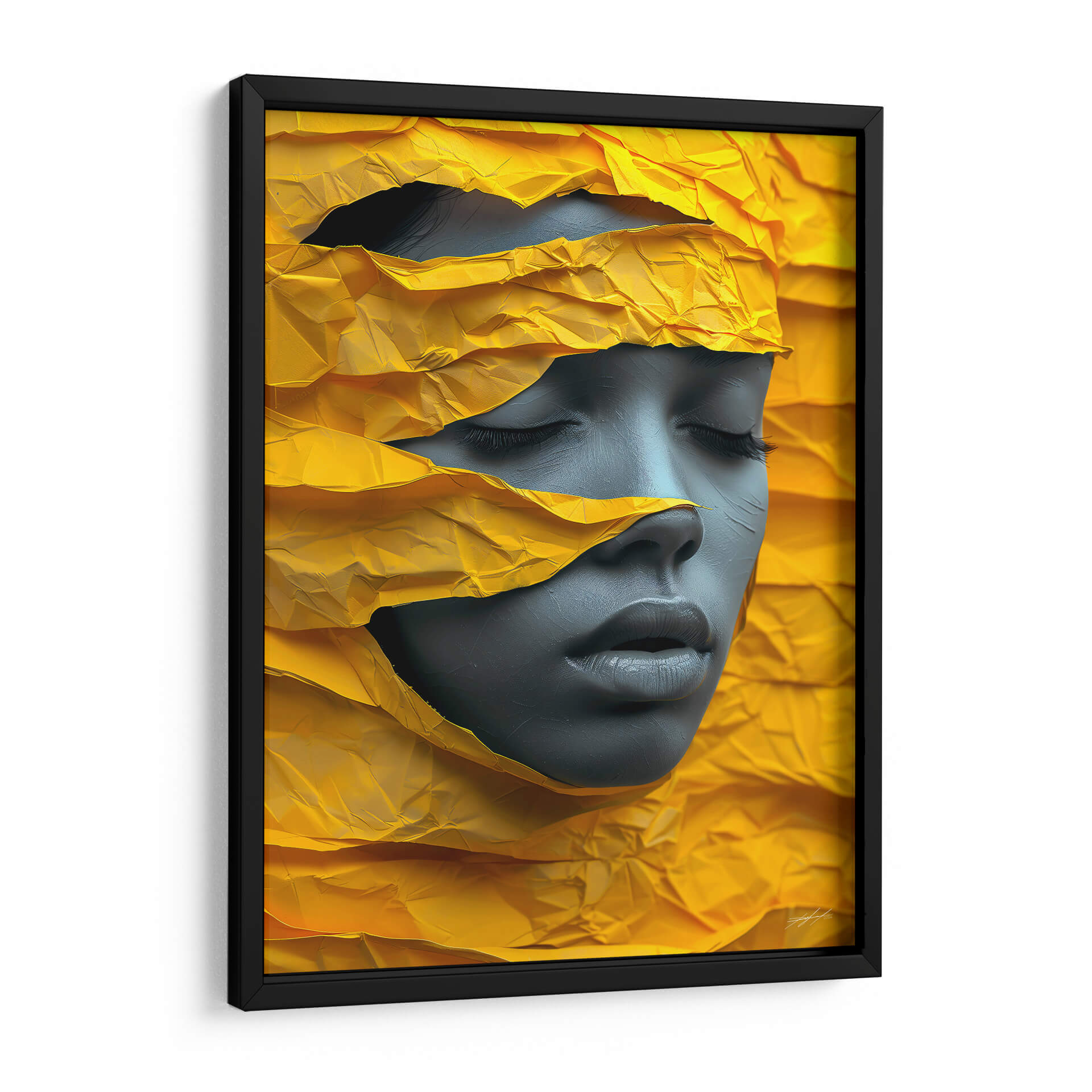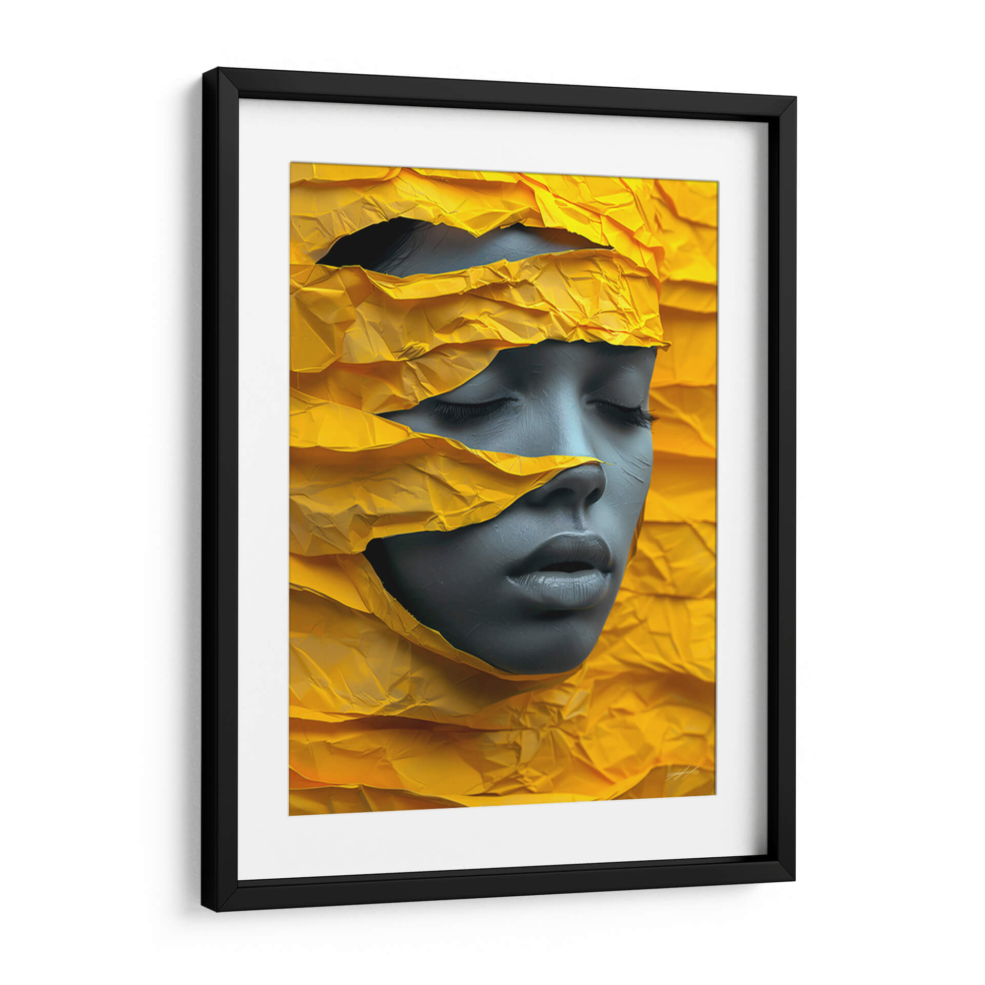 Sumérgete en la enigmática obra "Entre Papel - 18" de DeLaVegaGaming, una pieza que redefine la expresión artística contemporánea. Este cuadro decorativo captura la esencia de una figura femenina emergiendo de un vibrante mar de papel arrugado en tonos amarillos intensos. La composición se centra en el rostro de la figura, representado con una paleta de grises fríos y un detallado realismo que contrasta con la textura orgánica y dinámica del papel circundante. Las sutiles líneas y sombras del rostro, junto con los párpados cerrados, sugieren un momento de introspección o serenidad, invitando al espectador a una profunda contemplación. El juego de luces y sombras creado por las capas de papel añade profundidad y misterio a la pieza, generando un impacto visual cautivador. "Entre Papel - 18" es ideal para espacios que buscan un toque de sofisticación moderna y un punto focal de conversación. Transforma tu sala de estar, oficina o dormitorio en una galería personal con este cuadro decorativo único que evoca emociones complejas y estimula la imaginación. Su estilo surrealista y su impactante paleta de colores lo convierten en una adición memorable a cualquier colección de arte mural.