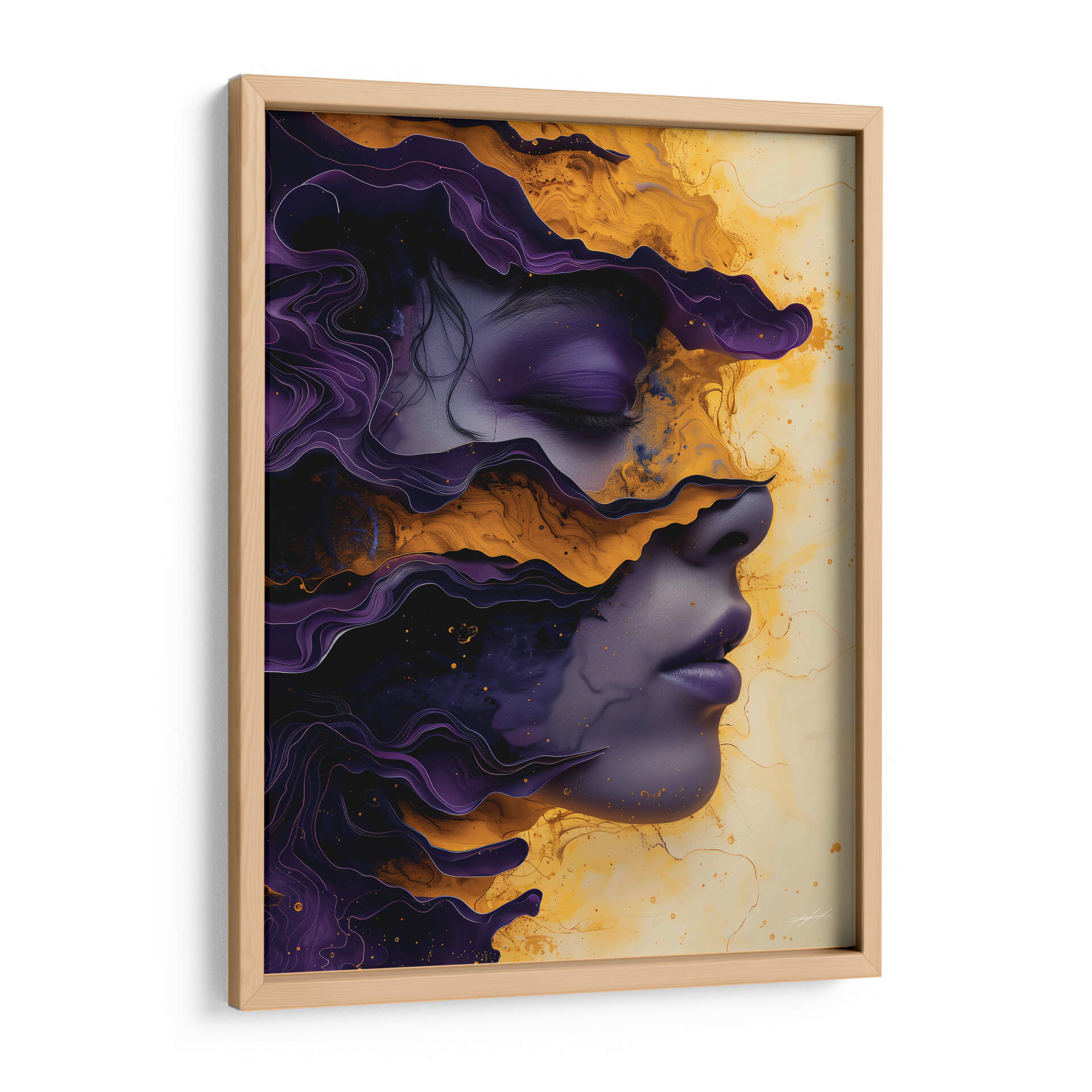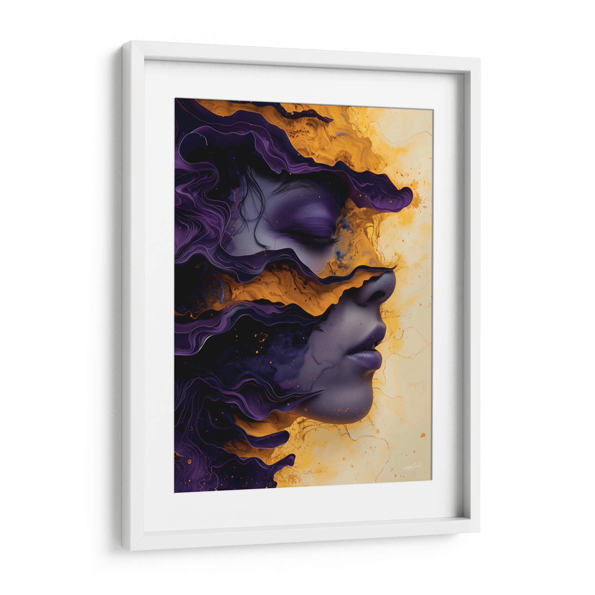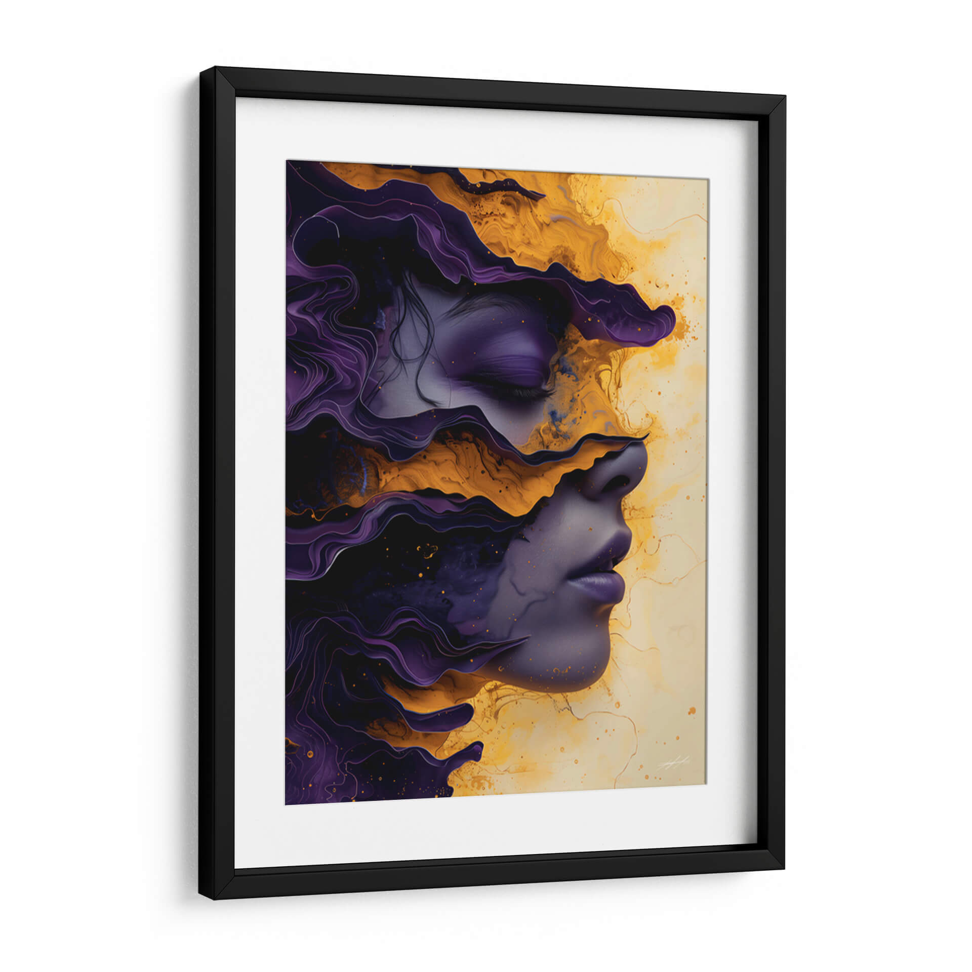 Sumérgete en la enigmática belleza de "Entre Papel - 2", una obra de arte contemporáneo que captura la esencia de la introspección y la fluidez. Este cautivador cuadro decorativo presenta un perfil femenino etéreo, con los ojos cerrados en un gesto de profunda meditación o sueño. La composición se ve realzada por capas de formas onduladas y fluidas en vibrantes tonos de púrpura y dorado, que parecen envolver y definir el rostro, creando un efecto casi onírico. Los detalles intrincados y las texturas sutiles invitan a la contemplación, mientras que la paleta de colores, dominada por el misterioso púrpura y el cálido dorado, evoca una sensación de lujo y serenidad. "Entre Papel - 2" es más que una simple pieza decorativa; es una invitación a explorar el mundo interior y la conexión entre la mente y la materia. Ideal para espacios que buscan un toque de sofisticación moderna y profundidad emocional, como salones elegantes, estudios privados o dormitorios que inviten a la calma. Añade un elemento de intriga y belleza atemporal a tu decoración con este impresionante cuadro.