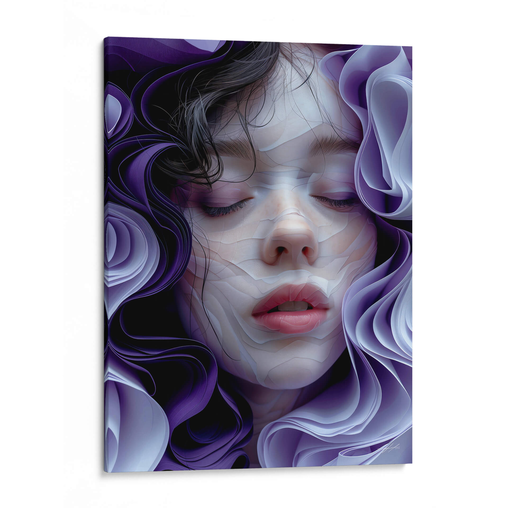 Sumérgete en la serena belleza de "Entre Papel - 3", una obra de arte digital que captura un rostro femenino etéreo envuelto en delicadas capas de formas orgánicas que recuerdan al papel plegado. Los tonos lavanda, lila y morado profundo se fusionan para crear una atmósfera de calma introspectiva y misterio suave. La composición se centra en la expresión serena de la figura, con los ojos cerrados y los labios entreabiertos, invitando a la contemplación. La textura visual creada por las capas superpuestas añade una dimensión táctil y moderna a la pieza, evocando la fragilidad y la belleza de la naturaleza o de un sueño. Este cuadro decorativo es ideal para añadir un toque de sofisticación y tranquilidad a cualquier espacio, desde un dormitorio acogedor hasta una sala de estar contemporánea o un estudio de yoga. "Entre Papel - 3" no es solo una imagen, es una invitación a la reflexión, un refugio visual que transforma cualquier pared en un lienzo de ensueño. Descubre la fusión perfecta entre la figura humana y la abstracción geométrica, una pieza que resonará con aquellos que buscan arte inspirador y visualmente cautivador para sus hogares u oficinas.