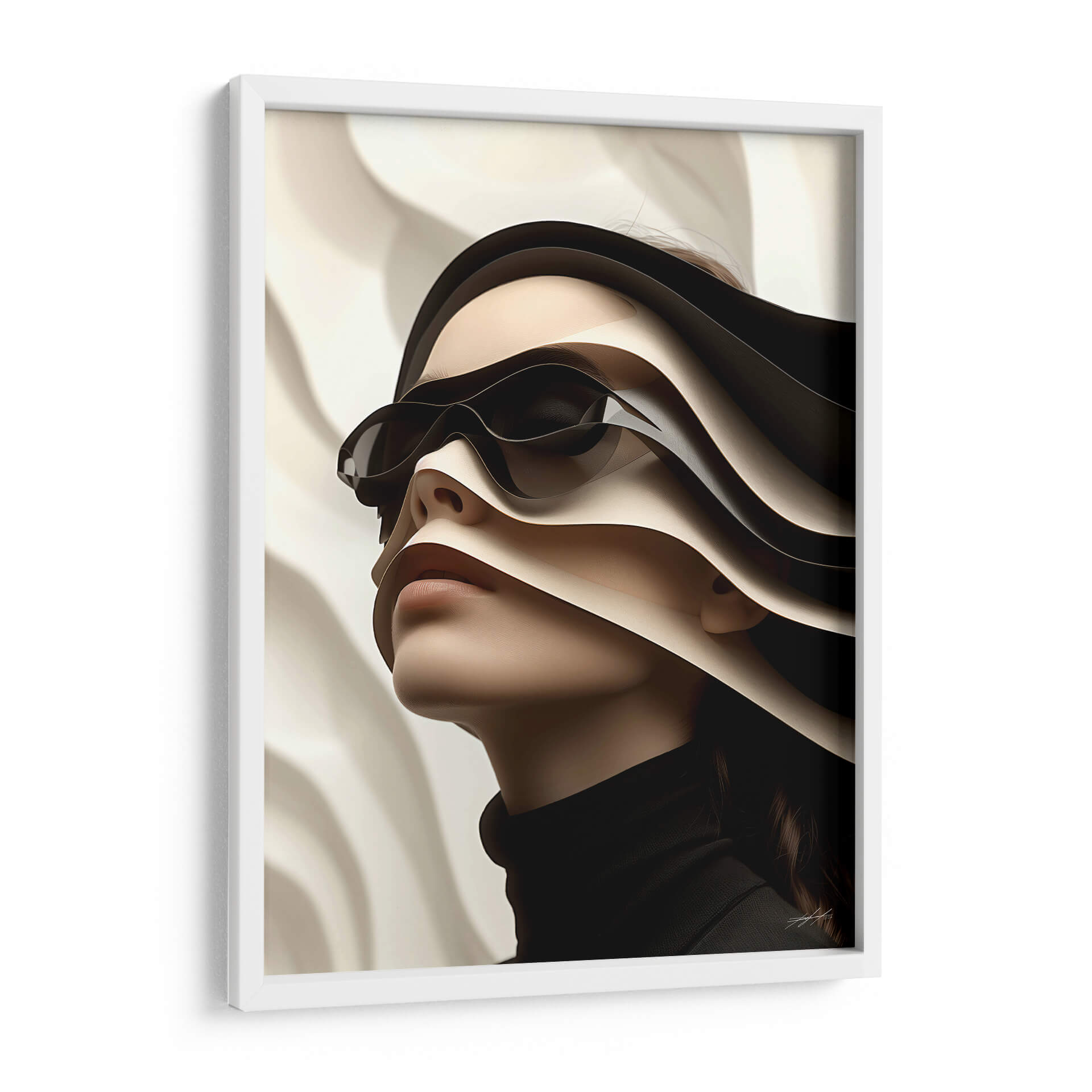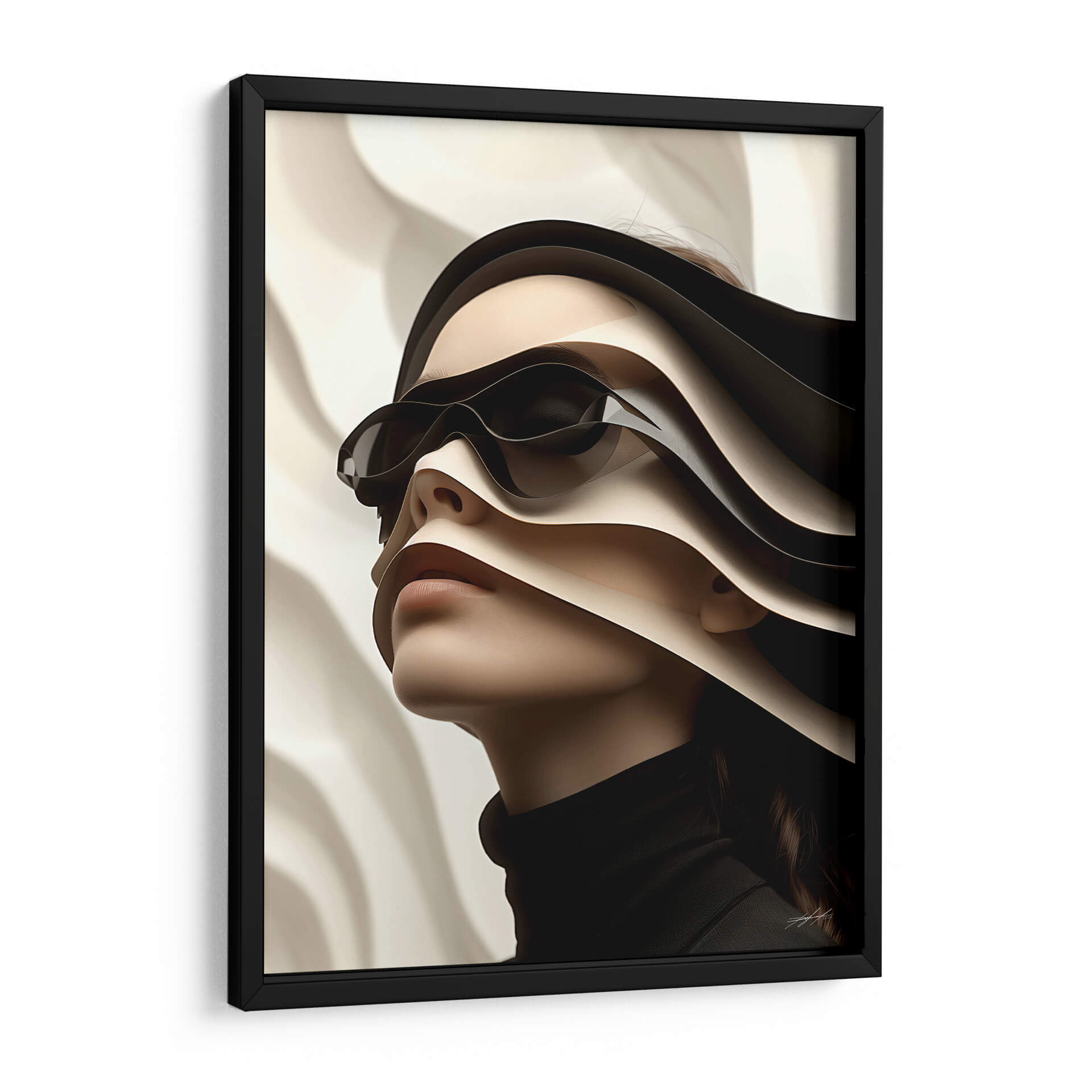 Sumérgete en la enigmática belleza de "Entre Papel - 7", una obra de arte contemporáneo que reinterpreta el retrato a través de una audaz abstracción. Este cuadro decorativo presenta una figura femenina cuyos rasgos son delicadamente descompuestos y recompuestos por capas de formas onduladas en tonos neutros y oscuros. Las líneas fluidas que componen el cabello y el rostro crean una sensación de movimiento y profundidad, mientras que las gafas de sol oscuras añaden un velo de misterio e intriga. La paleta de colores, dominada por blancos rotos, beiges suaves y negros intensos, confiere a la pieza una elegancia sofisticada y moderna, evocando una atmósfera de introspección y glamour. La textura visual creada por las capas superpuestas, que recuerdan al papel cortado o esculpido, aporta un toque artístico único y contemporáneo. "Entre Papel - 7" es la elección perfecta para quienes buscan una pieza de arte para pared que dialogue con espacios de diseño vanguardista, oficinas ejecutivas o salones que deseen un punto focal de carácter y estilo. Su composición cautivadora y su estética atemporal la convierten en una adición distintiva para cualquier colección de arte moderno, invitando a la contemplación y la admiración.