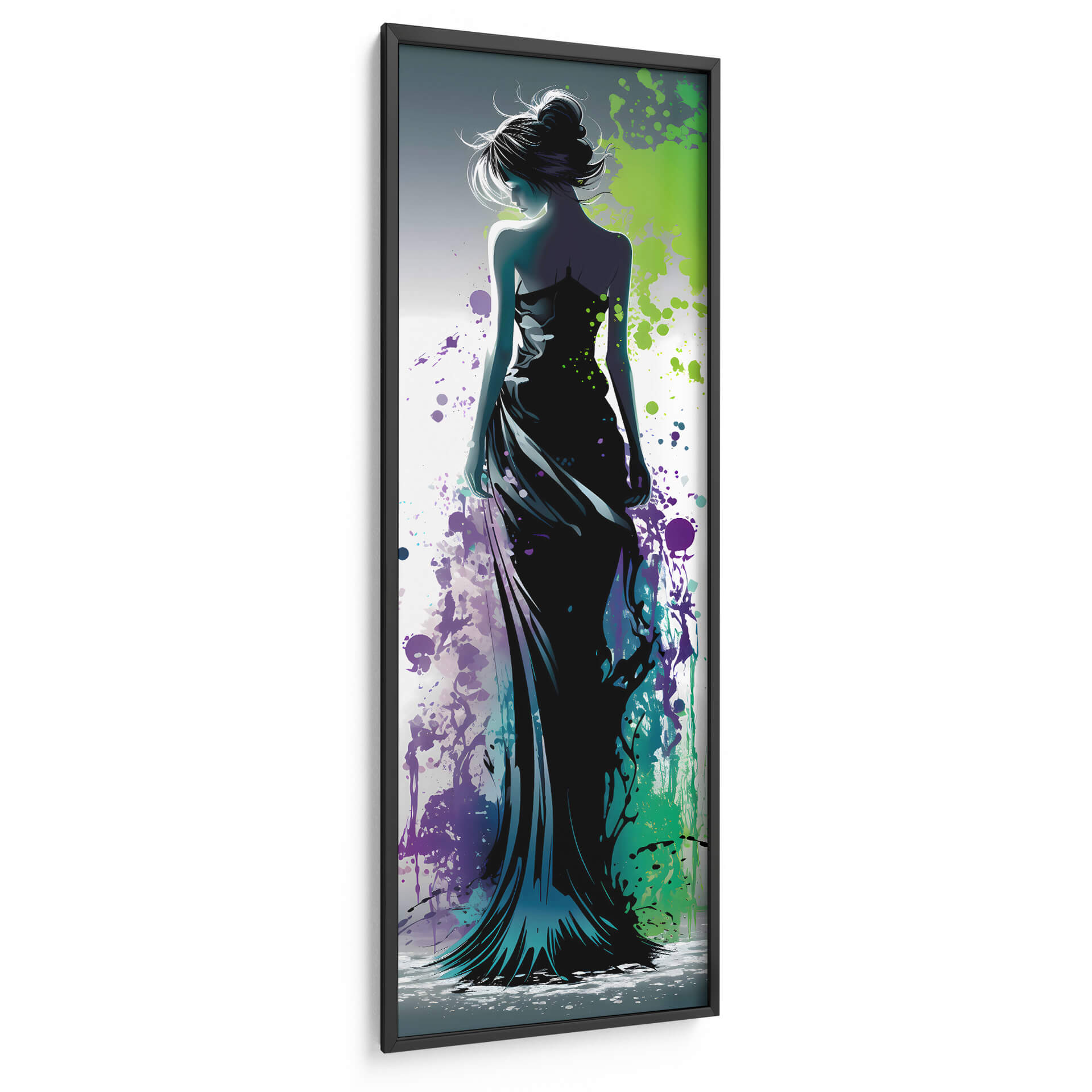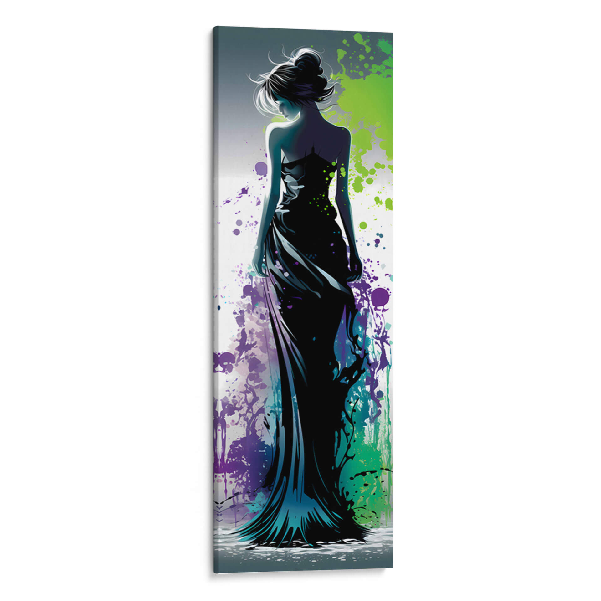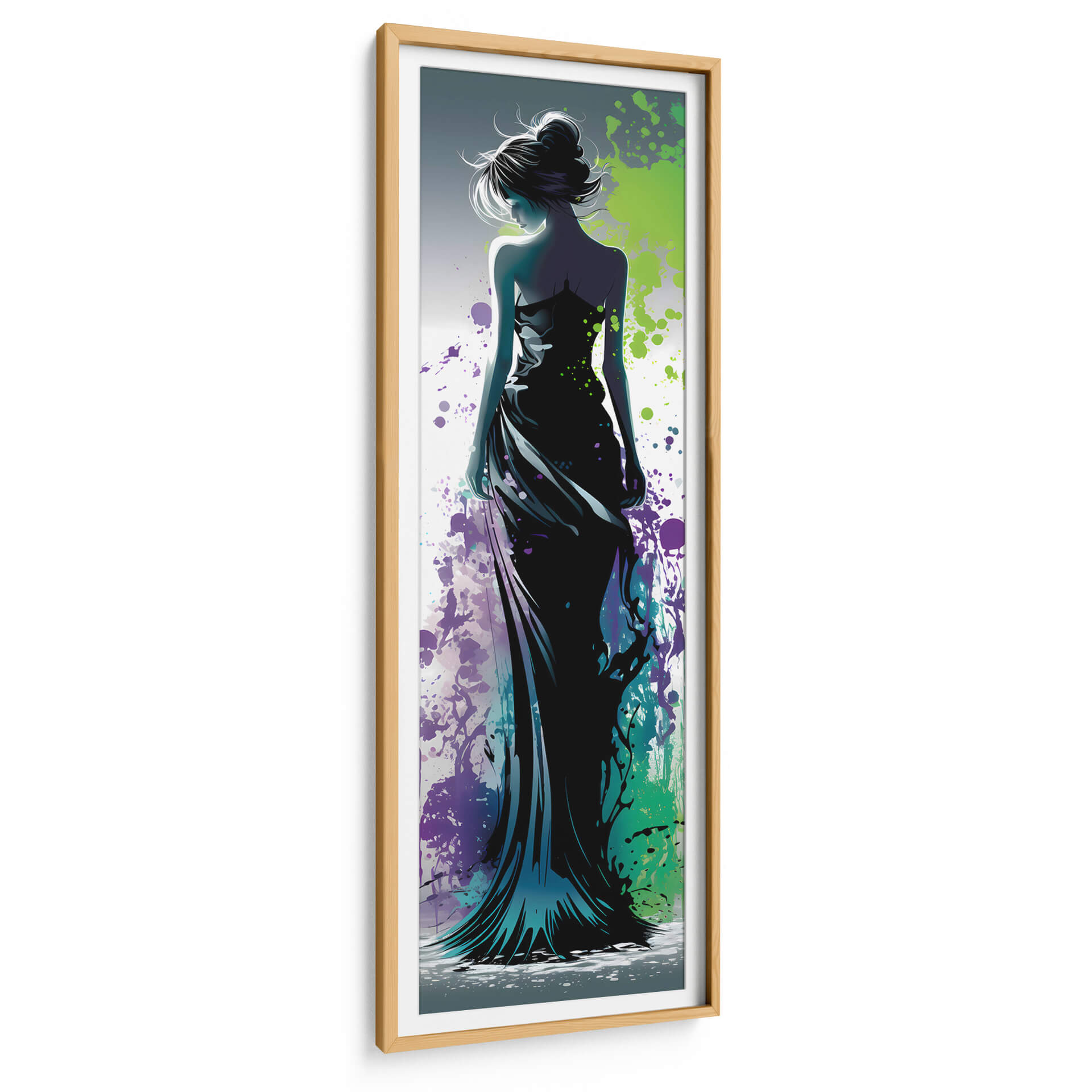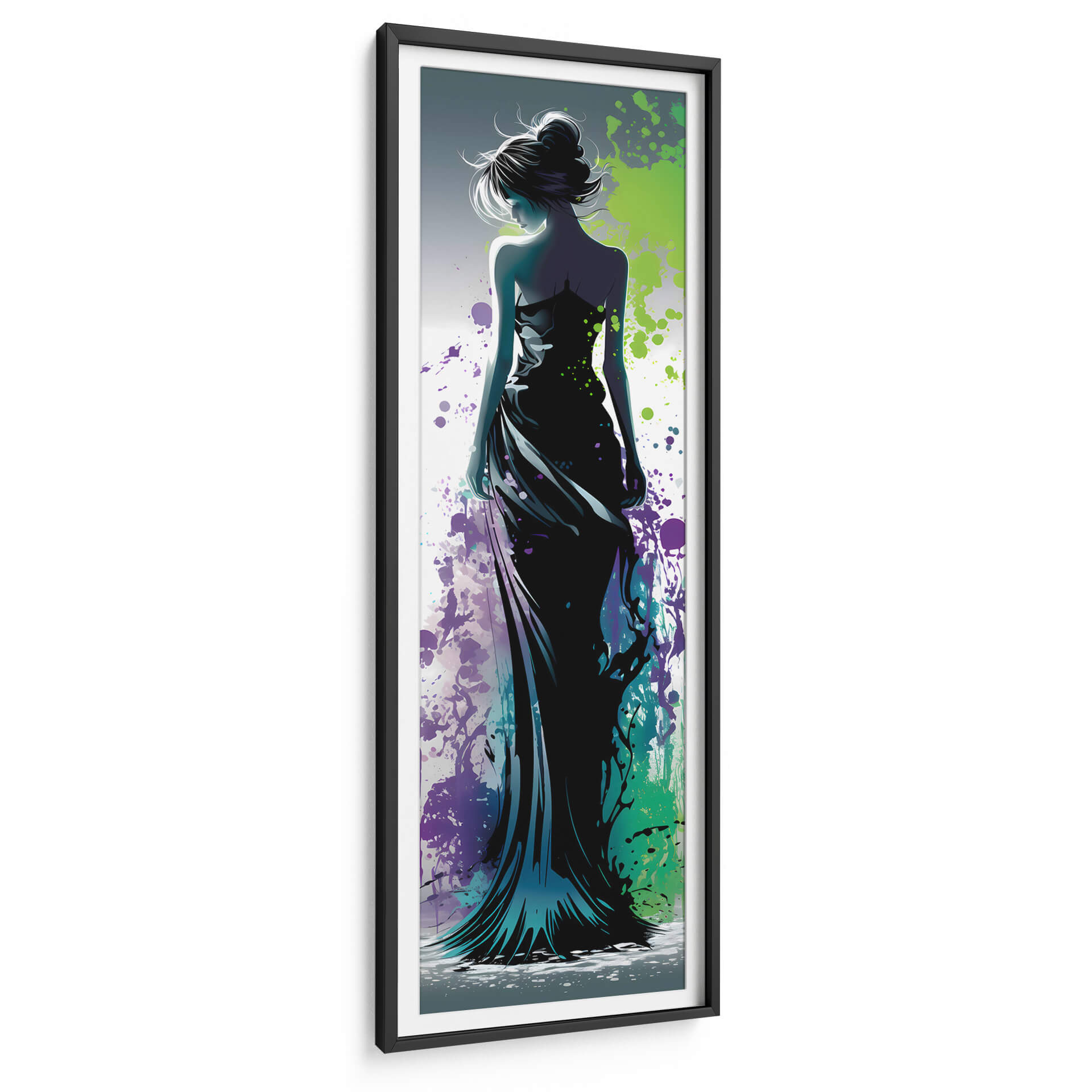 Sumérgete en la elegancia moderna con "Grunge Chic - 1", una obra de arte digital que captura la esencia de la sofisticación con un toque vanguardista. Esta pieza presenta una figura femenina estilizada, envuelta en un vestido negro de noche, cuya silueta se recorta contra un fondo abstracto lleno de vibrantes salpicaduras de color en tonos verde lima, morado intenso y toques de azul turquesa. La composición, con la figura de espaldas y la mirada gacha, evoca una sensación de introspección y misterio, mientras que las explosiones de color añaden una energía dinámica y contemporánea. "Grunge Chic - 1" es ideal para aquellos que buscan añadir un punto focal audaz y lleno de personalidad a espacios como salas de estar, recibidores o incluso estudios creativos. Su estilo único, que fusiona el clasicismo de la figura con la audacia del arte urbano y abstracto, la convierte en una elección perfecta para interiores modernos, eclécticos o con una inclinación artística pronunciada. Transforma tu pared en una declaración de estilo con este cuadro decorativo que irradia confianza y un espíritu desenfadado pero chic.
