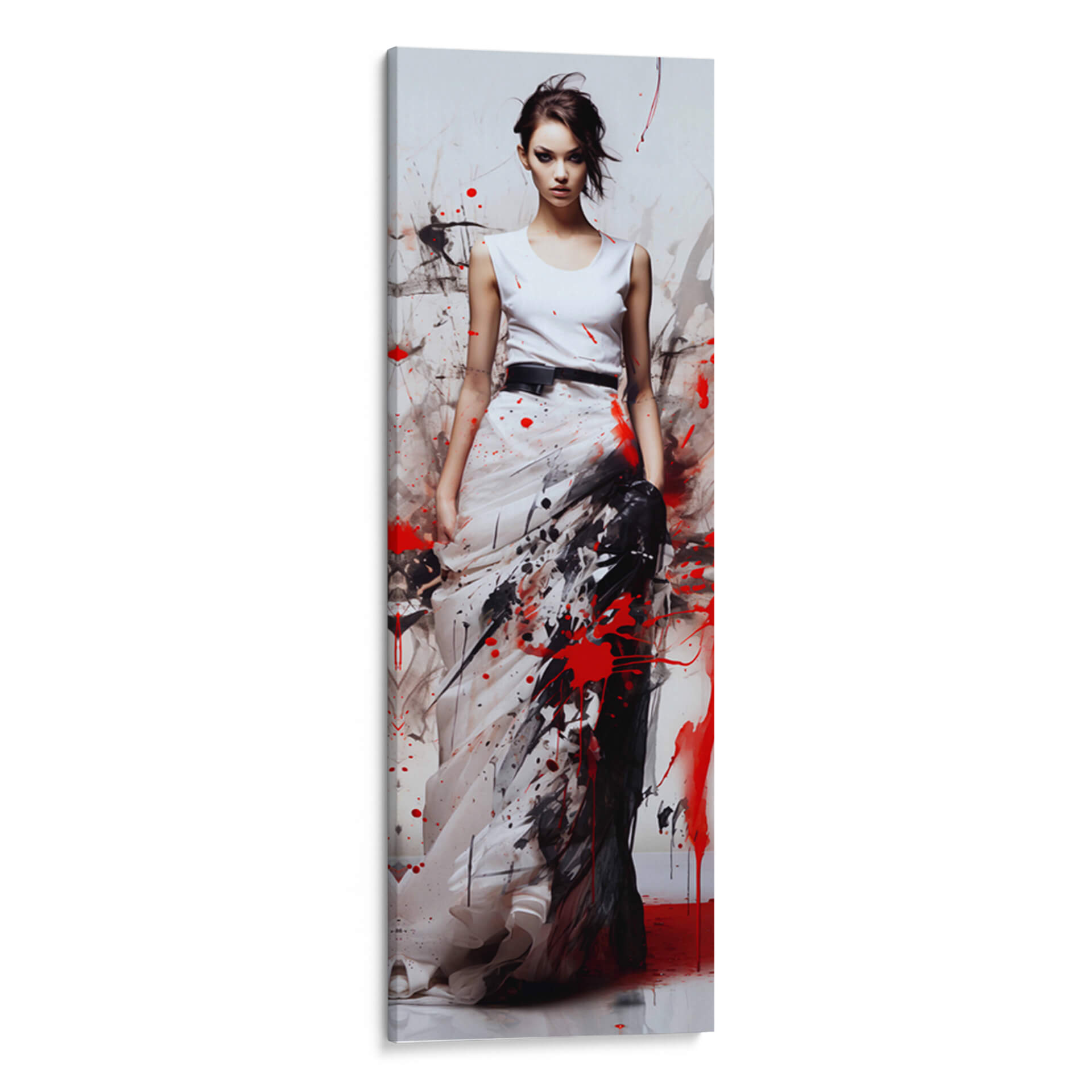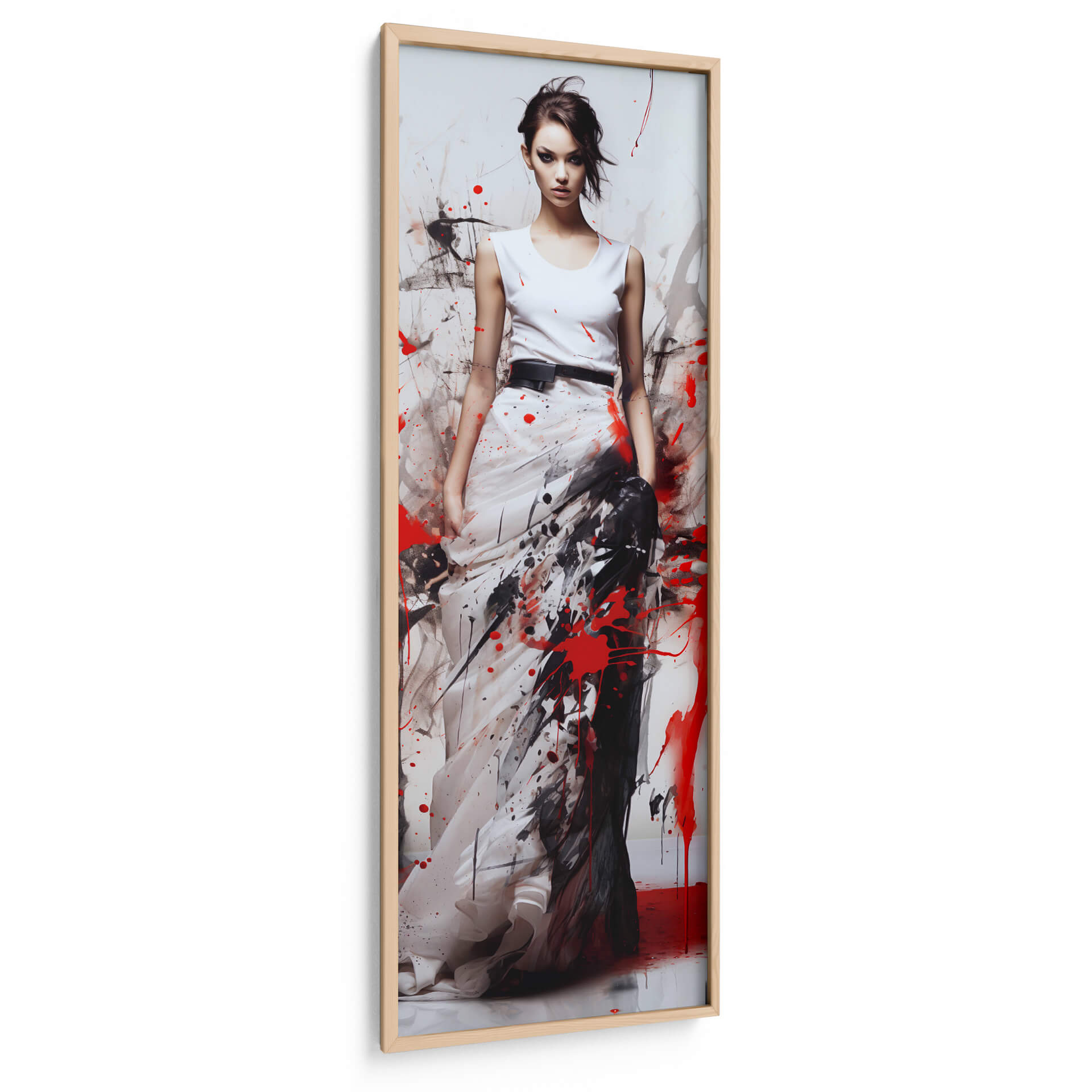 Sumérgete en la audacia y el estilo con "Grunge Chic - 11", una obra de arte contemporáneo que redefine la elegancia urbana. Esta pieza visualmente impactante presenta una figura femenina estilizada, envuelta en un vestido etéreo que se fusiona con explosiones de pintura roja y pinceladas dramáticas en negro y gris. La composición, dominada por contrastes marcados y una energía cruda, evoca una sensación de moda vanguardista y una actitud desafiante. Los toques vibrantes de rojo sangre salpican el lienzo, añadiendo un punto focal de intensidad que contrasta con la base neutra y las sombras sutiles. "Grunge Chic - 11" es más que una decoración; es una declaración de intenciones, perfecta para espacios que buscan reflejar personalidad, modernidad y un toque de rebeldía chic. Ideal para salas de estar, estudios o cualquier ambiente que aspire a ser un reflejo de la sofisticación contemporánea con un giro audaz. Este cuadro decorativo se integra a la perfección en interiores de estilo moderno, industrial o ecléctico, aportando un elemento de diseño único y cautivador que invita a la contemplación y la admiración. Transforma tu hogar u oficina con esta pieza que irradia carácter y un sentido inconfundible de estilo.