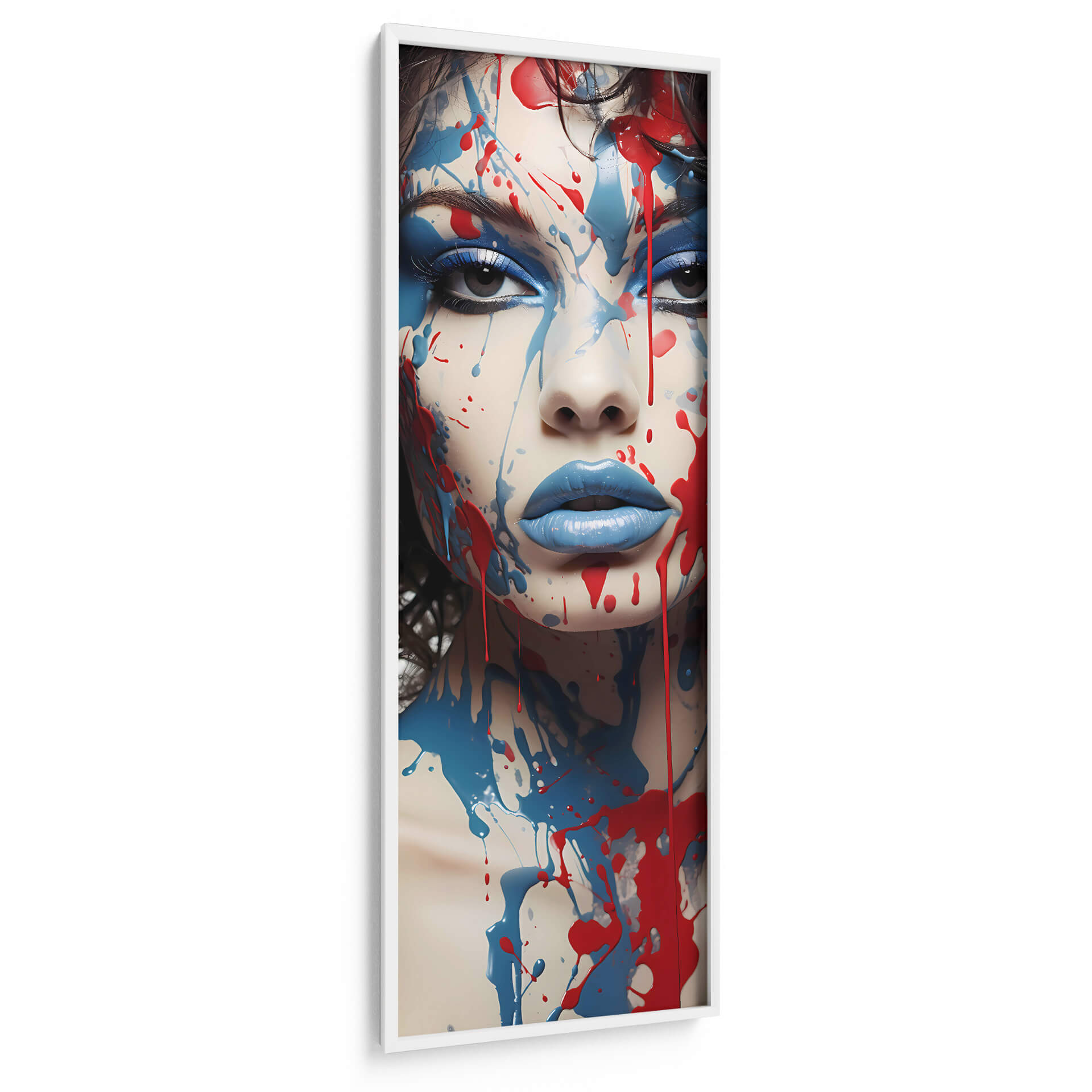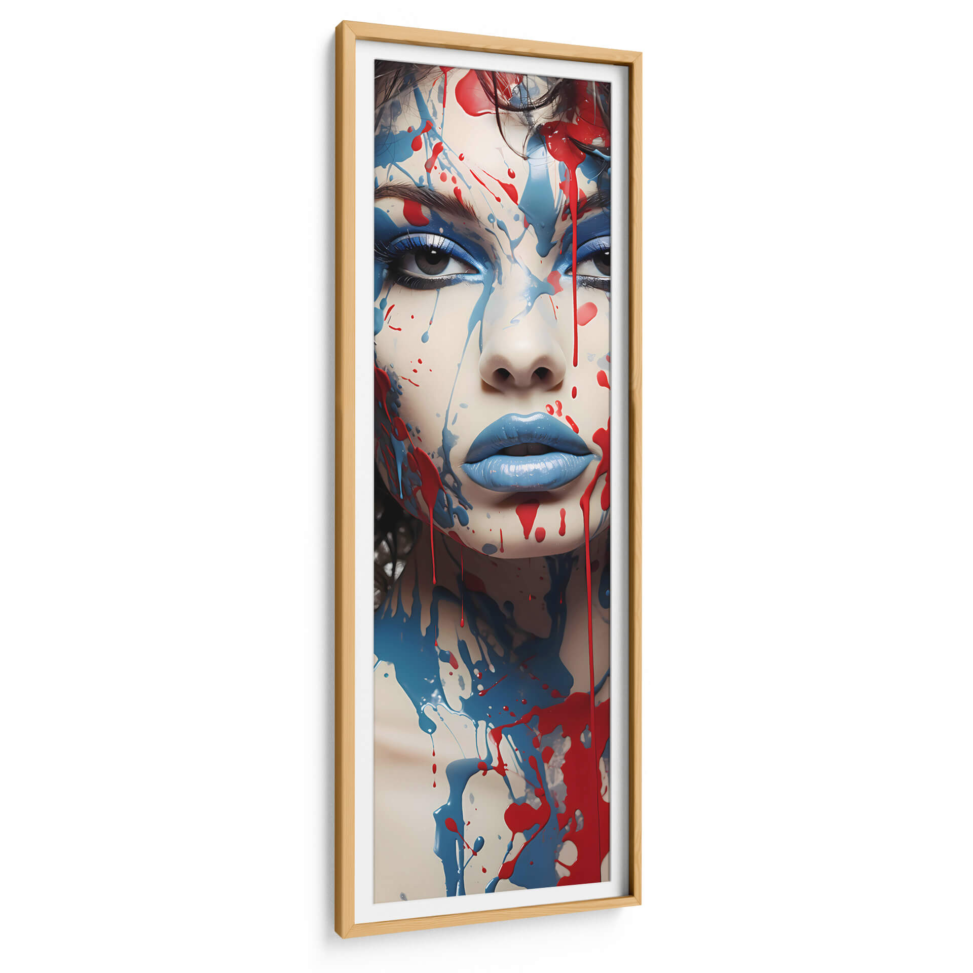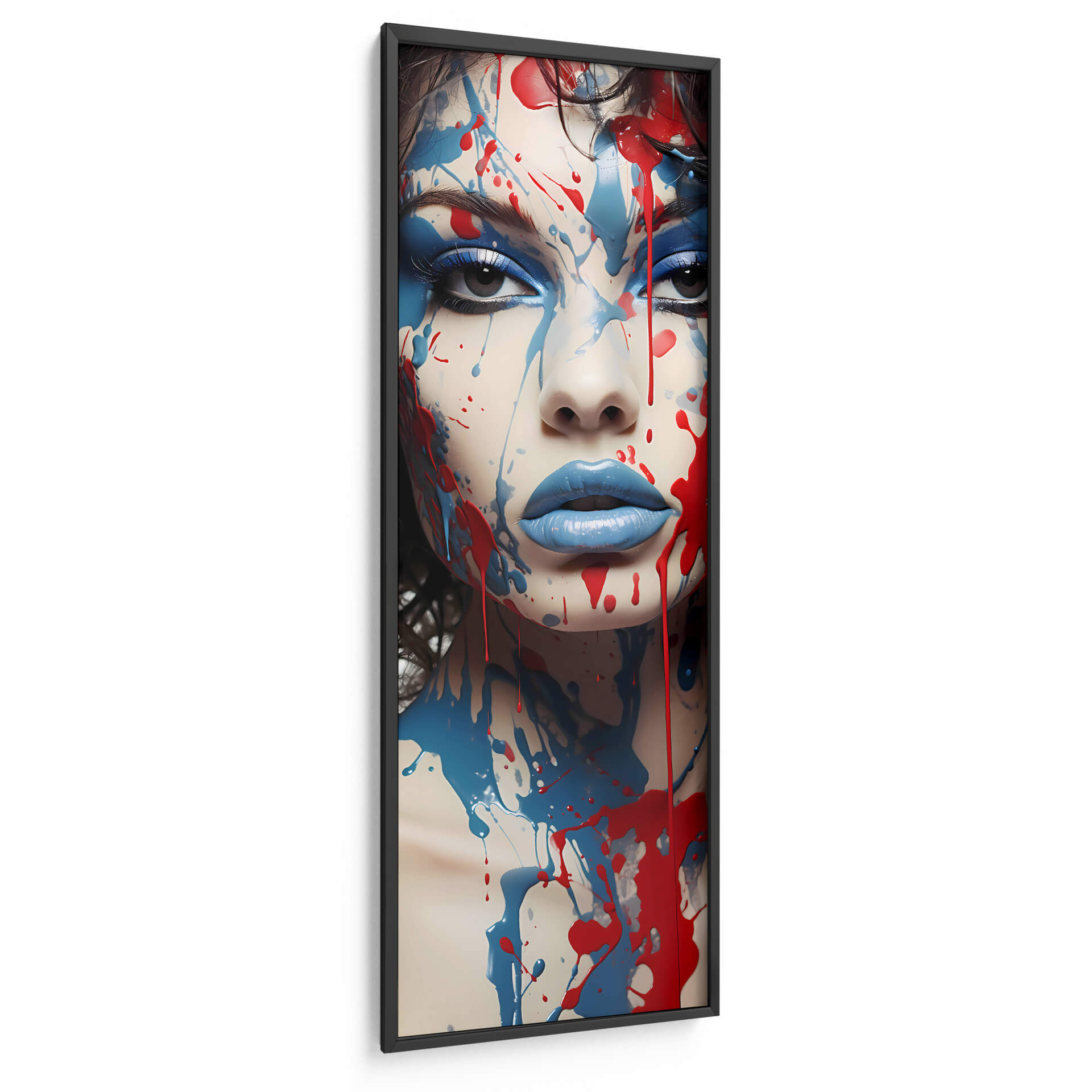 Sumérgete en la intensidad visual de "Grunge Chic - 6", una obra de arte contemporáneo que desafía las convenciones y captura la mirada. Este cuadro decorativo presenta un primer plano dramático de un rostro femenino, donde la pintura abstracta en tonos vibrantes de azul eléctrico y rojo intenso se derrama y salpica, creando un efecto audaz y enérgico. Los labios de un azul seductor contrastan con las salpicaduras de color, añadiendo un toque de misterio y sofisticación. El estilo, que fusiona elementos del arte urbano y el pop art, genera una atmósfera cargada de expresión y modernidad. "Grunge Chic - 6" es ideal para aquellos que buscan añadir un punto focal dinámico y lleno de personalidad a su sala de estar, estudio u oficina. Transforma cualquier espacio con este impactante cuadro decorativo que habla de audacia, creatividad y estilo vanguardista. Su composición vertical y su paleta de colores contrastantes lo convierten en una pieza versátil, capaz de complementar decoraciones modernas, industriales o eclécticas, aportando un toque de arte contemporáneo que inspira y cautiva.