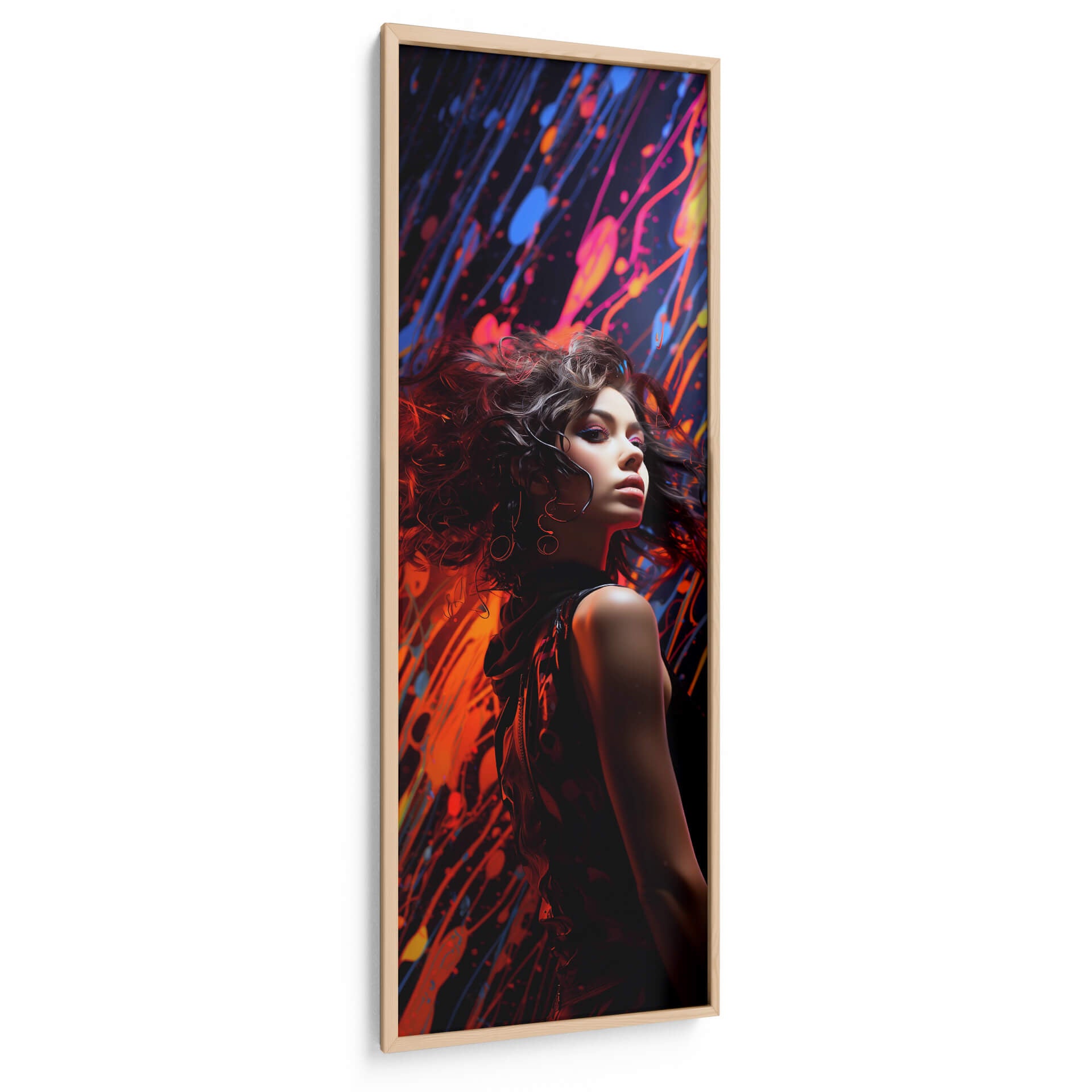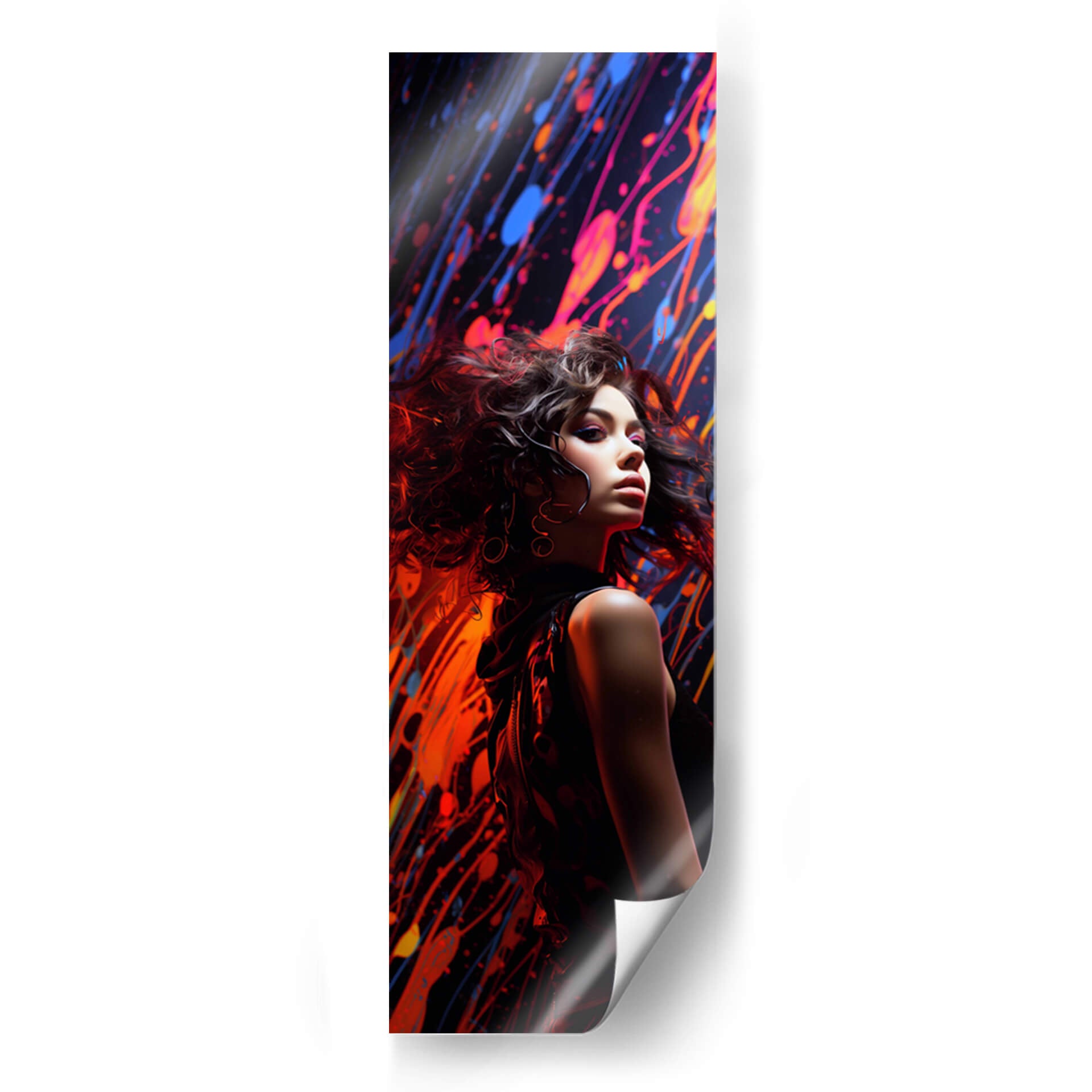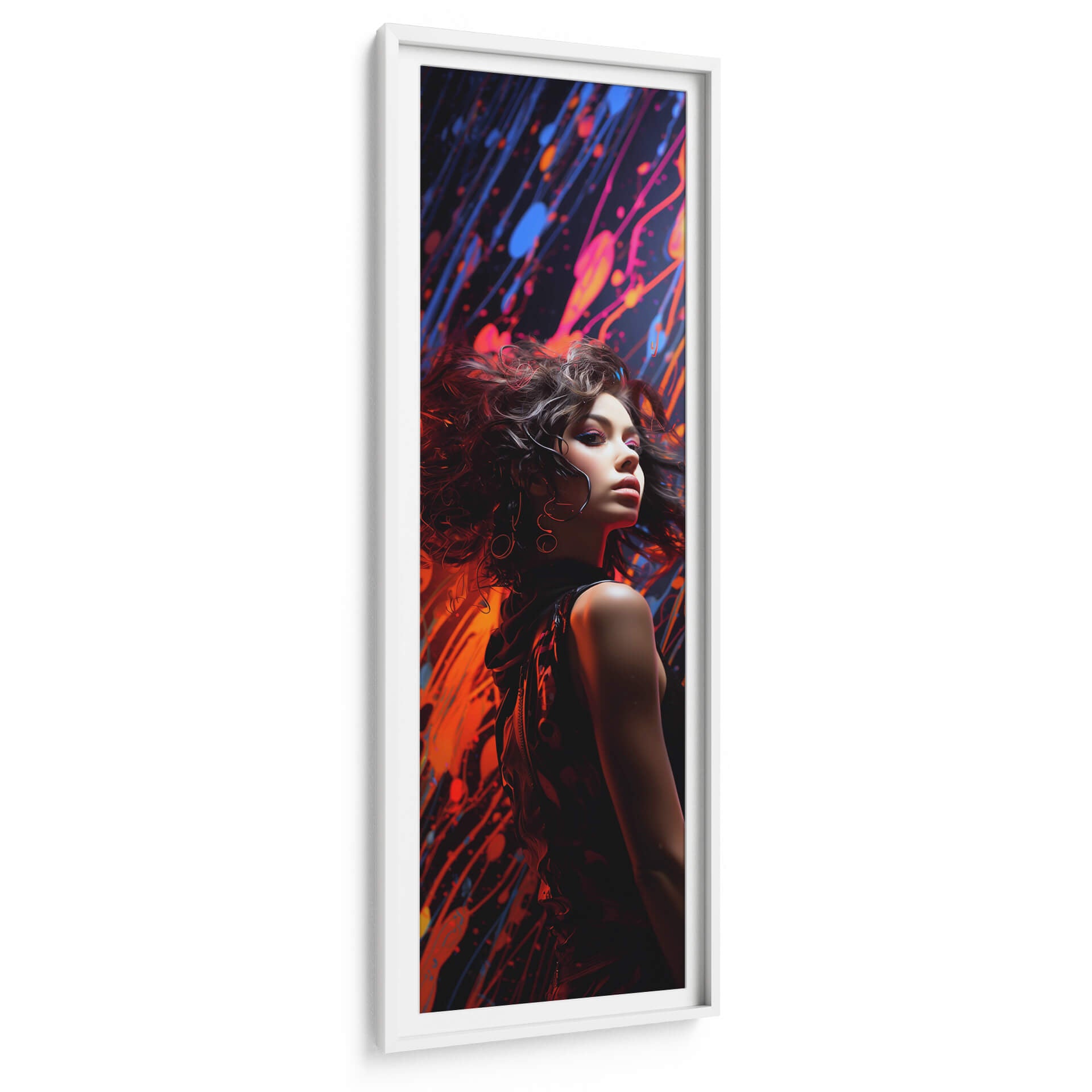 Sumérgete en la vibrante y enigmática obra de arte "Grunge Chic - 9", una pieza que fusiona la modernidad urbana con una estética audaz y contemporánea. Este cuadro decorativo presenta a una joven en primer plano, cuya mirada intensa y cabello alborotado añaden un toque de misterio y carácter a la composición. El fondo se despliega en un torbellino de salpicaduras de pintura en tonos intensos de rojo, azul y rosa eléctrico, creando un contraste dinámico y lleno de energía con la figura central. El estilo se define como arte digital contemporáneo, con una técnica que evoca la fluidez del graffiti y la expresividad del arte urbano. La paleta de colores vibrantes y las pinceladas enérgicas transmiten una sensación de movimiento, rebeldía y sofisticación, ideal para espacios que buscan un punto focal impactante. "Grunge Chic - 9" es perfecto para añadir personalidad a una sala de estar moderna, un estudio creativo o incluso un espacio comercial que desee proyectar una imagen vanguardista y audaz. Esta obra es una declaración de estilo, diseñada para aquellos que aprecian el arte que desafía convenciones y celebra la individualidad, transformando cualquier pared en una galería de arte personal y cautivadora.