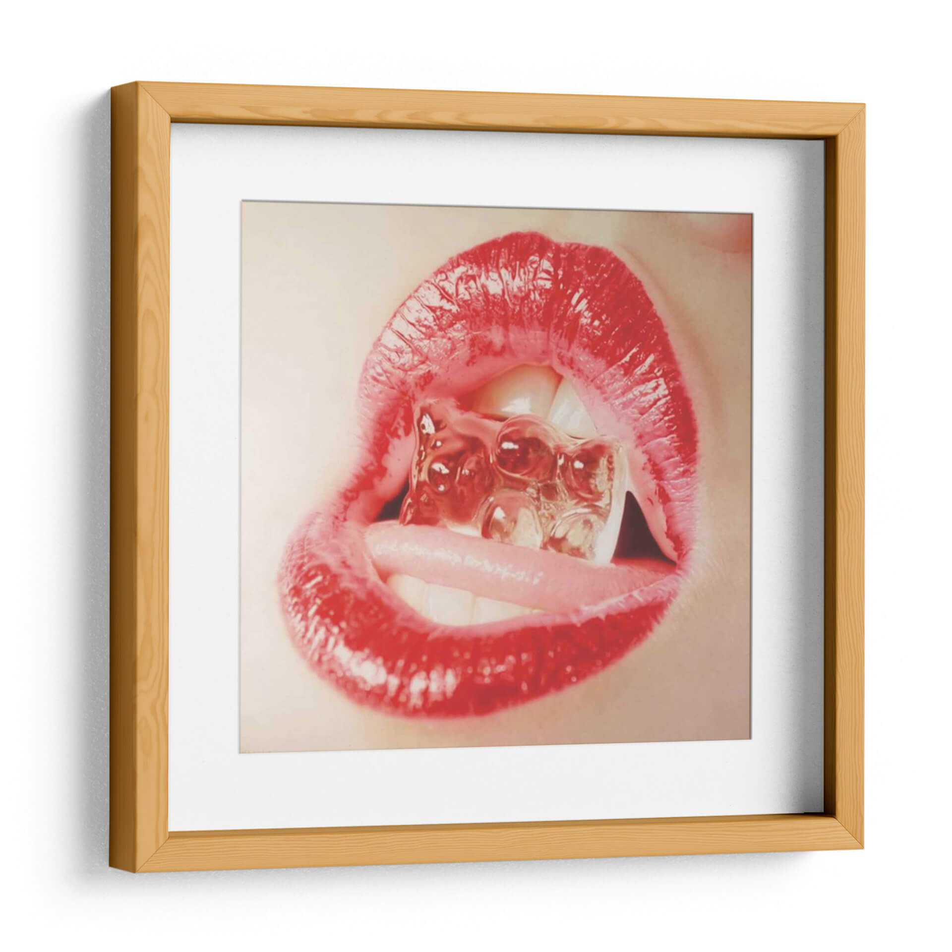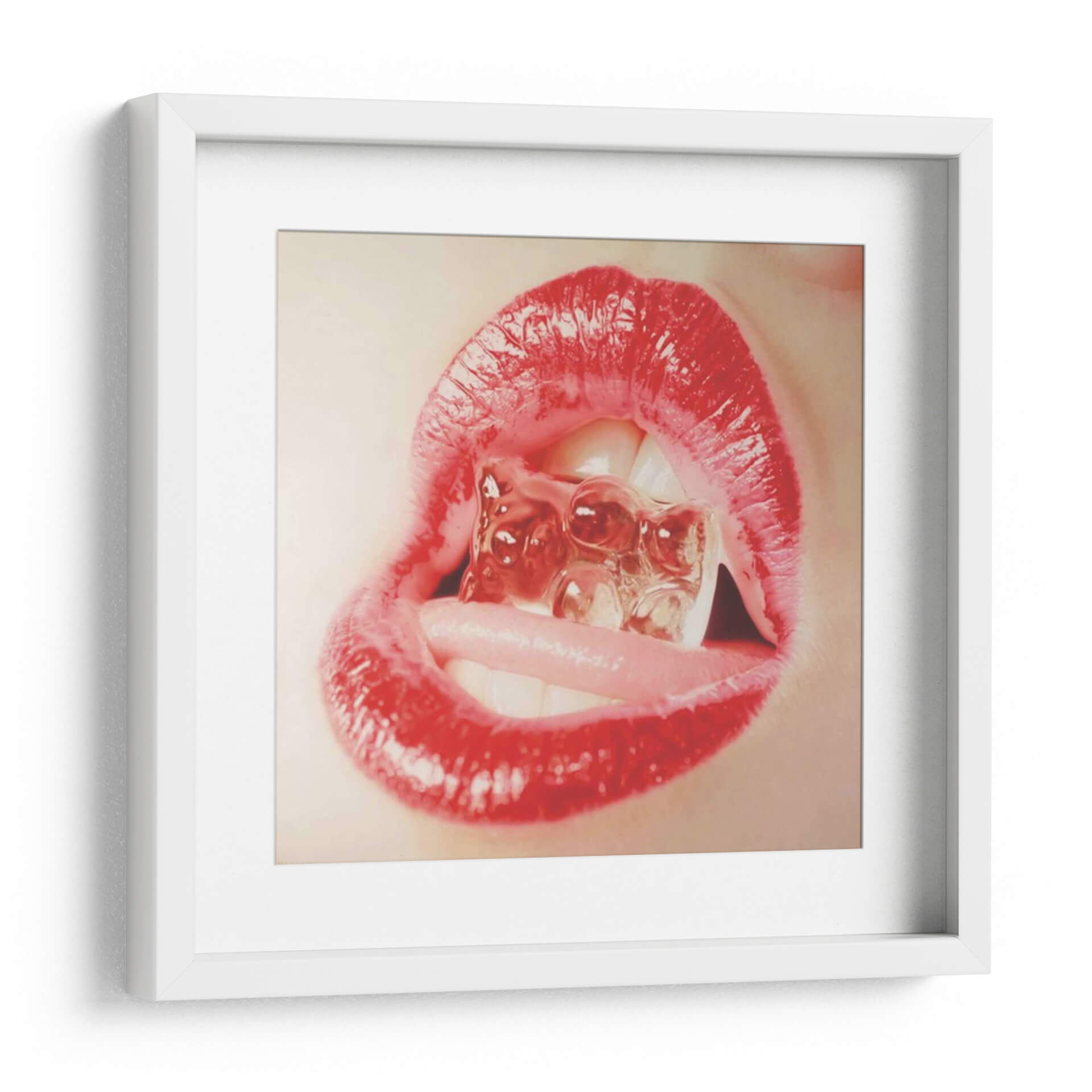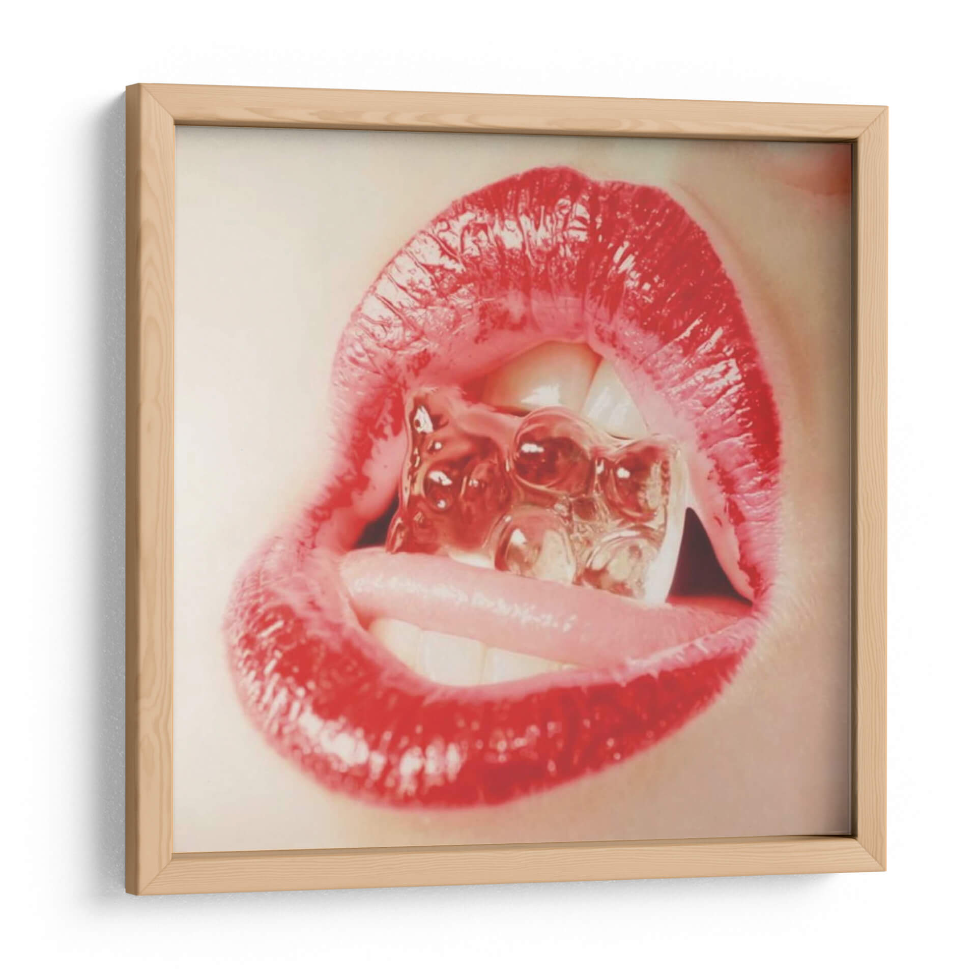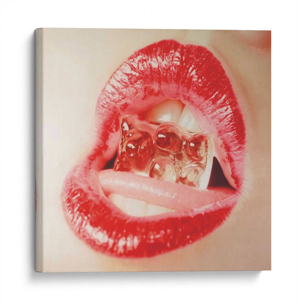 Sumérgete en la audaz y provocativa obra de arte "Gummy Bite", una pieza visual que captura la atención con su primer plano íntimo de labios rojos brillantes mordiendo dulces translúcidos. Esta imagen evoca sensaciones de placer, dulzura y un toque de picardía, invitando a la contemplación sobre los deseos y las indulgencias. La paleta de colores vibrantes, dominada por el intenso rojo de los labios y los tonos rosados de la piel, crea un contraste llamativo con la transparencia y las burbujas internas de los dulces, sugiriendo texturas y temperaturas. El estilo fotográfico realista, con un enfoque nítido en la boca, realza la sensualidad y la curiosidad de la escena. Es un cuadro decorativo perfecto para añadir un punto focal de conversación a cualquier espacio moderno, una sala de estar atrevida o incluso un tocador chic. "Gummy Bite" es más que una simple imagen; es una invitación a disfrutar de los pequeños placeres de la vida con un estilo inconfundible, aportando energía y carácter a tu decoración.