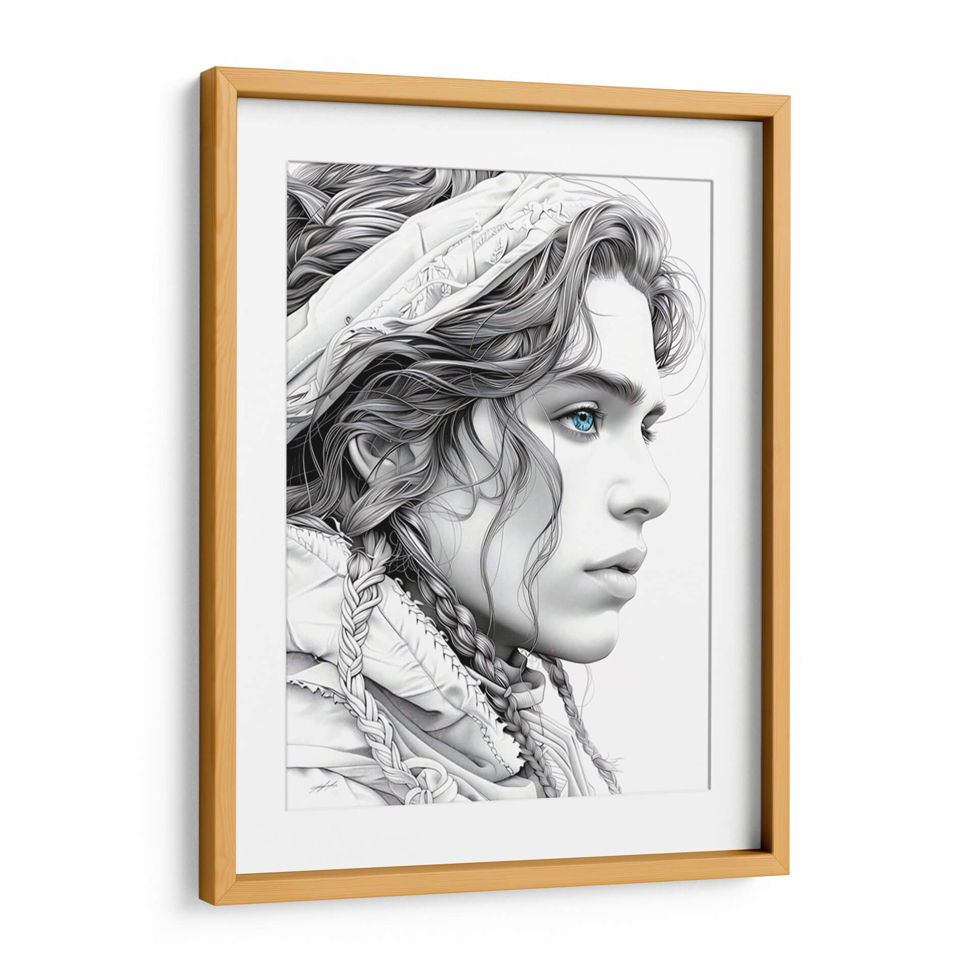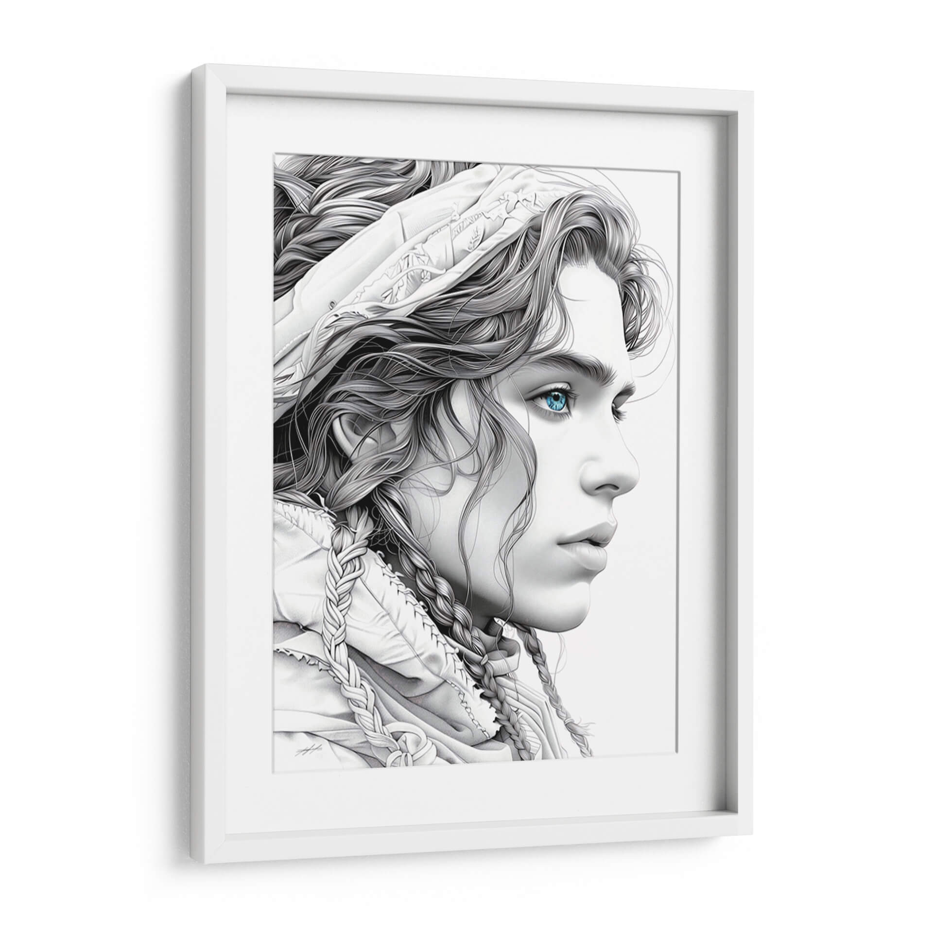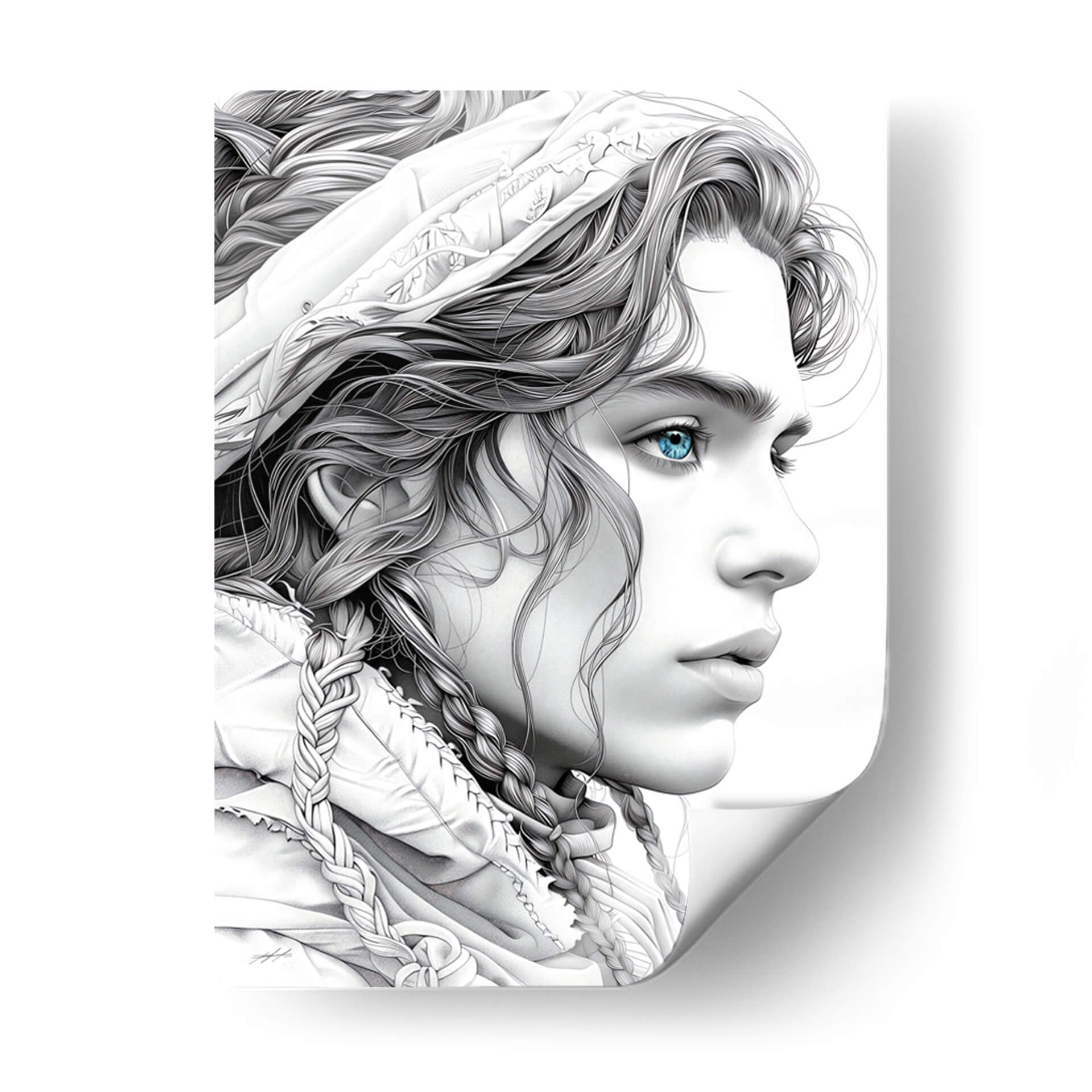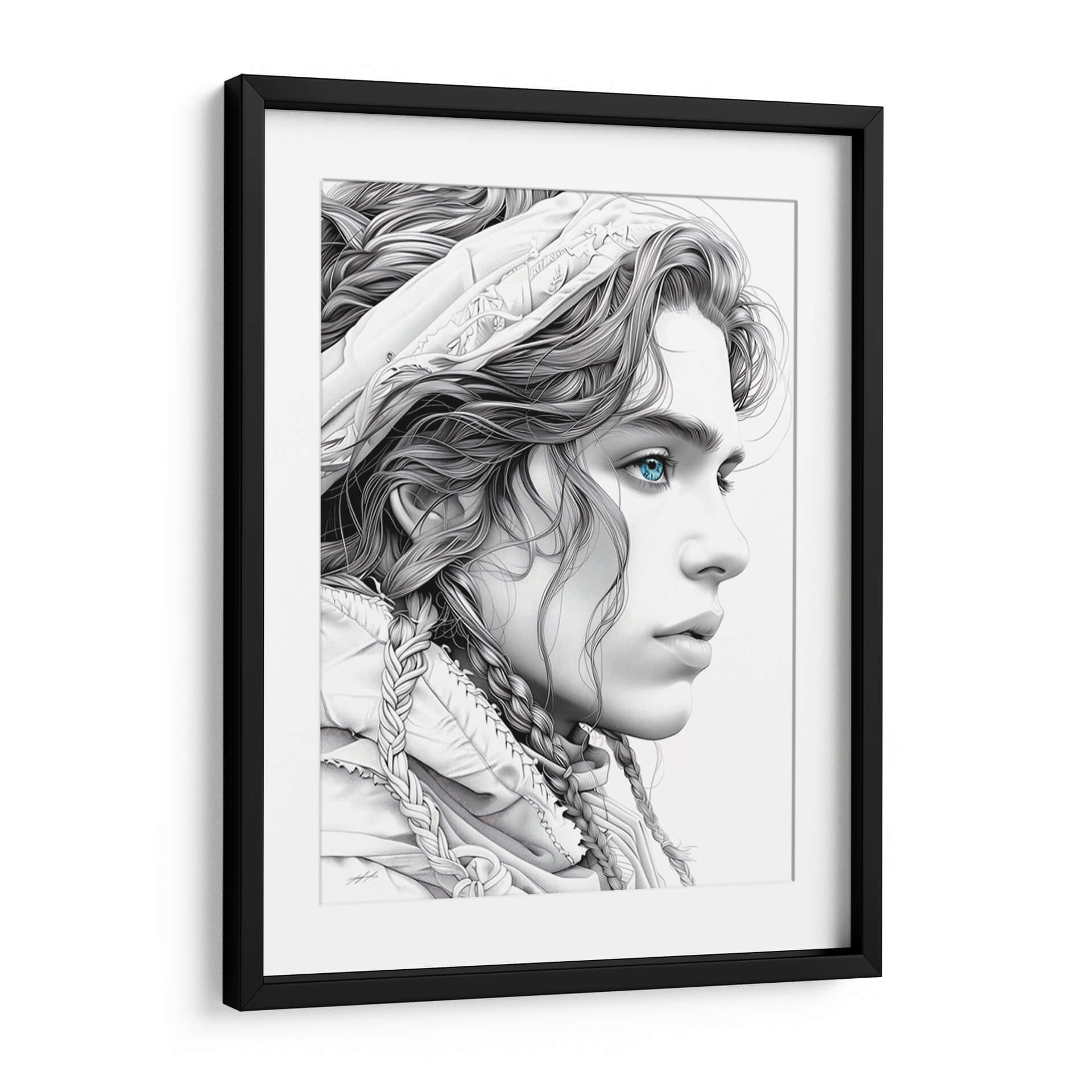Sumérgete en la mirada penetrante de 'La Chica Nómada', una obra de arte digital que captura la esencia de la aventura y la introspección. Este cuadro decorativo presenta un retrato íntimo de una joven con detalles intrincados en su cabello trenzado y un pañuelo que evoca un espíritu libre. Los vibrantes ojos azules contrastan sutilmente con la paleta monocromática predominante, añadiendo un toque de misterio y profundidad a la pieza. El estilo detallado y la composición centrada en el rostro invitan a la contemplación, creando una atmósfera de serenidad y audacia al mismo tiempo. Ideal para quienes buscan añadir un punto focal cautivador y lleno de personalidad a su sala de estar, dormitorio u oficina. Este cuadro contemporáneo es perfecto para espacios modernos, bohemios o eclécticos, aportando una narrativa visual que inspira y fascina. Descubre la belleza de la exploración y la identidad con esta pieza única de arte de pared que transformará cualquier ambiente.