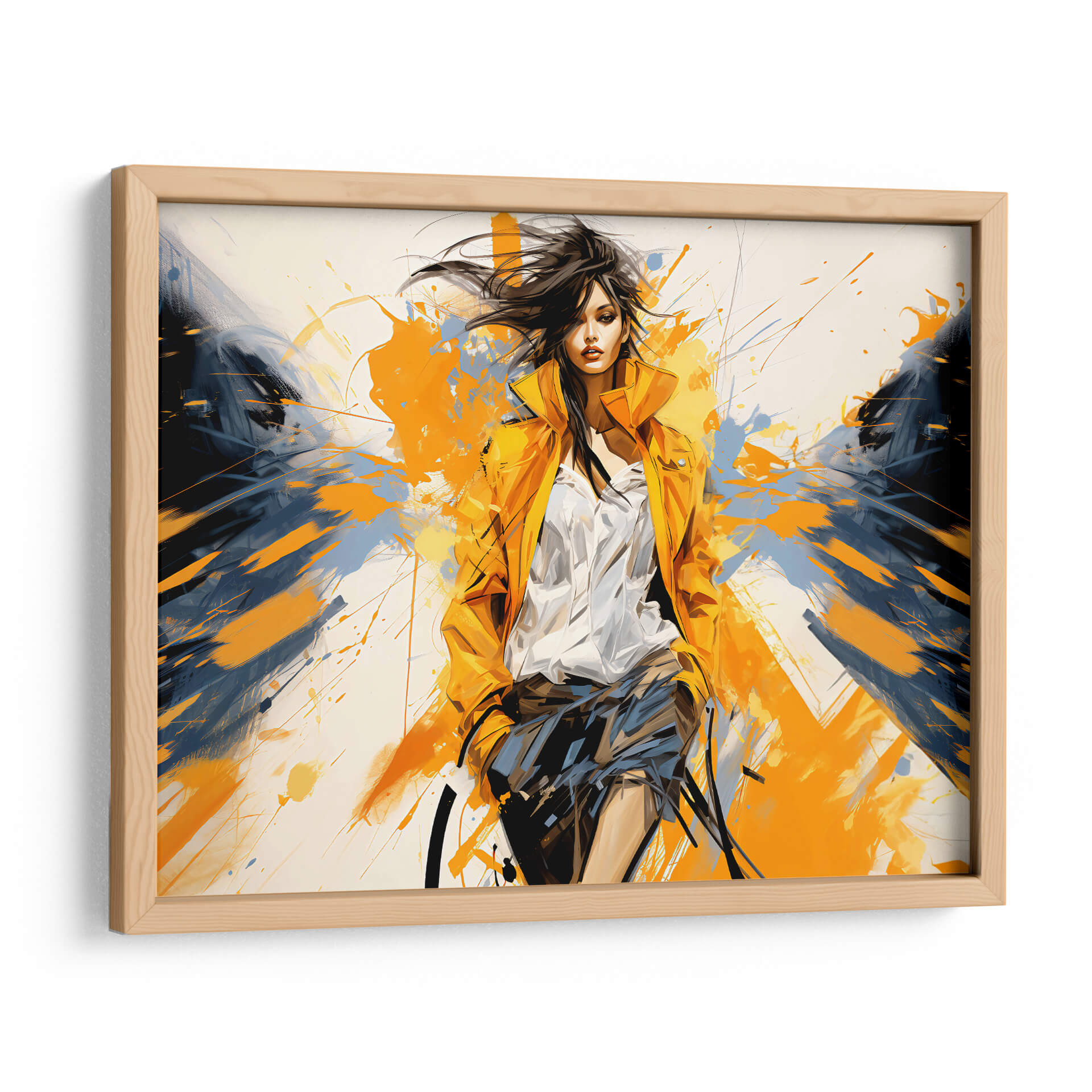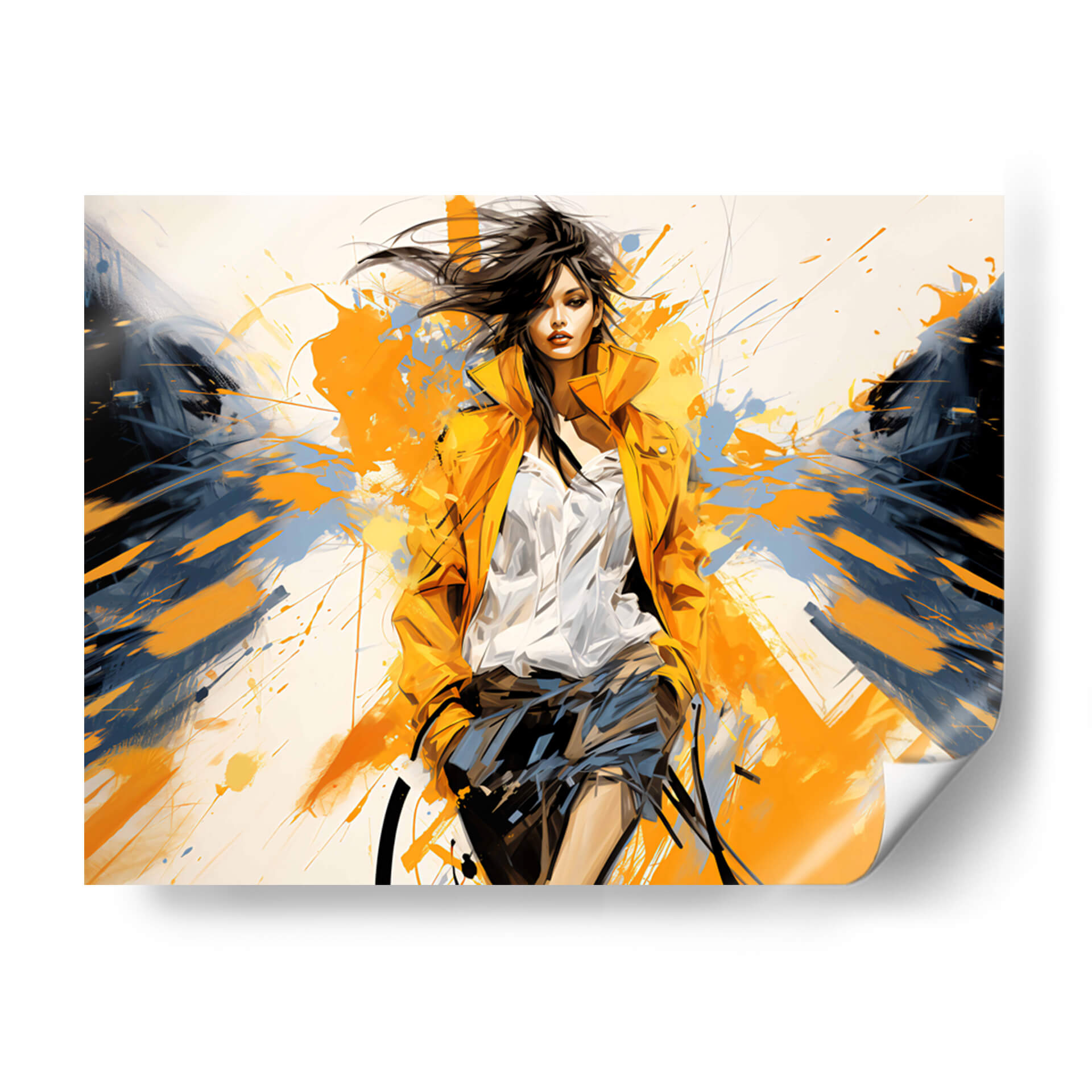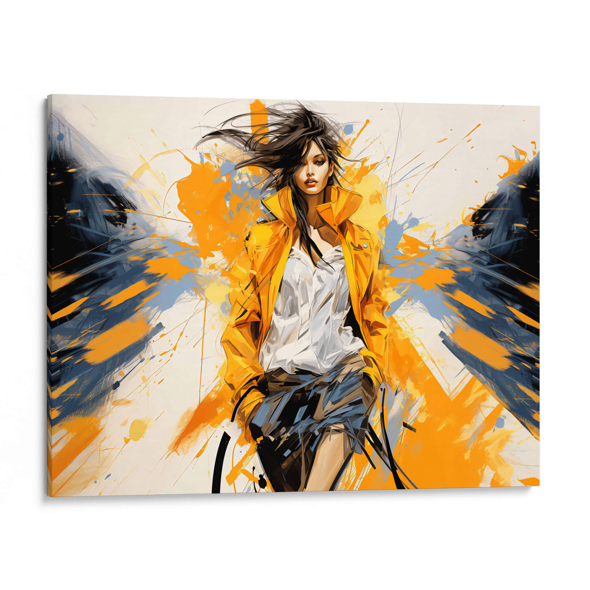 Sumérgete en la vibrante energía de "Lady Boss - Amarillo", una obra de arte contemporáneo que irradia confianza y estilo. Este cuadro decorativo presenta a una figura femenina enérgica, capturada en un instante dinámico. La paleta de colores, dominada por intensos tonos amarillos y contrastes audaces de azul marino y negro, crea una composición impactante y llena de vida. Las pinceladas expresivas y las salpicaduras de pintura añaden una textura visual fascinante, sugiriendo movimiento y espontaneidad. El estilo artístico, una mezcla cautivadora de realismo estilizado y abstracción gestual, dota a la pieza de una profundidad única. La mirada directa de la "Lady Boss" transmite determinación, haciendo de esta obra un poderoso punto focal. Es ideal para espacios que buscan una declaración de moda y empoderamiento, como una sala de estar moderna, una oficina ejecutiva o un vestidor. Este cuadro decorativo no es solo una pieza de arte, sino una fuente de inspiración diaria que transformará tu ambiente con su carácter audaz y su estética contemporánea. Añade un toque de personalidad y sofisticación a tu decoración con esta pieza que celebra la fuerza y el espíritu moderno.