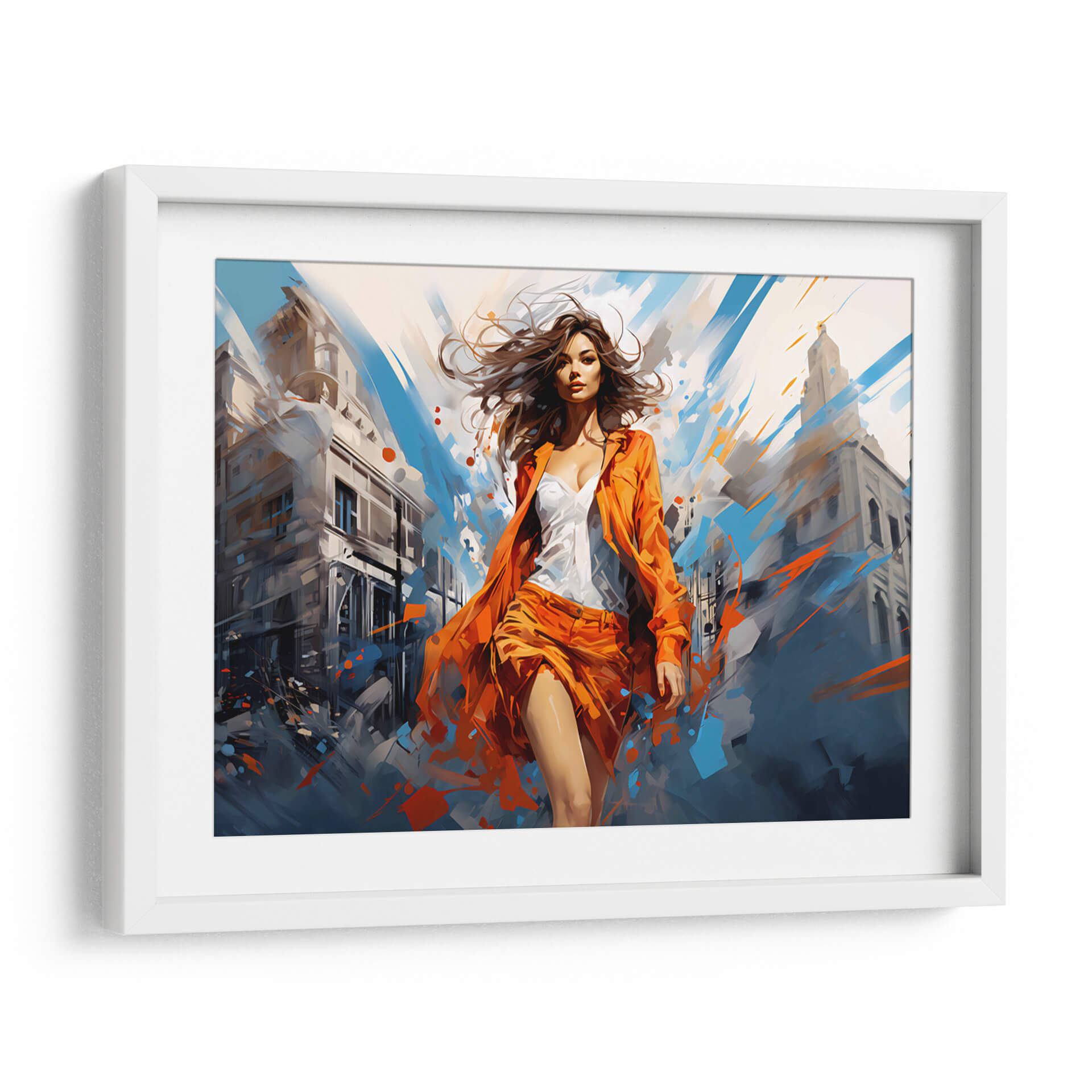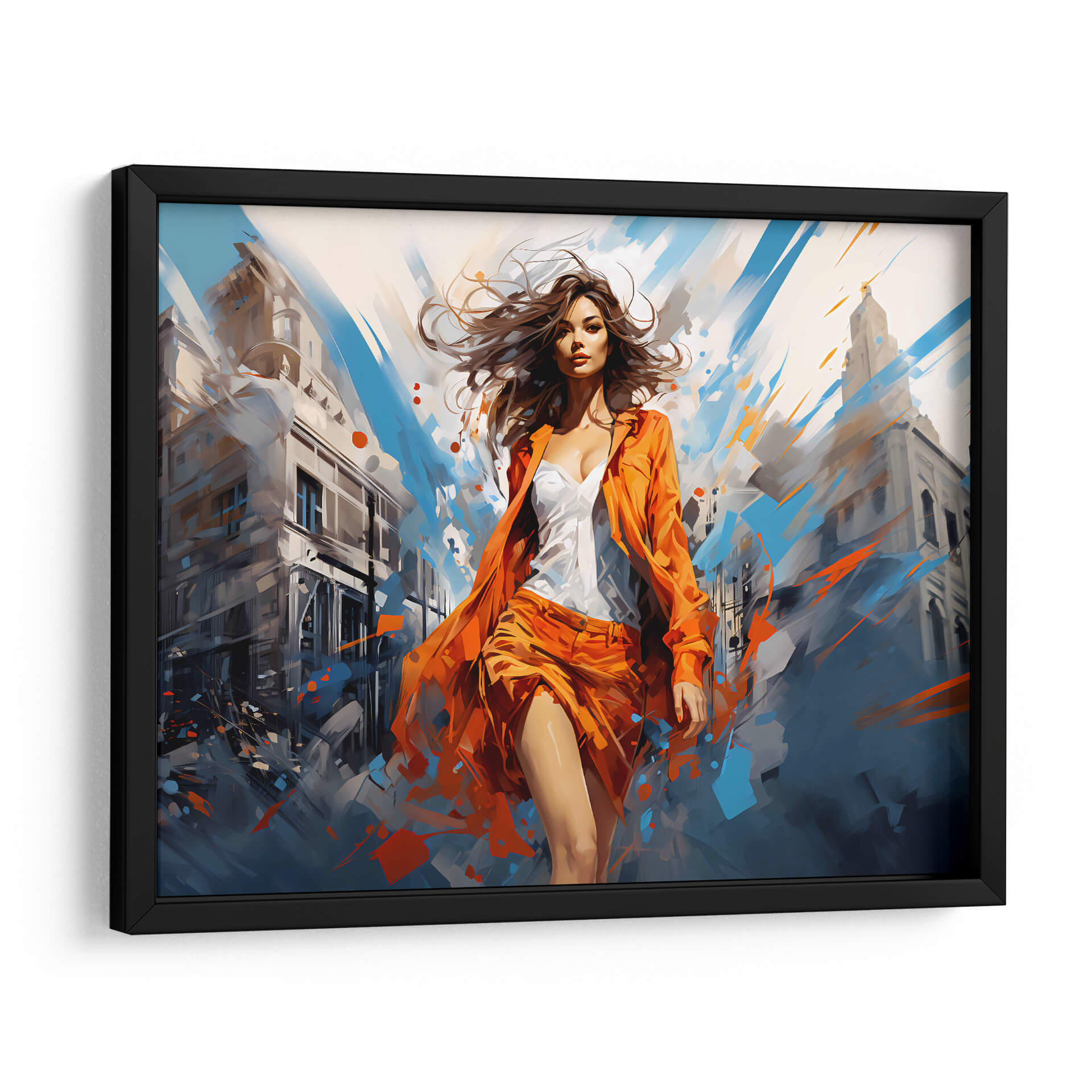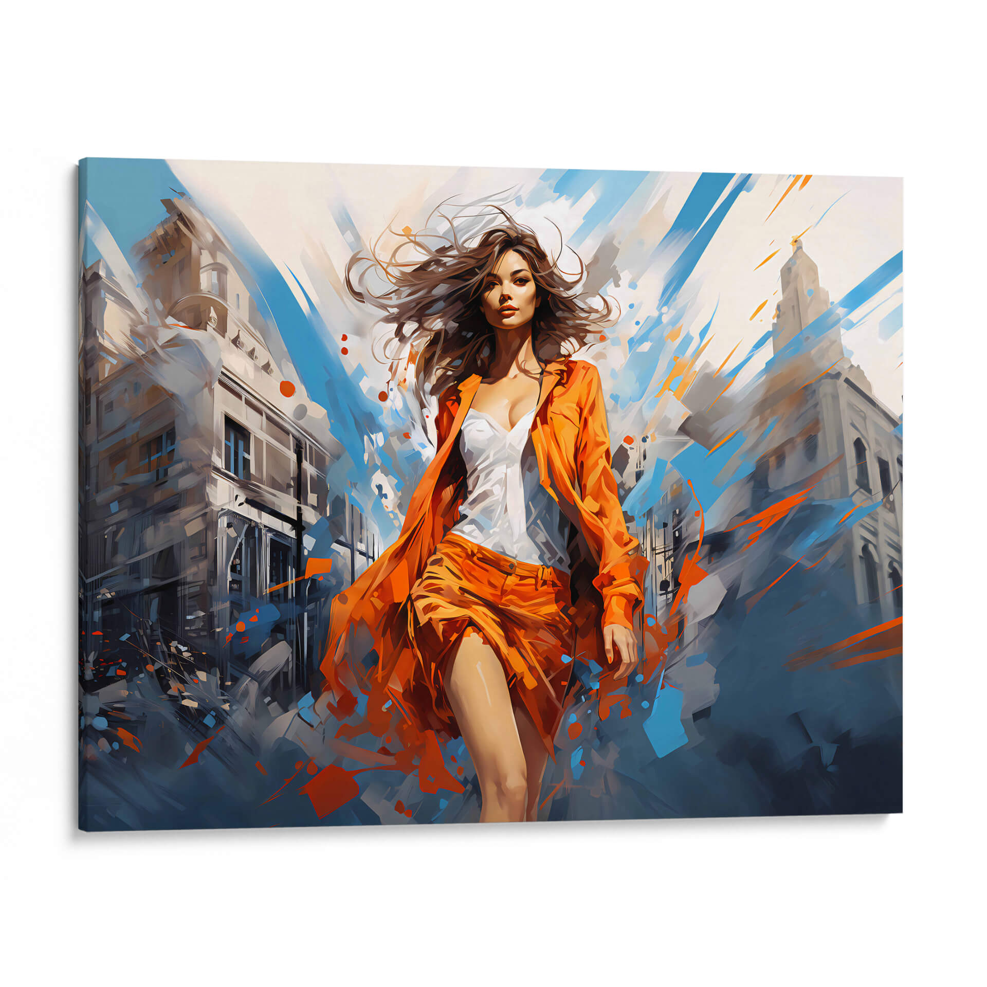 Sumérgete en la energía vibrante y la confianza inquebrantable de "Lady Boss - Anaranjado - 2", una obra de arte contemporáneo que captura la esencia de una mujer empoderada en medio de un paisaje urbano dinámico. El artista DeLaVegaGaming utiliza una paleta de colores audaz, dominada por naranjas intensos y azules eléctricos, que se fusionan con grises urbanos y toques de blanco puro, creando un contraste visual impactante. La composición dinámica, con pinceladas sueltas y expresivas, sugiere movimiento y una fuerza interior que irradia la figura central. La mujer, con su cabello ondeando al viento y una mirada penetrante, se erige como un símbolo de determinación y éxito. Este cuadro decorativo es perfecto para infundir vitalidad y carácter en cualquier espacio, desde una sala de estar moderna hasta una oficina ejecutiva o un vestidor. Es una pieza que inspira y motiva, ideal para quienes buscan rodearse de arte que refleje ambición y un estilo de vida audaz. Añade un toque de sofisticación y poder a tu decoración con esta pieza única.