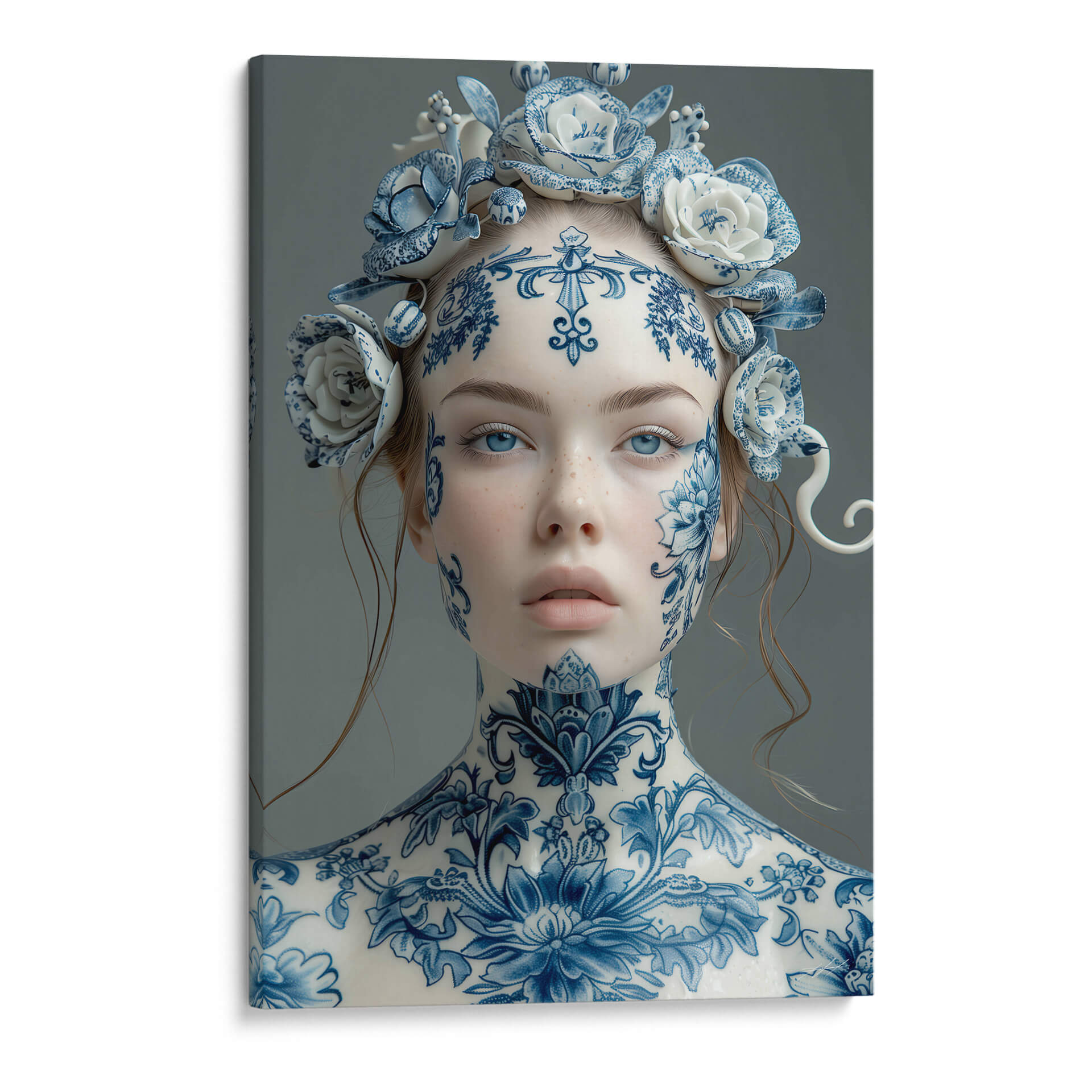 Sumérgete en la delicadeza y el encanto del cuadro decorativo "Sentimiento de Porcelana - 4" de DeLaVegaGaming. Esta obra maestra visual presenta un retrato etéreo adornado con intrincados patrones que evocan la belleza de la cerámica de porcelana tradicional. Los tonos azules y blancos predominantes crean una atmósfera de serenidad y sofisticación, mientras que los detalles florales y ornamentales añaden una capa de elegancia clásica. La composición, centrada en el rostro y el cuello de la figura, invita a la contemplación, permitiendo que los detalles del 'tatuaje' de porcelana se conviertan en el foco de atención. Ideal para espacios que buscan un toque de refinamiento atemporal, este cuadro decorativo es perfecto para salas de estar, dormitorios o estudios que deseen una pieza de conversación que combine arte contemporáneo con un guiño a la artesanía tradicional. Su estilo único y su ejecución impecable lo convierten en una adición valiosa a cualquier colección de arte de pared, aportando calma y un toque distintivo a tu decoración.