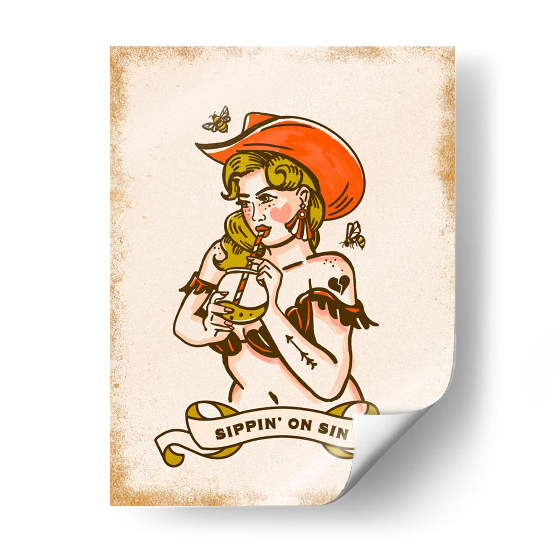 Sippin' On Sin - lindo arte de vaquera atrevida - The Whiskey Ginger