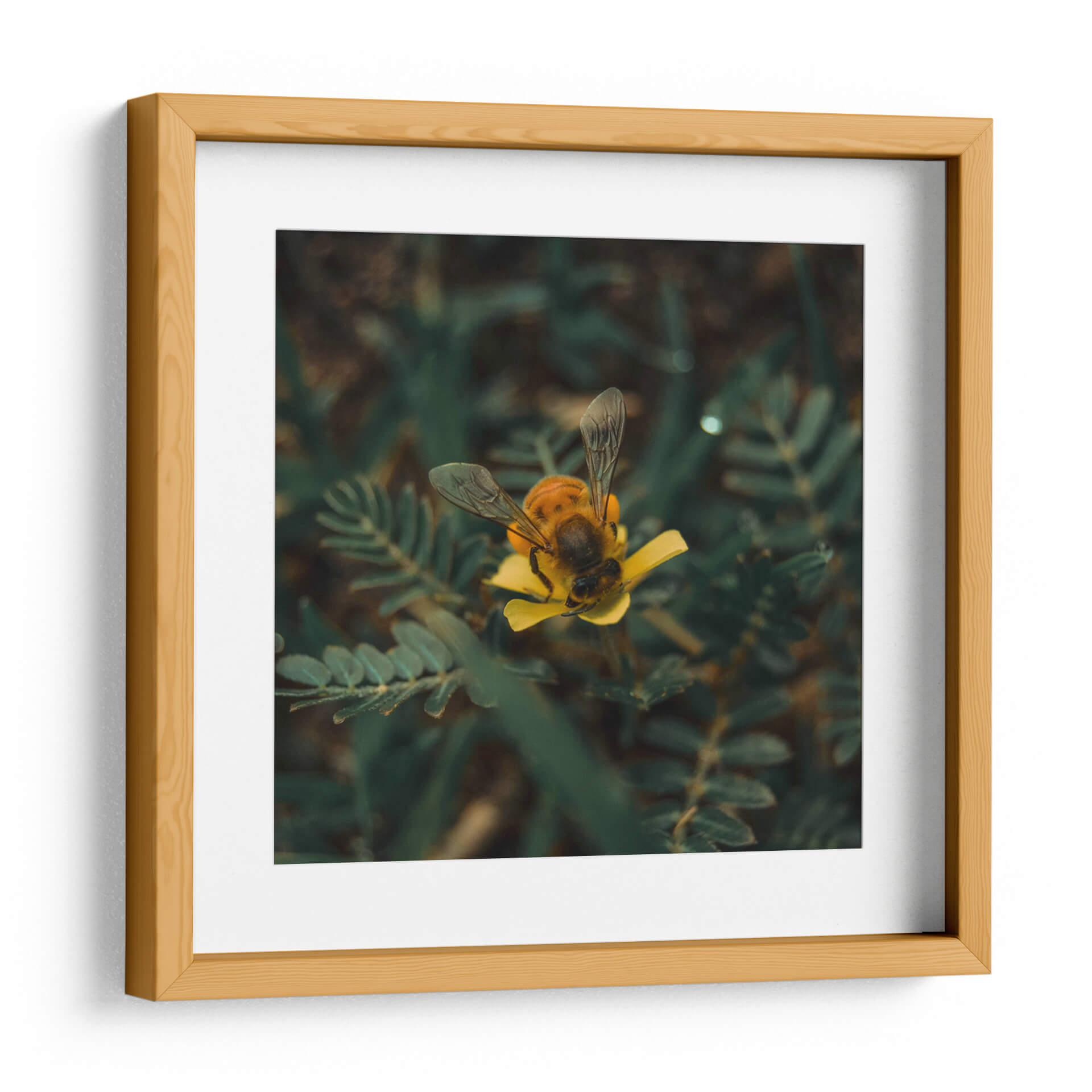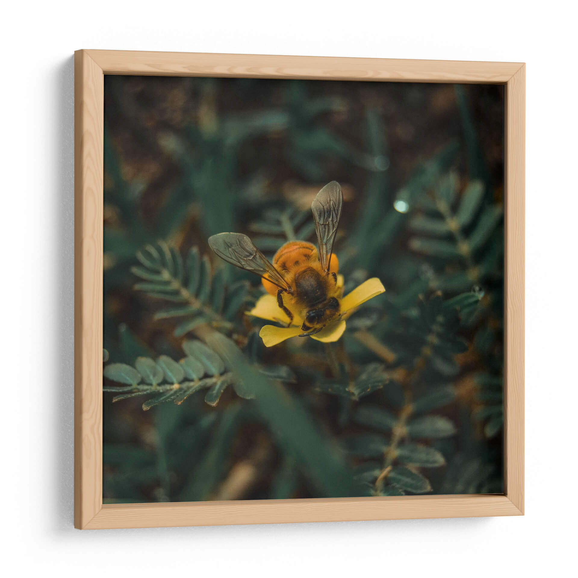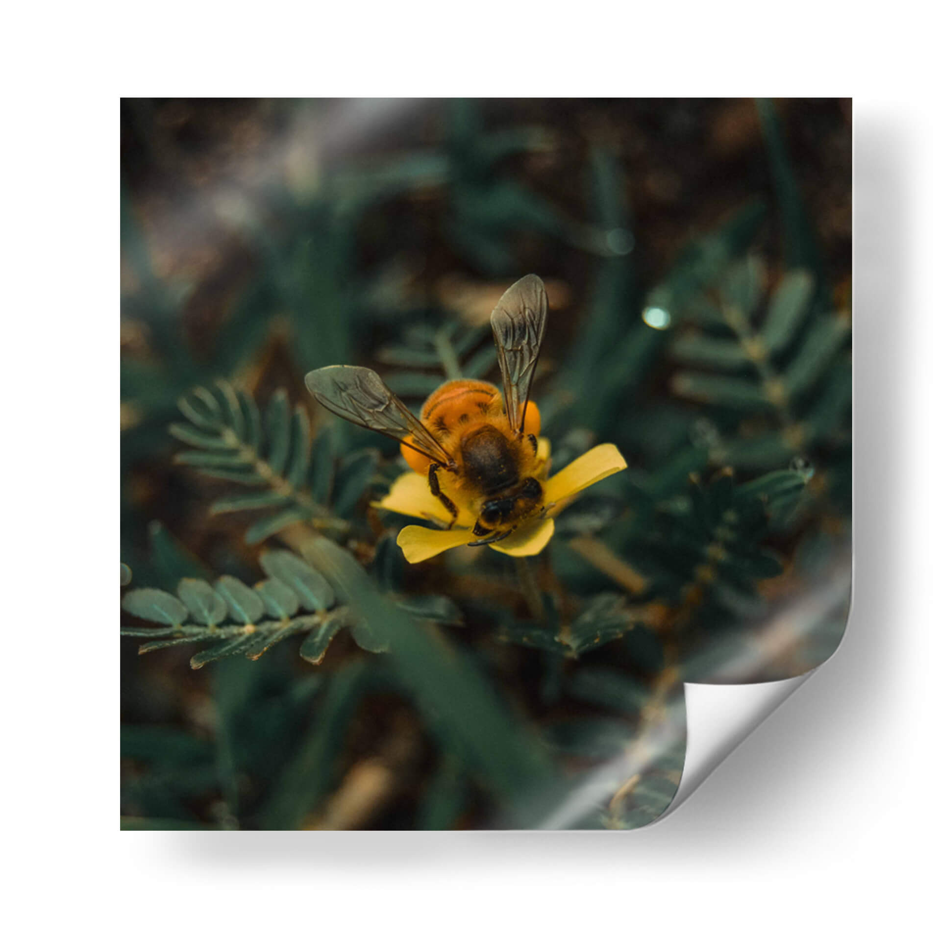 Sumérgete en la delicadeza de la naturaleza con este cautivador cuadro decorativo 'Abeja sobre flor v1'. La obra captura un momento íntimo y efímero donde una abeja, con sus alas translúcidas desplegadas, se posa con gracia sobre un vibrante pétalo amarillo. La fotografía macro resalta la textura detallada del insecto y la suavidad de la flor, creando una composición visualmente impactante. Los tonos profundos de verde del follaje circundante contrastan maravillosamente con el amarillo brillante de la flor y los matices dorados y oscuros del cuerpo de la abeja, aportando una sensación de vitalidad y realismo. Este cuadro es ideal para añadir un toque de vida y color a cualquier espacio, desde una sala de estar moderna hasta un rincón tranquilo en tu estudio u oficina. Su estilo fotográfico realista y la temática natural lo convierten en una pieza versátil que evoca calma, conexión con la naturaleza y la belleza de los pequeños detalles. Perfecto para amantes de la entomología, la botánica o simplemente para aquellos que aprecian la armonía cromática y la serenidad que transmite la vida silvestre en su máxima expresión. Un acierto seguro para infundir serenidad y un toque de color a tu decoración.