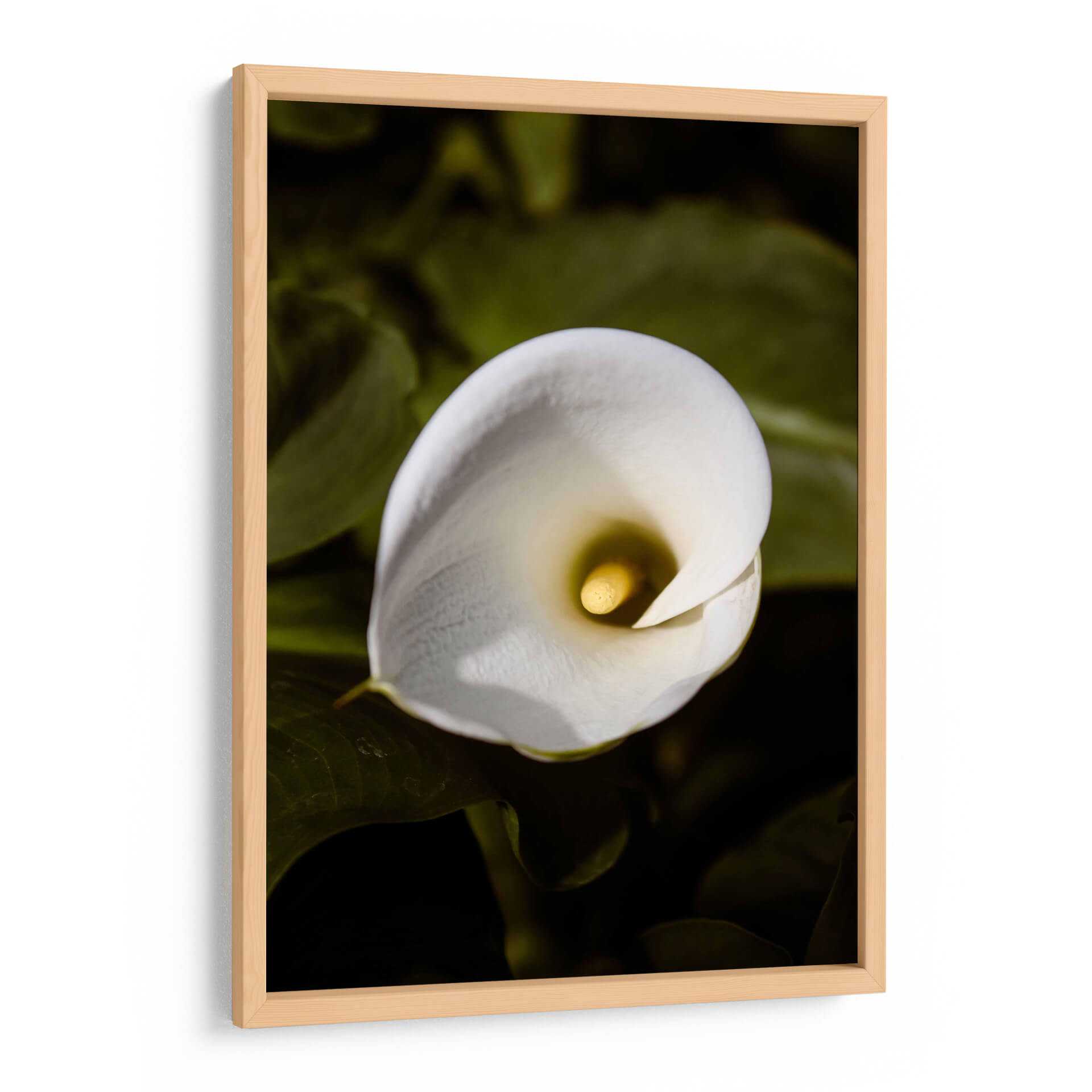 Sumérgete en la delicada belleza de "Elegant White Calla: Macro Perspectives", una obra de arte que captura la esencia de la flor de cala en un primer plano cautivador. Los sutiles matices blancos de los pétalos se despliegan con una elegancia etérea, enmarcada por un fondo oscuro y frondoso que resalta su pureza y forma escultural. La perspectiva macro revela la intrincada textura y las suaves curvas de la flor, invitando a una contemplación íntima de la naturaleza. El contraste entre la luminosidad del blanco y la profundidad de los verdes y negros crea una atmósfera de serenidad y sofisticación. Este cuadro decorativo es perfecto para añadir un toque de calma y refinamiento a tu hogar u oficina, ideal para espacios que buscan un acento de elegancia natural y minimalista. Su composición armoniosa y su paleta de colores suave lo convierten en una pieza versátil que complementa diversos estilos de decoración, desde el moderno hasta el contemporáneo. "Elegant White Calla" no es solo una imagen, sino una invitación a apreciar la belleza sutil y la perfección de las formas naturales, transformando cualquier pared en un lienzo de tranquilidad y estilo. Descubre cómo esta obra puede elevar tu espacio.