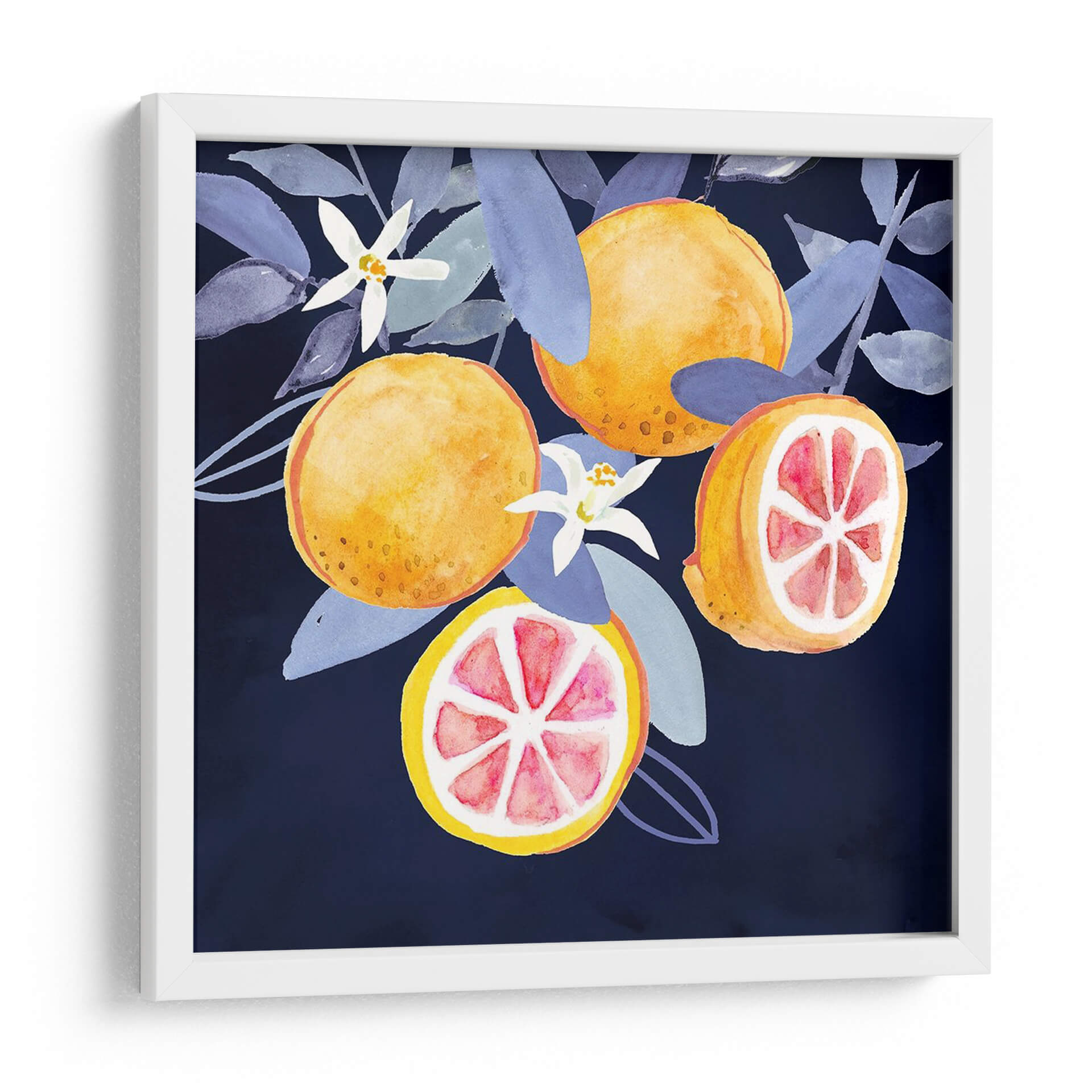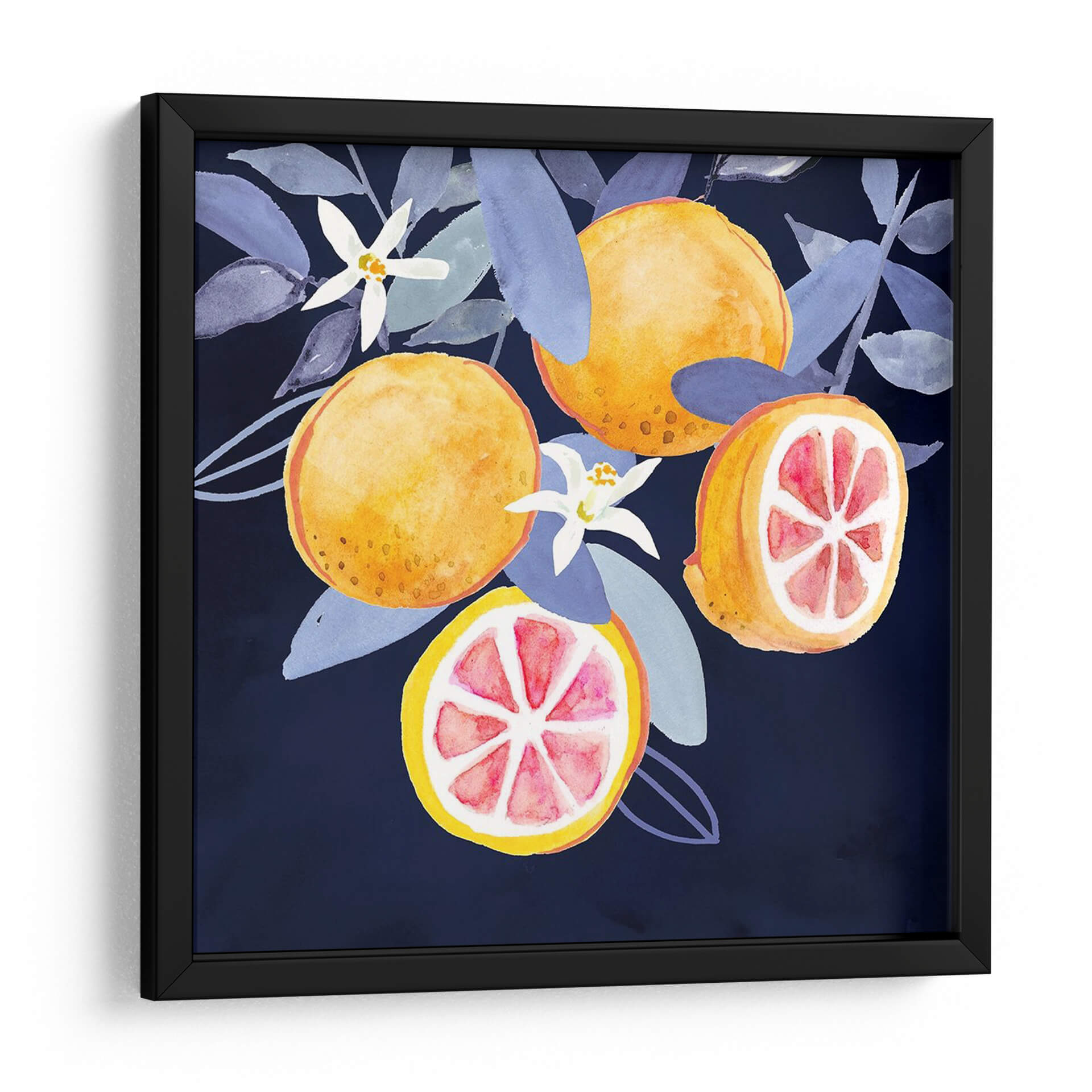 Aporta un toque de frescura y vitalidad a tu hogar con 'Fruta Fresca III', una obra de arte vibrante y cautivadora de Victoria Borges. Este cuadro decorativo captura la esencia de cítricos jugosos y flores delicadas sobre un fondo profundo y enigmático, creando un contraste visual que atrae todas las miradas. La técnica de acuarela de Borges se manifiesta en pinceladas fluidas y colores saturados, donde los naranjas intensos de las frutas se complementan a la perfección con los tonos fríos y lavanda de las hojas y las pequeñas flores blancas. Cada elemento está dispuesto con una delicadeza que evoca la naturaleza en su máxima expresión, invitando a la contemplación y al disfrute de la belleza efímera de la vida. Este cuadro es ideal para añadir un punto de interés visual a cocinas, comedores o cualquier espacio que busque un toque de color y optimismo. Su composición equilibrada y su temática universal lo convierten en una pieza versátil, capaz de integrarse en decoraciones modernas, rústicas o contemporáneas, infundiendo energía y frescura en el ambiente. Transforma tu pared en una ventana a un jardín exuberante y vibrante con esta pieza única.