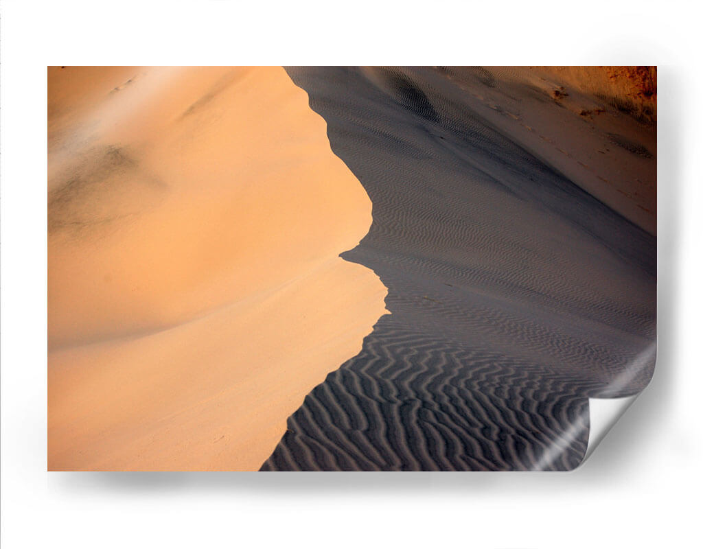 Sumérgete en la serena belleza del desierto con 'Luz y sombra en las dunas', una obra de arte que captura la majestuosidad del paisaje arenoso. Este cuadro decorativo presenta una transición dramática entre la cálida luz del sol que baña las crestas de las dunas y las profundas sombras que esculpen sus formas ondulantes. La paleta de colores, dominada por tonos ocres, dorados y grises profundos, crea una atmósfera de calma y misterio, invitando a la contemplación. La textura de la arena, detallada con finas líneas y rizos, añade una dimensión táctil a la pieza, evocando la inmensidad y la fuerza sutil de la naturaleza. Este paisaje desértico es ideal para añadir un toque de sofisticación y tranquilidad a tu hogar u oficina, funcionando como un punto focal evocador en salas de estar, dormitorios o estudios. Su estilo fotográfico y composición minimalista lo hacen perfecto para interiores modernos o contemporáneos que buscan una conexión con la naturaleza y la paz que emana de sus vastos horizontes. Transforma tu espacio en un santuario de serenidad con esta impresionante representación de la luz y la sombra en uno de los entornos más fascinantes de la Tierra, un verdadero cuadro decorativo que inspira paz y admiración.