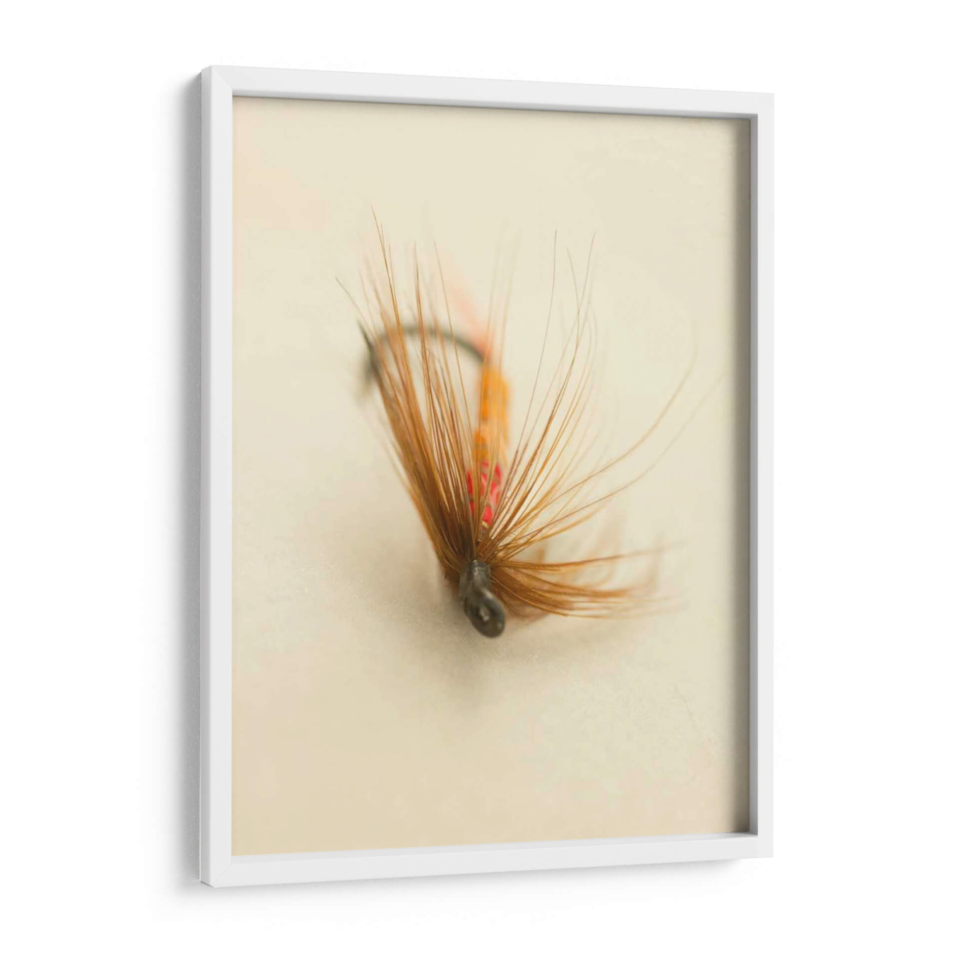 Descubre la sutil belleza de "Macro Señuelo V", una obra de arte contemporáneo de Judy Stalus que captura la esencia de la pesca con mosca en un detalle íntimo. Esta pieza se centra en un señuelo de pesca, con sus delicadas plumas en tonos marrones y anaranjados que se despliegan suavemente sobre un fondo neutro y difuminado. Los sutiles toques de rojo añaden un contraste vibrante que atrae la mirada, invitando a una contemplación profunda. La composición macro resalta la textura y la forma intrincada del señuelo, creando una sensación de intimidad y enfoque en los pequeños detalles que a menudo pasan desapercibidos. El estilo, con su enfoque en la macrofotografía y la estética minimalista, transmite una atmósfera de calma y concentración, perfecta para espacios que buscan evocar serenidad y aprecio por la naturaleza. Este cuadro decorativo es ideal para salones, estudios o incluso oficinas, añadiendo un toque de sofisticación natural y un punto de interés visual que inspira tranquilidad y reflexión. La paleta de colores terrosos y cálidos lo hace versátil, complementando una amplia gama de estilos de decoración, desde lo rústico hasta lo moderno minimalista. "Macro Señuelo V" es más que una simple imagen; es una invitación a apreciar la belleza en lo pequeño y la conexión con el arte de la pesca y la naturaleza.