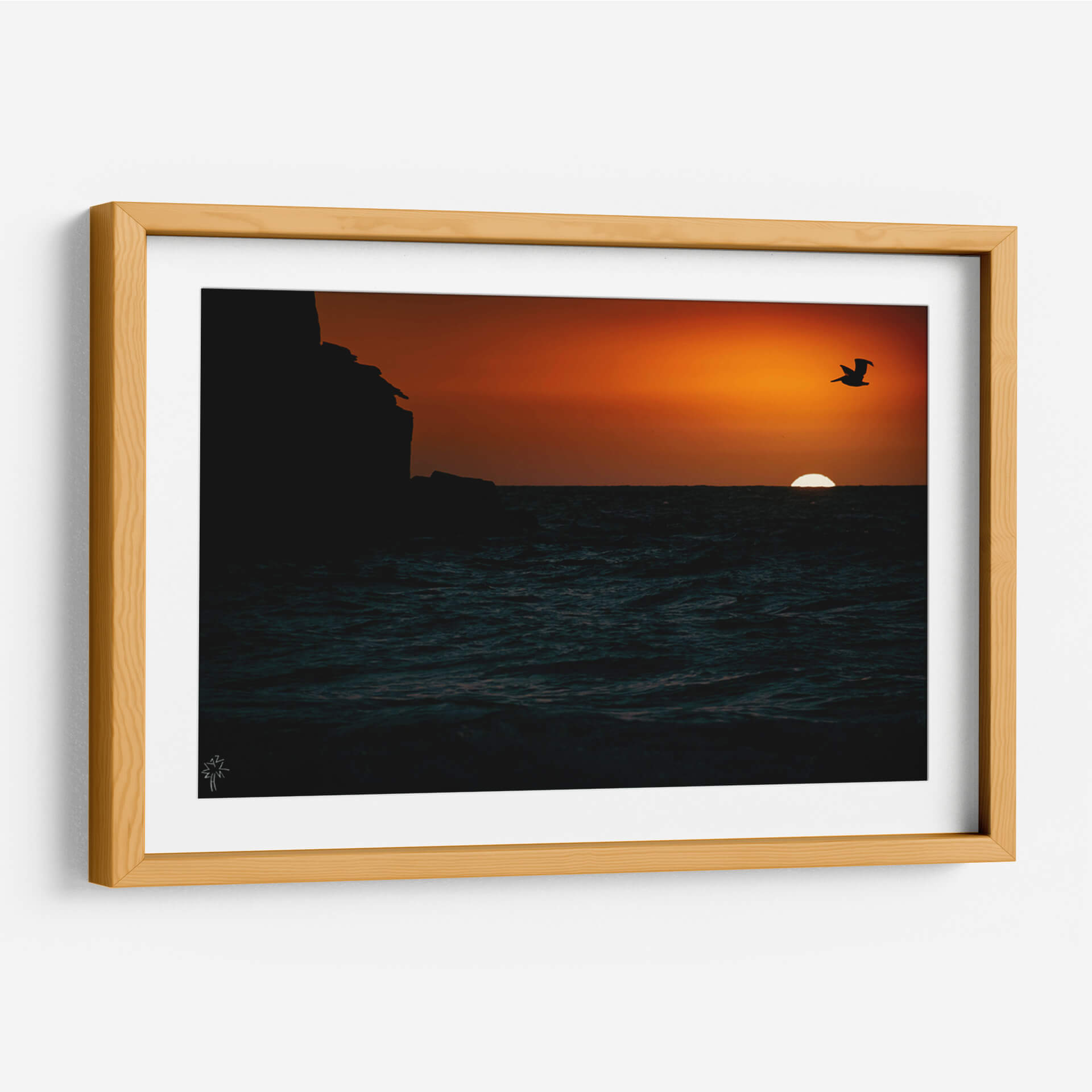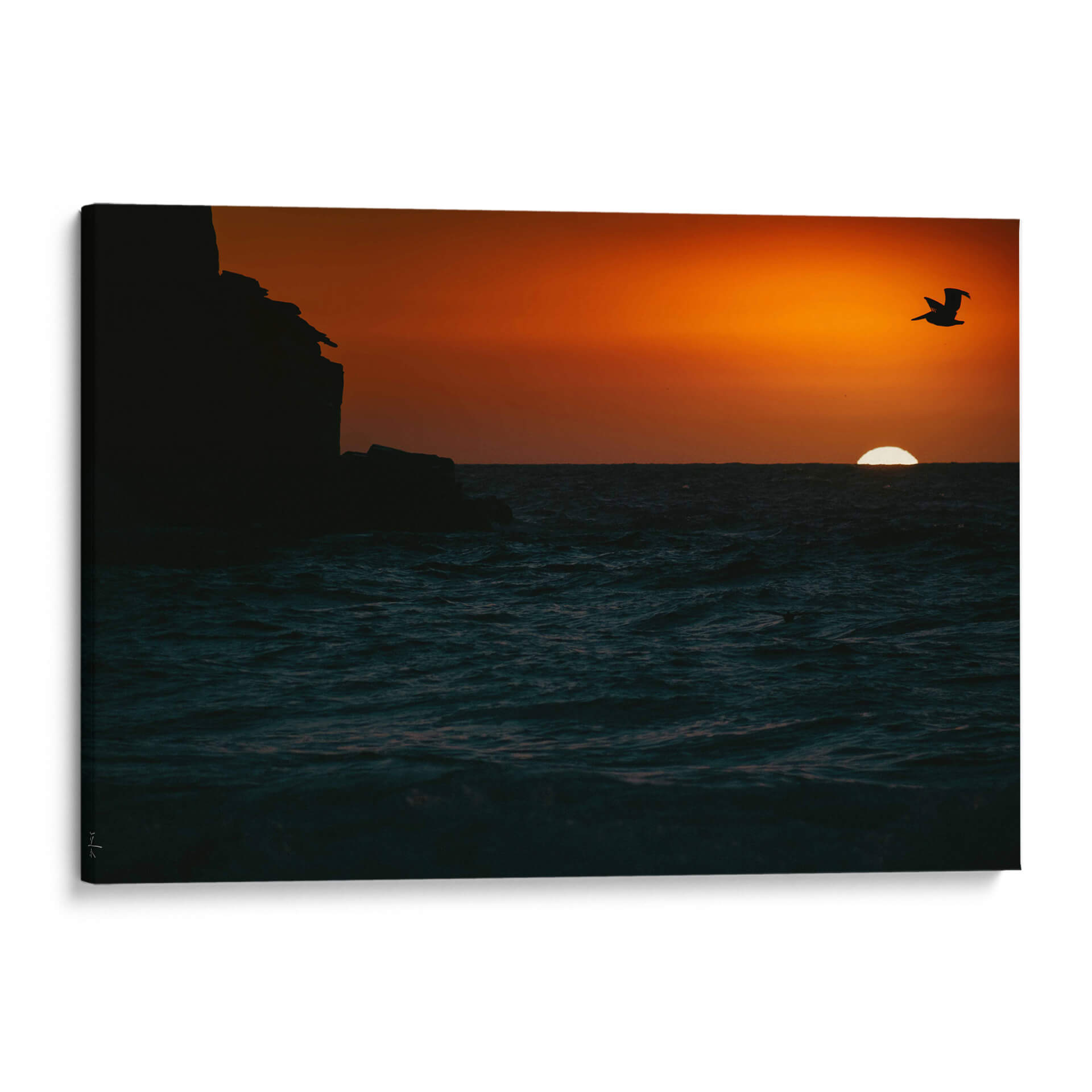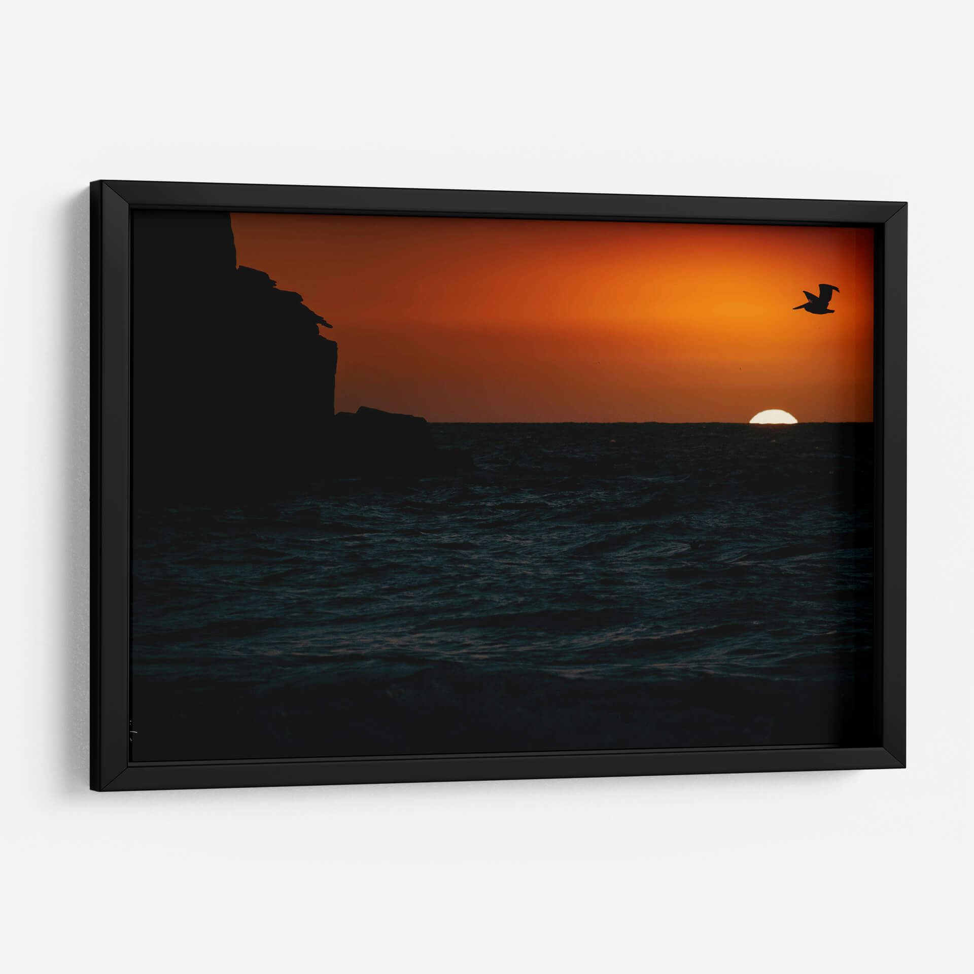 Sumérgete en la majestuosidad del océano al amanecer con "Más Allá del Atardecer: El Inicio", una obra cautivadora del artista Zuriel Halal. Este cuadro decorativo captura el momento fugaz en que la noche cede paso a un nuevo día, con un sol naciente asomando tímidamente en el horizonte, tiñendo el cielo de intensos tonos anaranjados y dorados. Las aguas oscuras y ondulantes del mar, representadas con una textura profunda, contrastan dramáticamente con la luz cálida del amanecer, creando una atmósfera de serena anticipación y la promesa de un nuevo comienzo. Una silueta de ave en pleno vuelo añade un toque de libertad y movimiento a la escena, invitando a la reflexión sobre el viaje y la trascendencia. La imponente silueta de un acantilado en la izquierda de la composición añade un elemento de misterio y solidez, anclando la escena y realzando la inmensidad del océano. Ideal para espacios que buscan evocar calma, inspiración y una conexión con la naturaleza, este arte de pared transformará tu hogar u oficina en un santuario de paz y belleza. Su estilo fotográfico y su paleta de colores vibrantes pero equilibrados la convierten en una pieza versátil para cualquier decoración moderna o contemporánea.