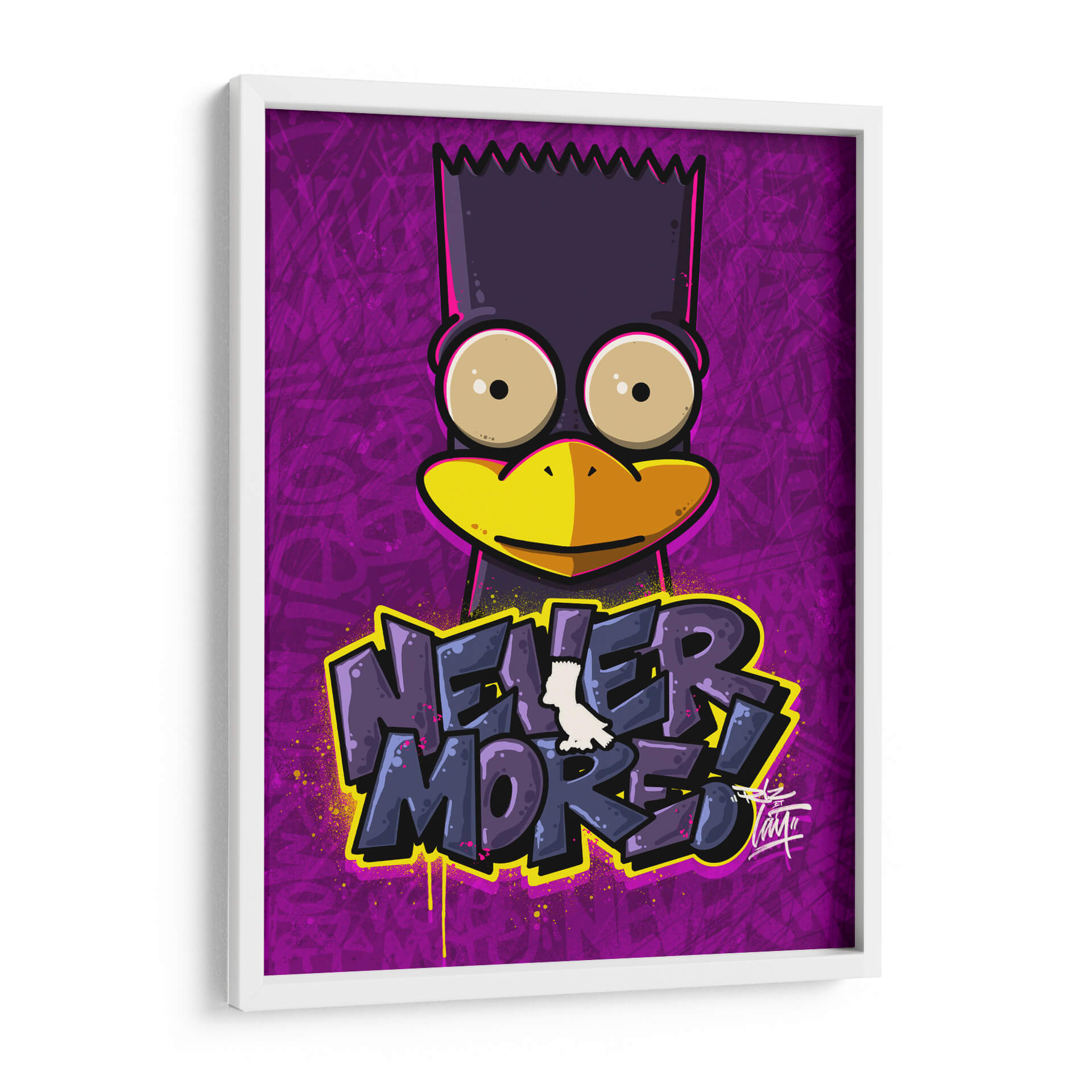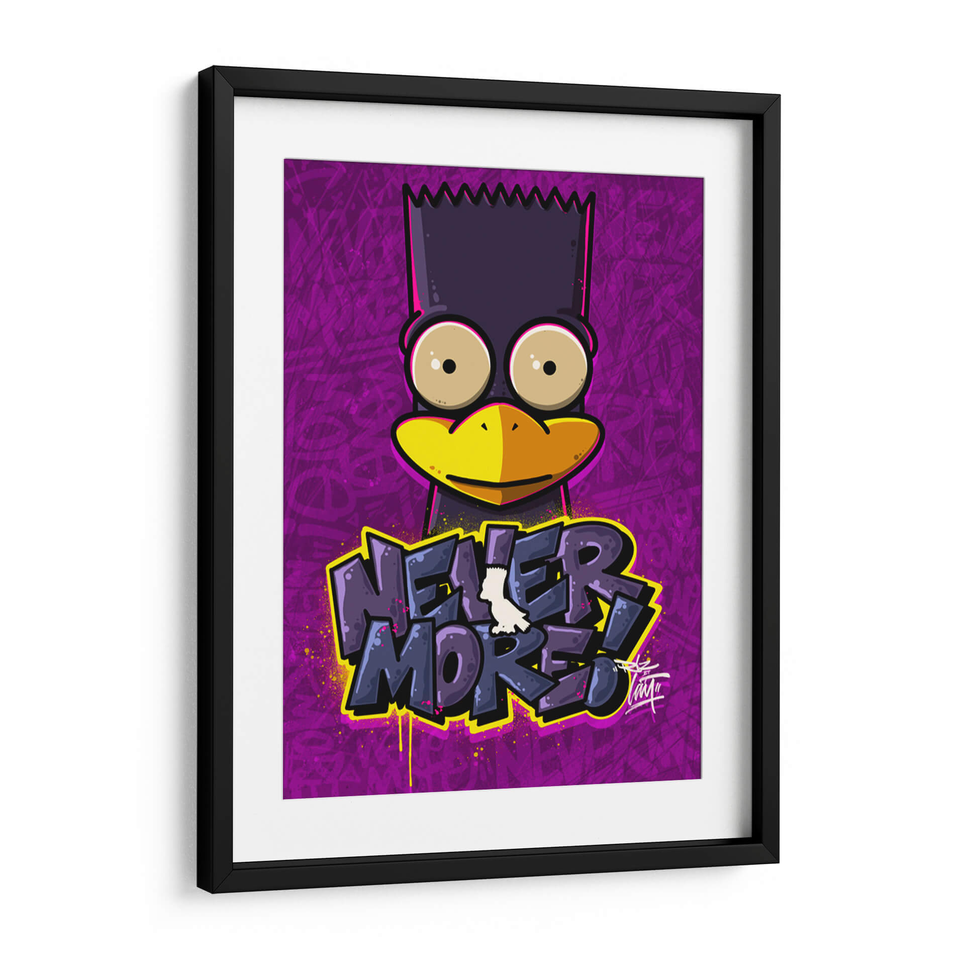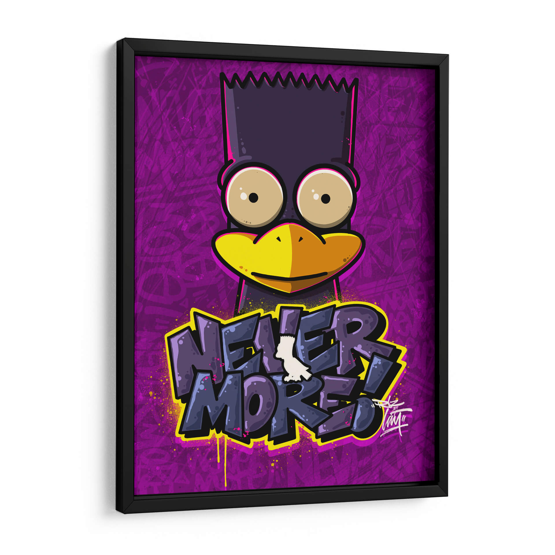 Sumérgete en la audacia y el estilo urbano con "Never More!", una obra de arte digital del artista Riz et Lait. Este cuadro decorativo presenta un personaje carismático con grandes ojos expresivos y un pico amarillo vibrante, enmarcado por un fondo morado intenso con textura de grafiti. La tipografía audaz del título, "Never More!", se integra de manera prominente, añadiendo un toque de rebeldía y modernidad. Los colores predominantes, como el morado eléctrico, el amarillo brillante y los toques de gris y blanco, crean una composición visualmente impactante que irradia energía y carácter. Este cuadro es ideal para espacios que buscan un toque de personalidad y un aire contemporáneo, como salas de estar juveniles, estudios de diseño o incluso una oficina moderna que aspire a romper con lo convencional. La obra transmite una sensación de desafío y actitud, perfecta para quienes aprecian el arte callejero y las expresiones artísticas con un mensaje subyacente. Añade un acento de color y una dosis de originalidad a tu decoración con esta pieza única.