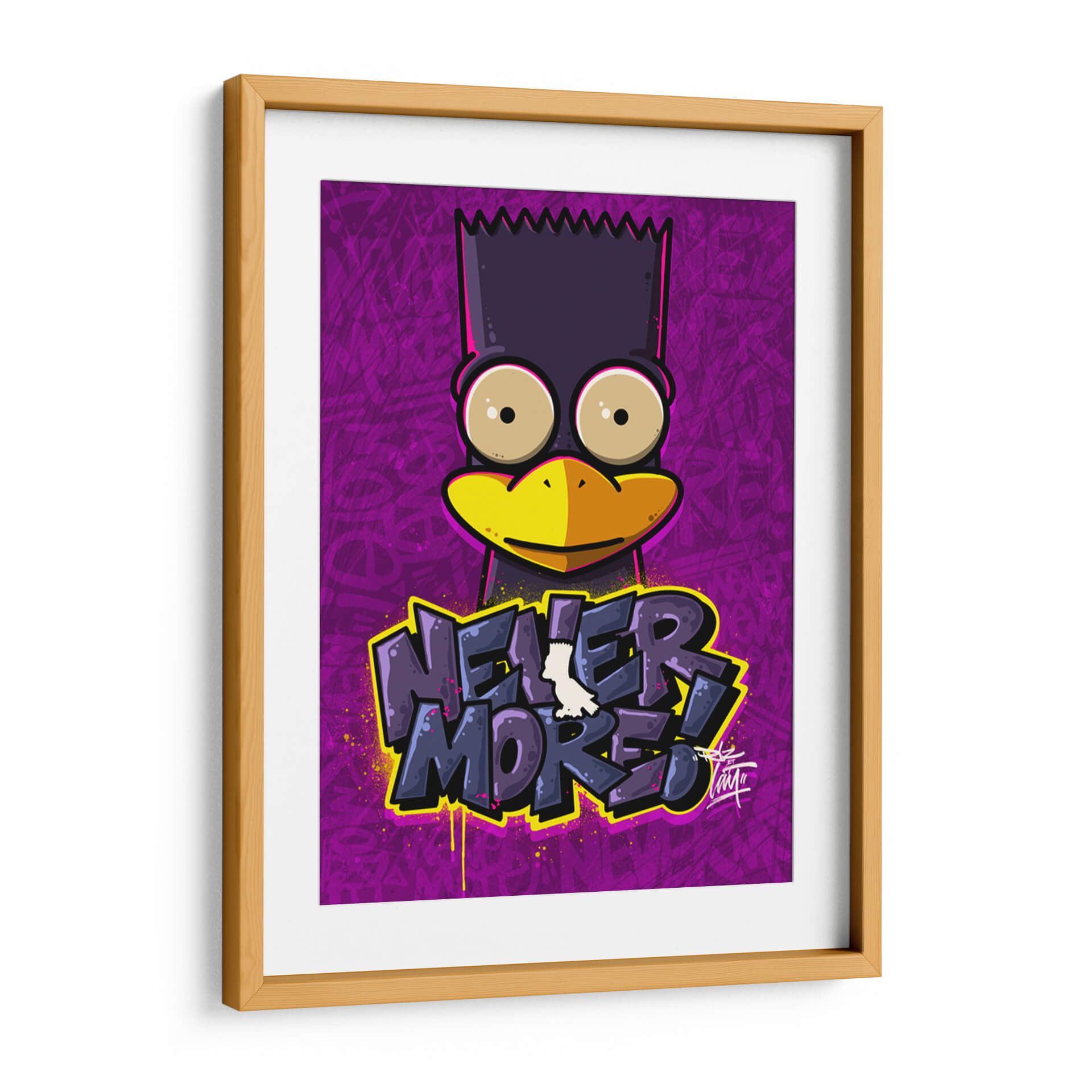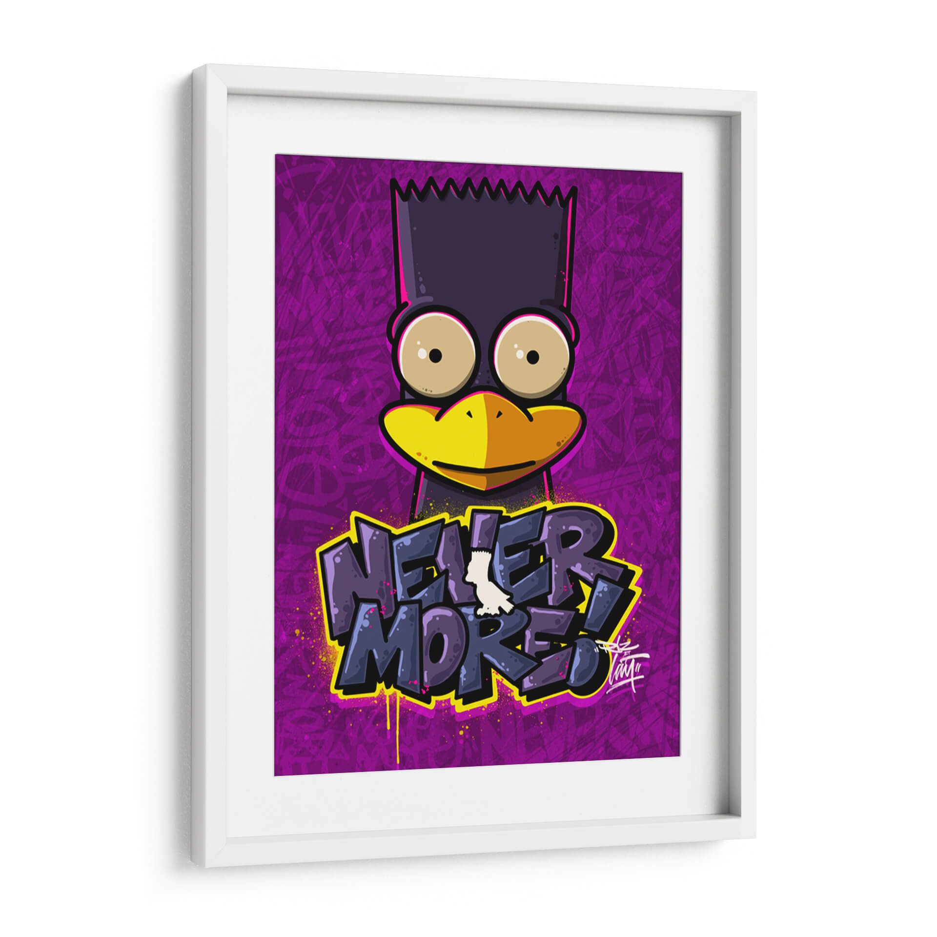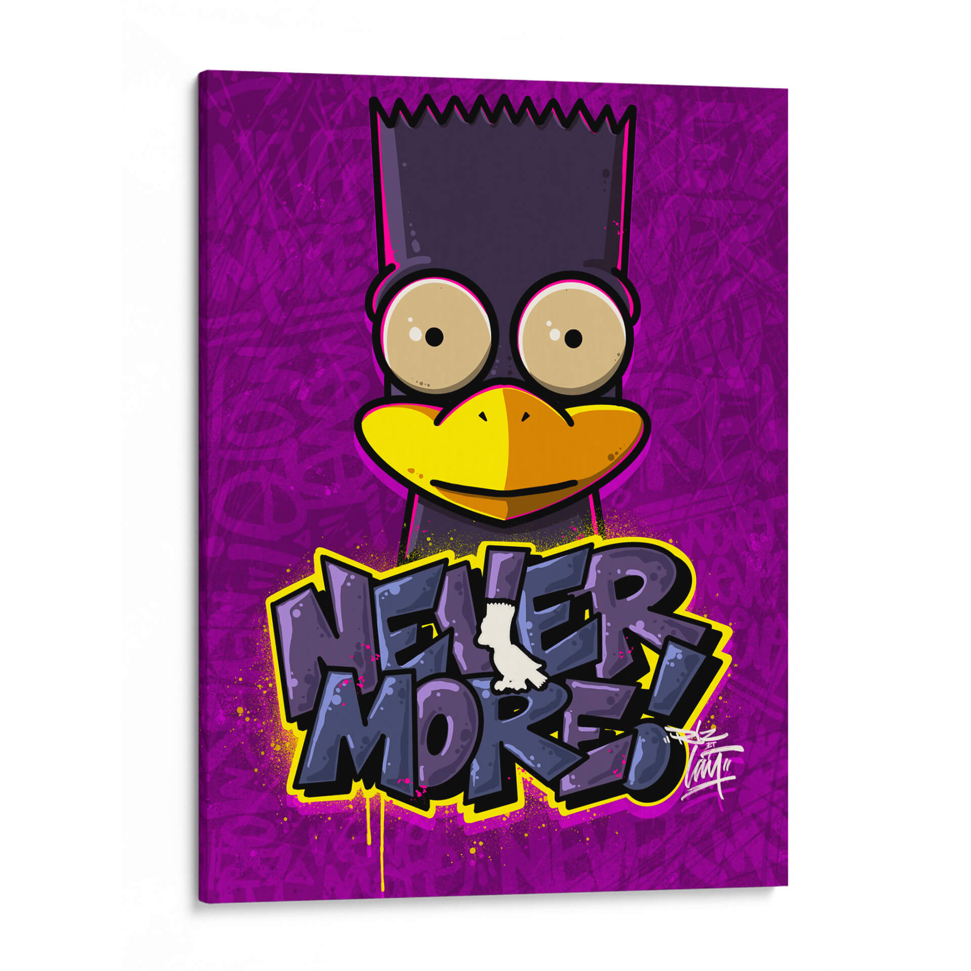 Sumérgete en la audacia y el estilo urbano con "Never More!", una obra de arte digital del artista Riz et Lait. Este cuadro decorativo presenta un personaje carismático con grandes ojos expresivos y un pico amarillo vibrante, enmarcado por un fondo morado intenso con textura de grafiti. La tipografía audaz del título, "Never More!", se integra de manera prominente, añadiendo un toque de rebeldía y modernidad. Los colores predominantes, como el morado eléctrico, el amarillo brillante y los toques de gris y blanco, crean una composición visualmente impactante que irradia energía y carácter. Este cuadro es ideal para espacios que buscan un toque de personalidad y un aire contemporáneo, como salas de estar juveniles, estudios de diseño o incluso una oficina moderna que aspire a romper con lo convencional. La obra transmite una sensación de desafío y actitud, perfecta para quienes aprecian el arte callejero y las expresiones artísticas con un mensaje subyacente. Añade un acento de color y una dosis de originalidad a tu decoración con esta pieza única.