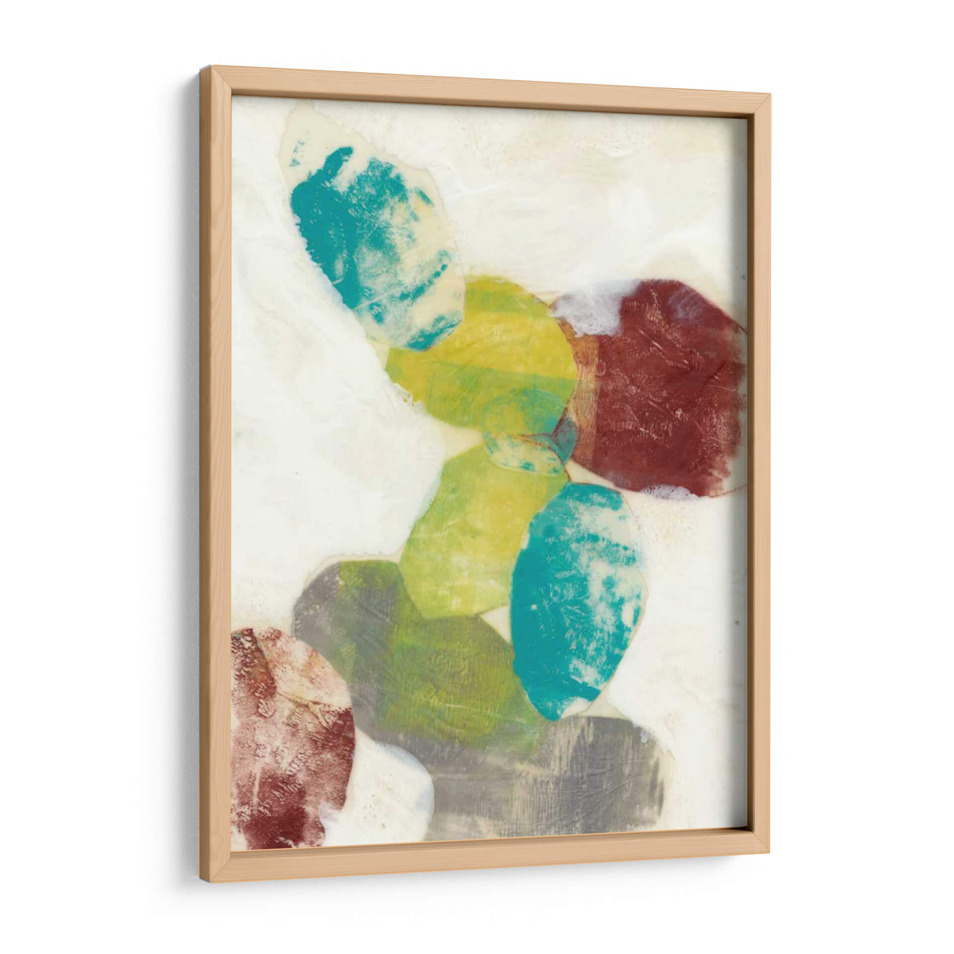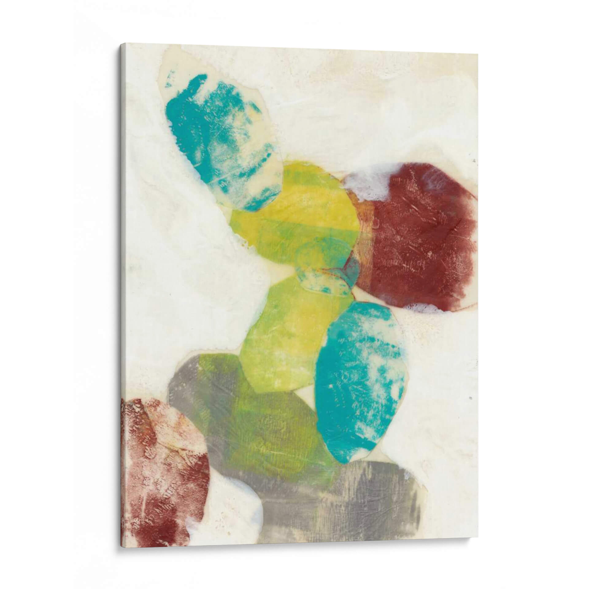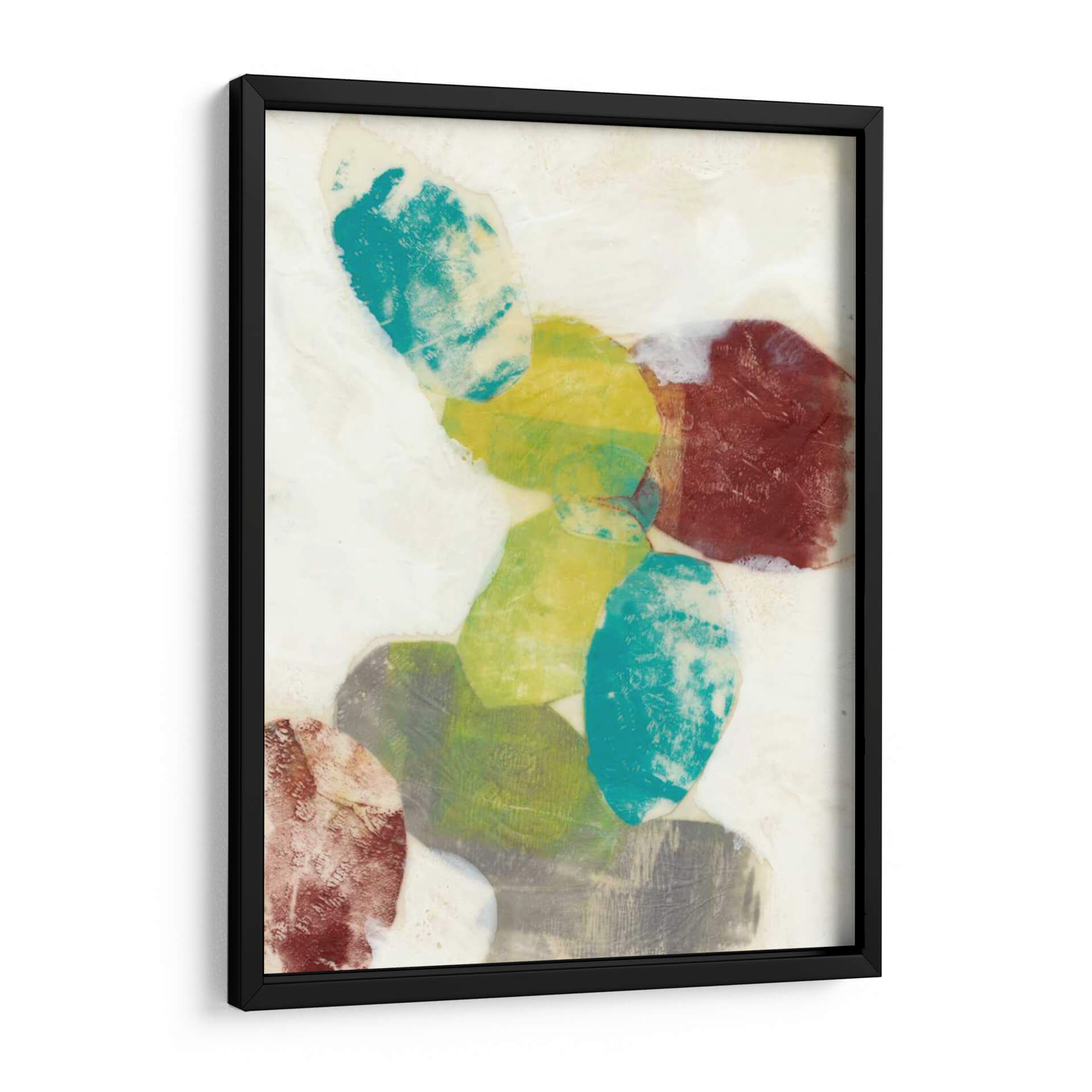Sumérgete en la serenidad y el dinamismo de "Orbes Etéreos I", una obra de arte contemporáneo de Jennifer Goldberger que captura la imaginación con su abstracción cautivadora. Este cuadro decorativo presenta una composición audaz de formas orgánicas superpuestas, evocando la sensación de esferas celestiales o guijarros pulidos por el tiempo. La paleta de colores, que oscila entre vibrantes tonos turquesa, amarillos cálidos, verdes terrosos y profundos rojos terracota, crea un contraste fascinante sobre un fondo de suaves matices neutros y texturas que sugieren profundidad y movimiento. Cada forma parece flotar y dialogar con las demás, invitando a la contemplación y aportando una sensación de equilibrio dinámico al espacio que decora. Ideal para quienes buscan infundir a su hogar u oficina una dosis de arte moderno y sofisticado, este cuadro abstracto es perfecto para crear un punto focal en una sala de estar, aportar calma a un dormitorio o inspirar creatividad en un despacho. Su estilo único y la riqueza de sus detalles lo convierten en una pieza versátil que complementa una amplia gama de decoraciones interiores, desde las más minimalistas hasta las más eclécticas, añadiendo un toque de elegancia y personalidad.