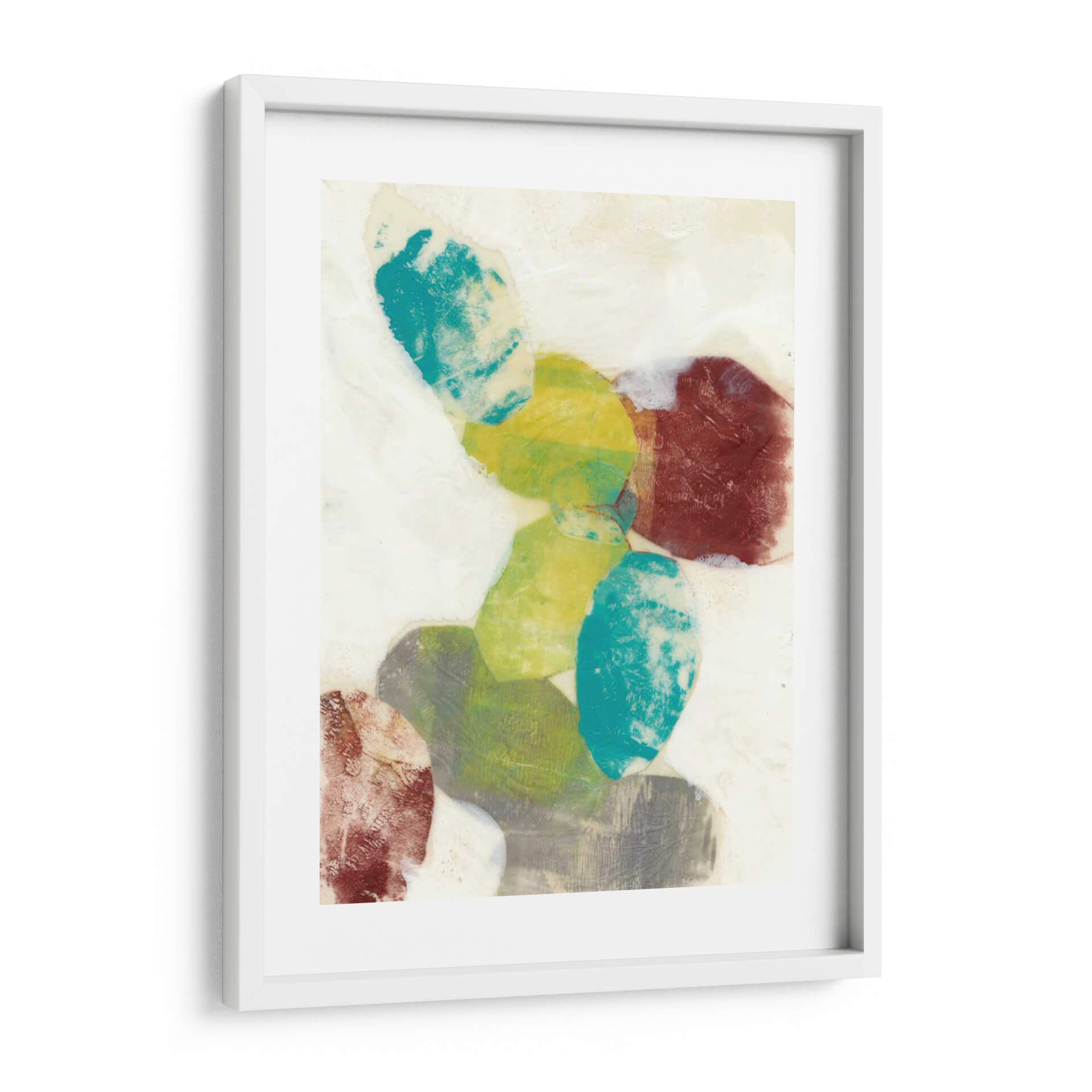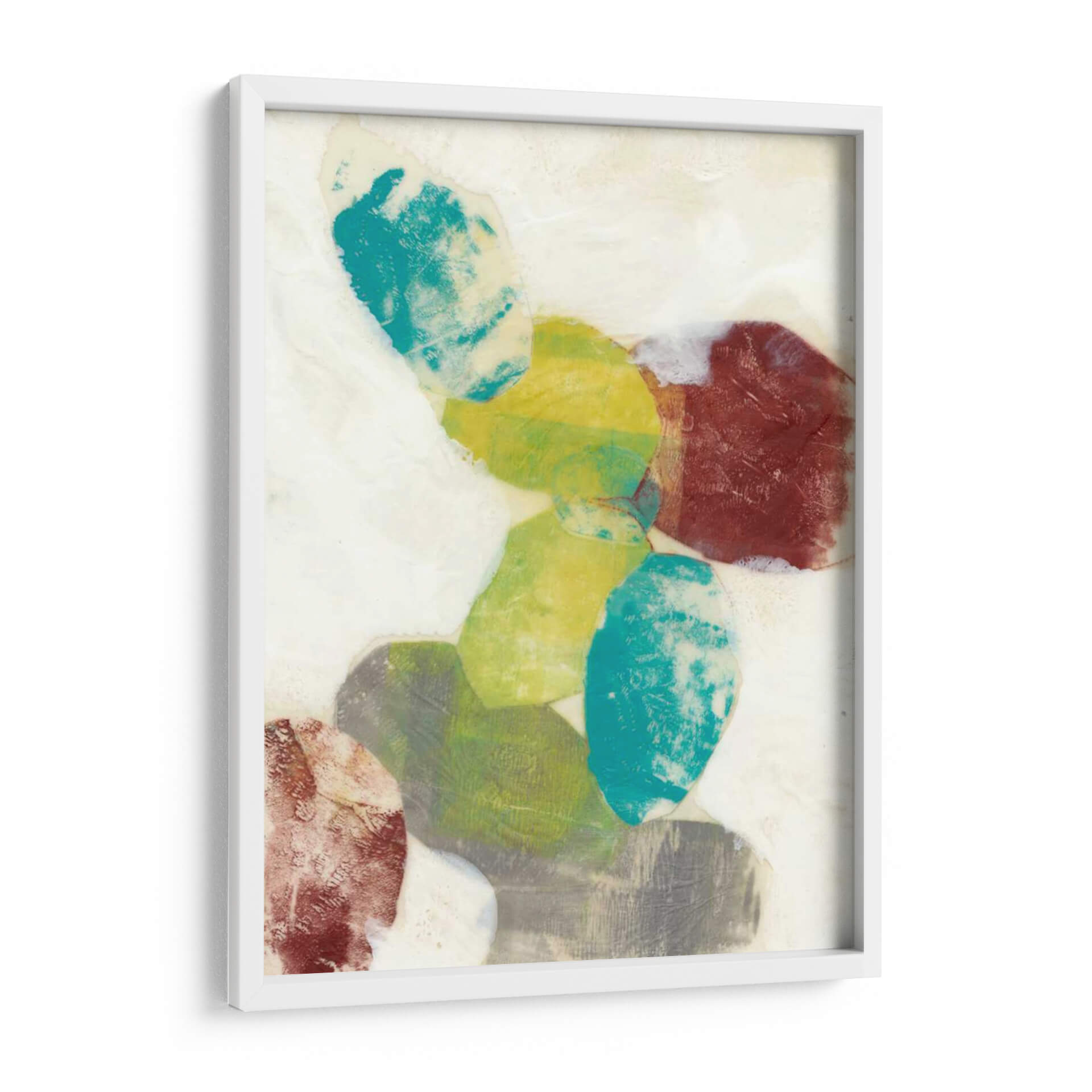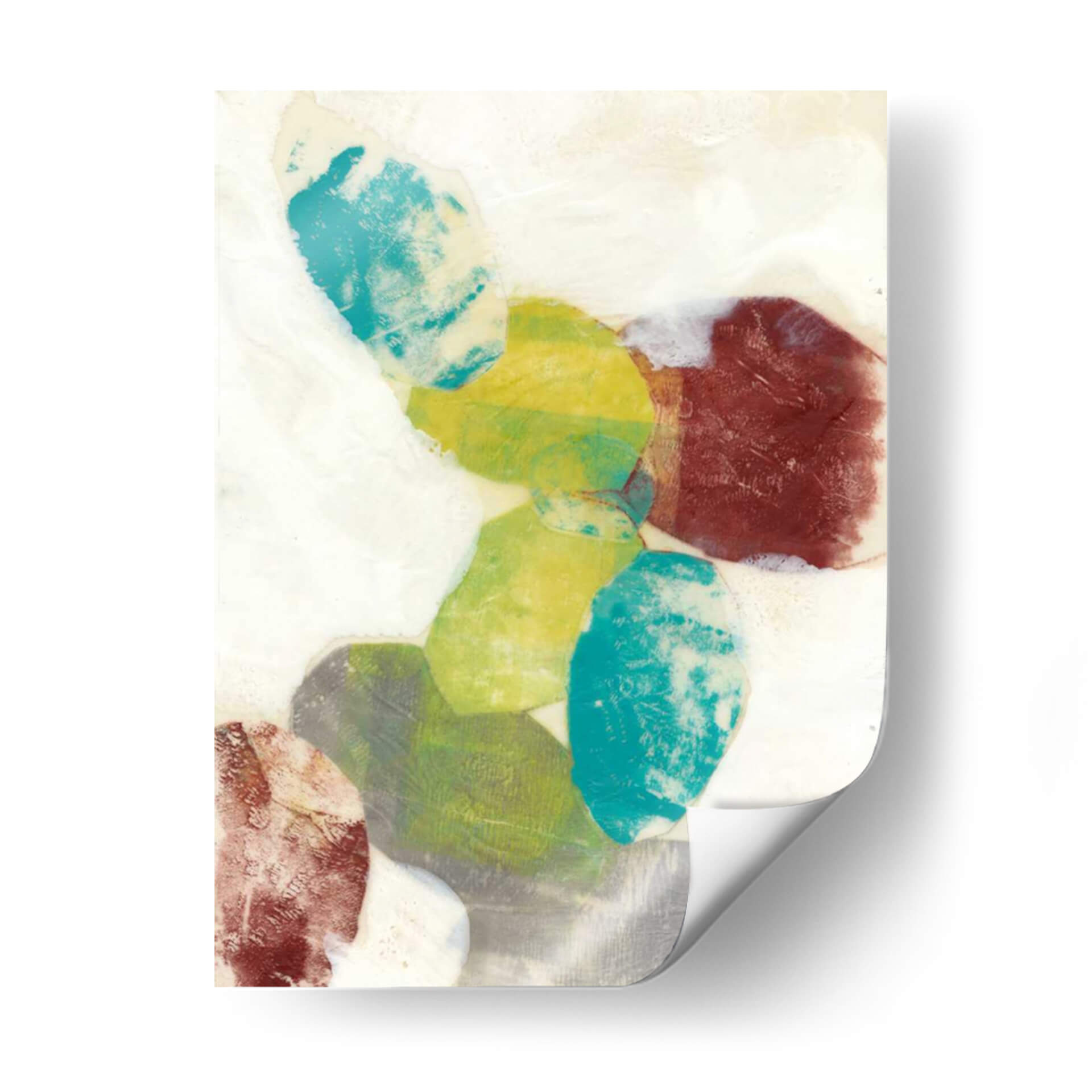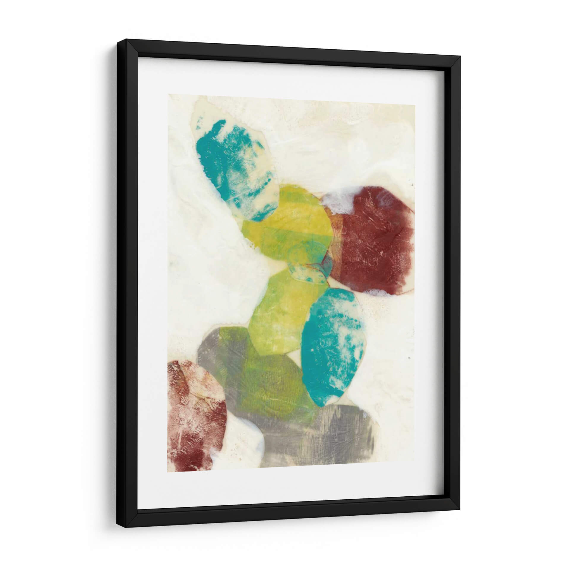 Sumérgete en la serenidad y el dinamismo de "Orbes Etéreos I", una obra de arte contemporáneo de Jennifer Goldberger que captura la imaginación con su abstracción cautivadora. Este cuadro decorativo presenta una composición audaz de formas orgánicas superpuestas, evocando la sensación de esferas celestiales o guijarros pulidos por el tiempo. La paleta de colores, que oscila entre vibrantes tonos turquesa, amarillos cálidos, verdes terrosos y profundos rojos terracota, crea un contraste fascinante sobre un fondo de suaves matices neutros y texturas que sugieren profundidad y movimiento. Cada forma parece flotar y dialogar con las demás, invitando a la contemplación y aportando una sensación de equilibrio dinámico al espacio que decora. Ideal para quienes buscan infundir a su hogar u oficina una dosis de arte moderno y sofisticado, este cuadro abstracto es perfecto para crear un punto focal en una sala de estar, aportar calma a un dormitorio o inspirar creatividad en un despacho. Su estilo único y la riqueza de sus detalles lo convierten en una pieza versátil que complementa una amplia gama de decoraciones interiores, desde las más minimalistas hasta las más eclécticas, añadiendo un toque de elegancia y personalidad.