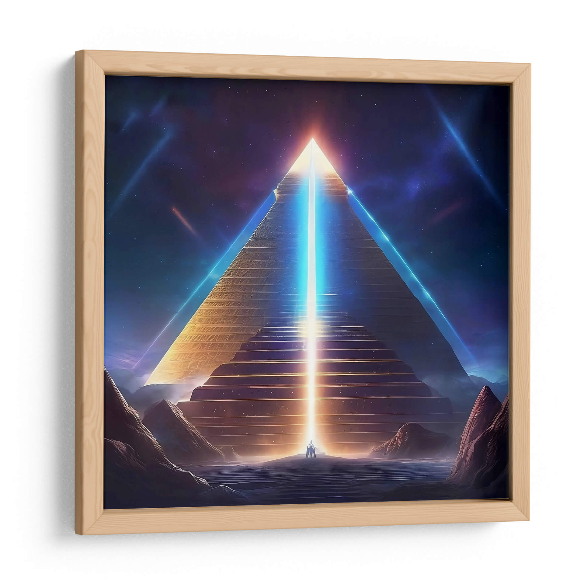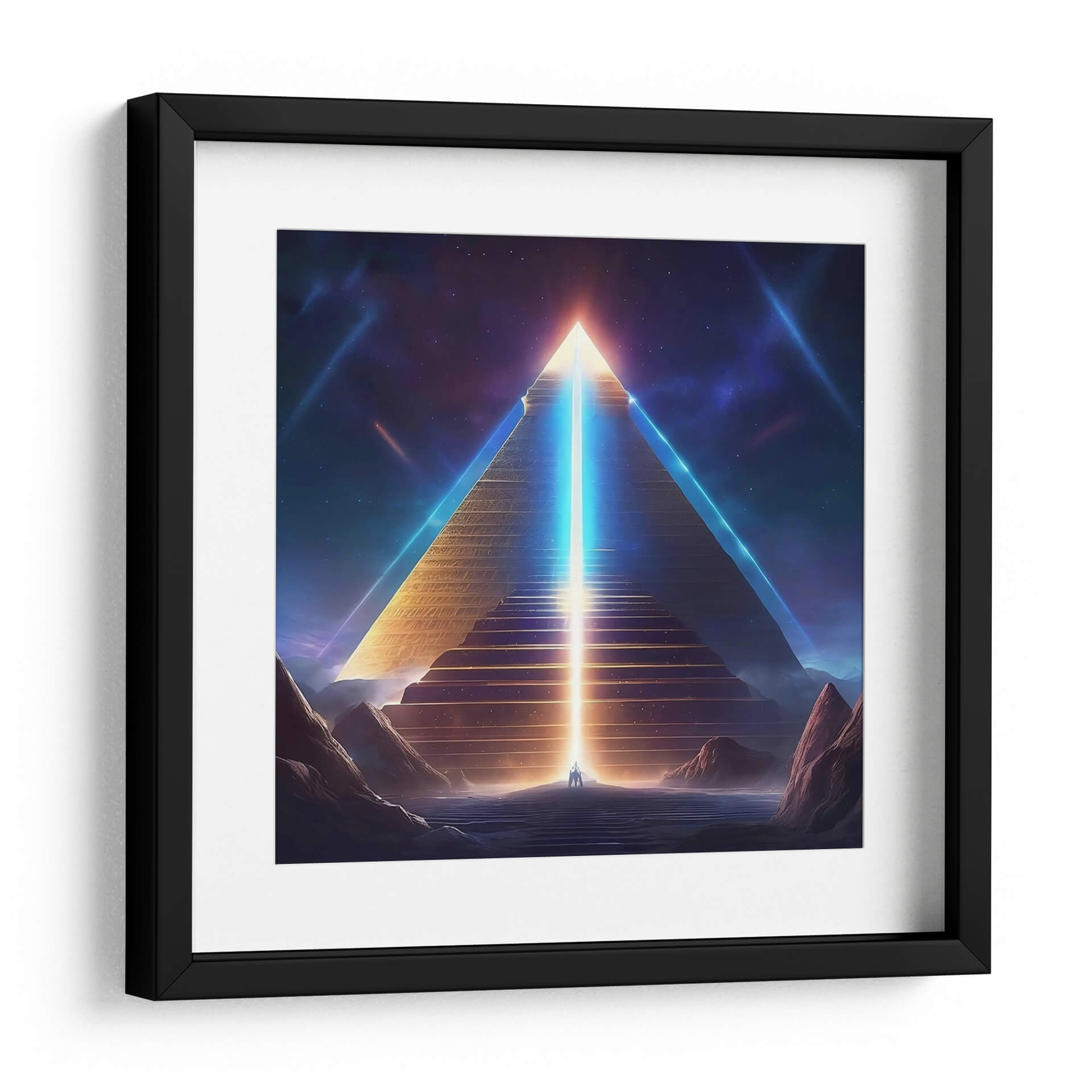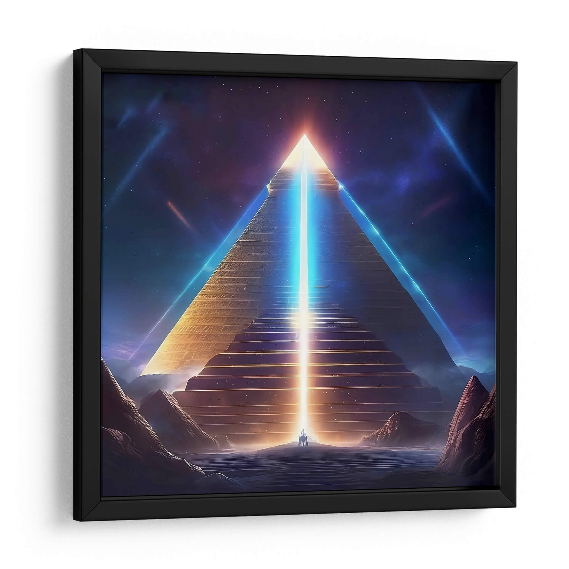 Adéntrate en lo desconocido con "Pirámide Central", una obra de arte digital que evoca misterio y trascendencia. Esta imponente estructura piramidal, bañada en tonos dorados y azules profundos, se erige como un portal hacia una dimensión superior. La luz cegadora que emana de su cúspide ilumina una escalera ascendente, invitando a la reflexión sobre el viaje personal y la búsqueda de la iluminación. Rodeada por un paisaje cósmico salpicado de estrellas y nebulosas, la obra sugiere un viaje espiritual o una conexión con lo universal. Los rayos de energía azul que rodean la pirámide añaden un toque de ciencia ficción y misticismo, creando una atmósfera cautivadora. Este cuadro decorativo es perfecto para inspirar y transformar cualquier espacio, desde una sala de estar moderna hasta una oficina de diseño. Su composición audaz y su paleta de colores vibrantes lo convierten en un punto focal inolvidable. "Pirámide Central" es más que una imagen; es una invitación a explorar los límites de tu imaginación y tu propia existencia. Añade un toque de intriga cósmica y sabiduría ancestral a tu hogar u oficina con esta pieza única que promete conversaciones y asombro.