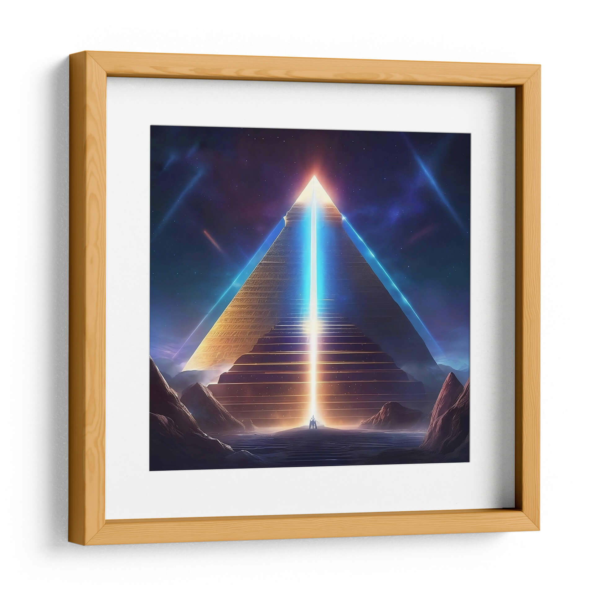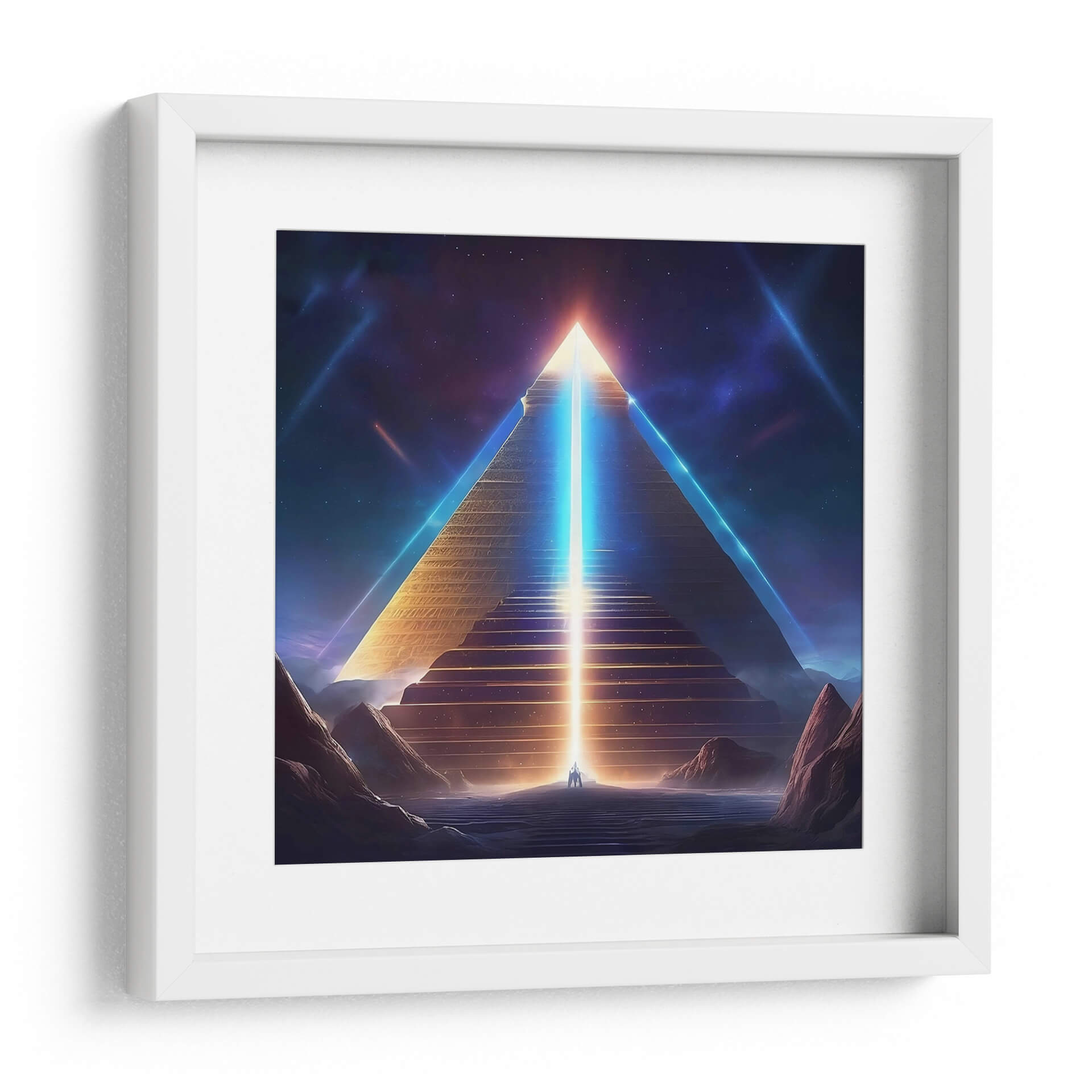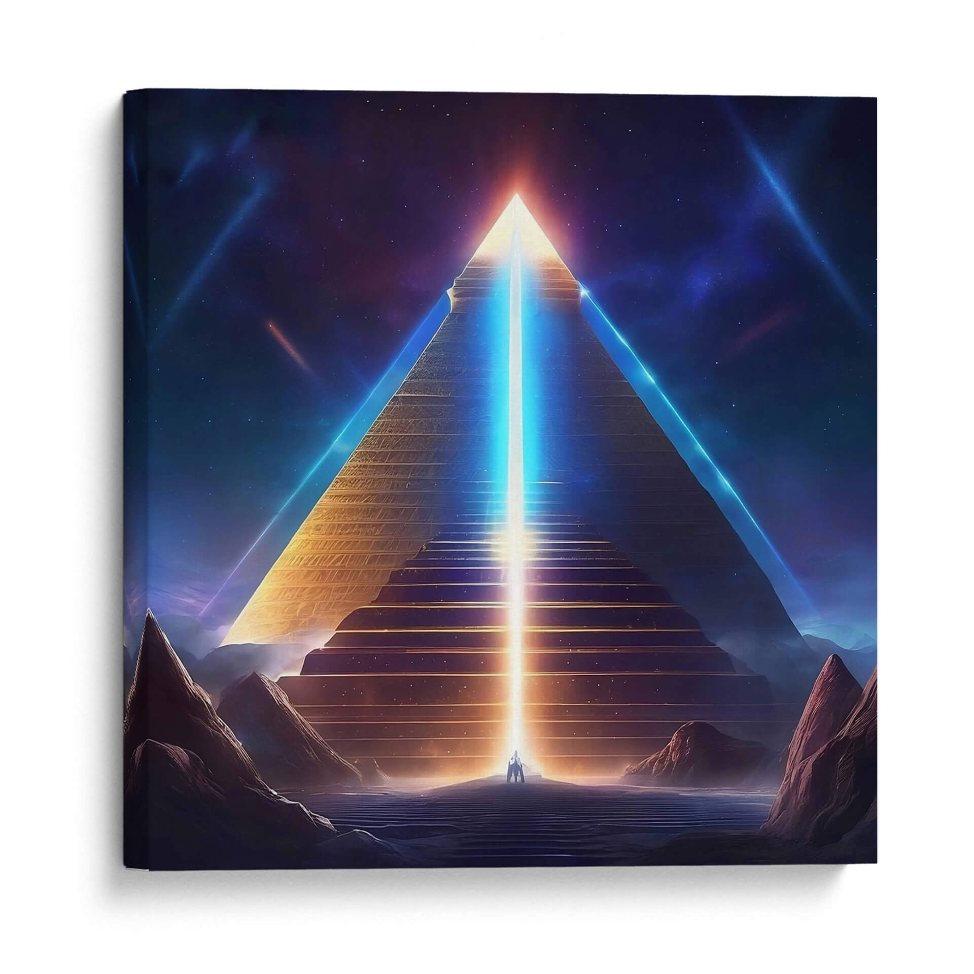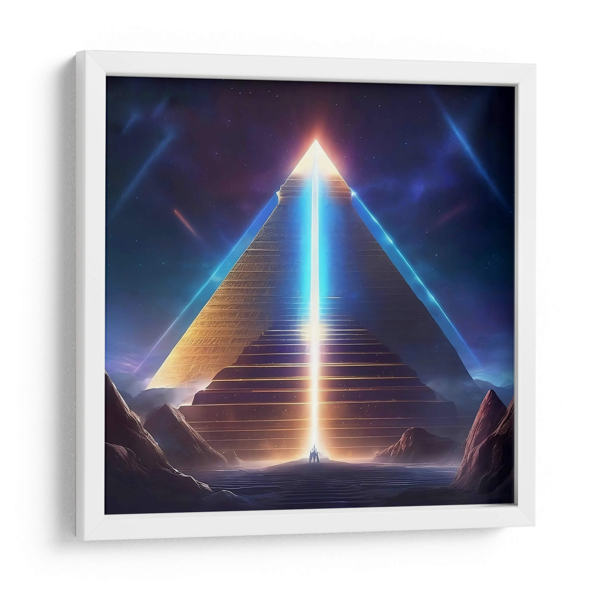 Adéntrate en lo desconocido con "Pirámide Central", una obra de arte digital que evoca misterio y trascendencia. Esta imponente estructura piramidal, bañada en tonos dorados y azules profundos, se erige como un portal hacia una dimensión superior. La luz cegadora que emana de su cúspide ilumina una escalera ascendente, invitando a la reflexión sobre el viaje personal y la búsqueda de la iluminación. Rodeada por un paisaje cósmico salpicado de estrellas y nebulosas, la obra sugiere un viaje espiritual o una conexión con lo universal. Los rayos de energía azul que rodean la pirámide añaden un toque de ciencia ficción y misticismo, creando una atmósfera cautivadora. Este cuadro decorativo es perfecto para inspirar y transformar cualquier espacio, desde una sala de estar moderna hasta una oficina de diseño. Su composición audaz y su paleta de colores vibrantes lo convierten en un punto focal inolvidable. "Pirámide Central" es más que una imagen; es una invitación a explorar los límites de tu imaginación y tu propia existencia. Añade un toque de intriga cósmica y sabiduría ancestral a tu hogar u oficina con esta pieza única que promete conversaciones y asombro.