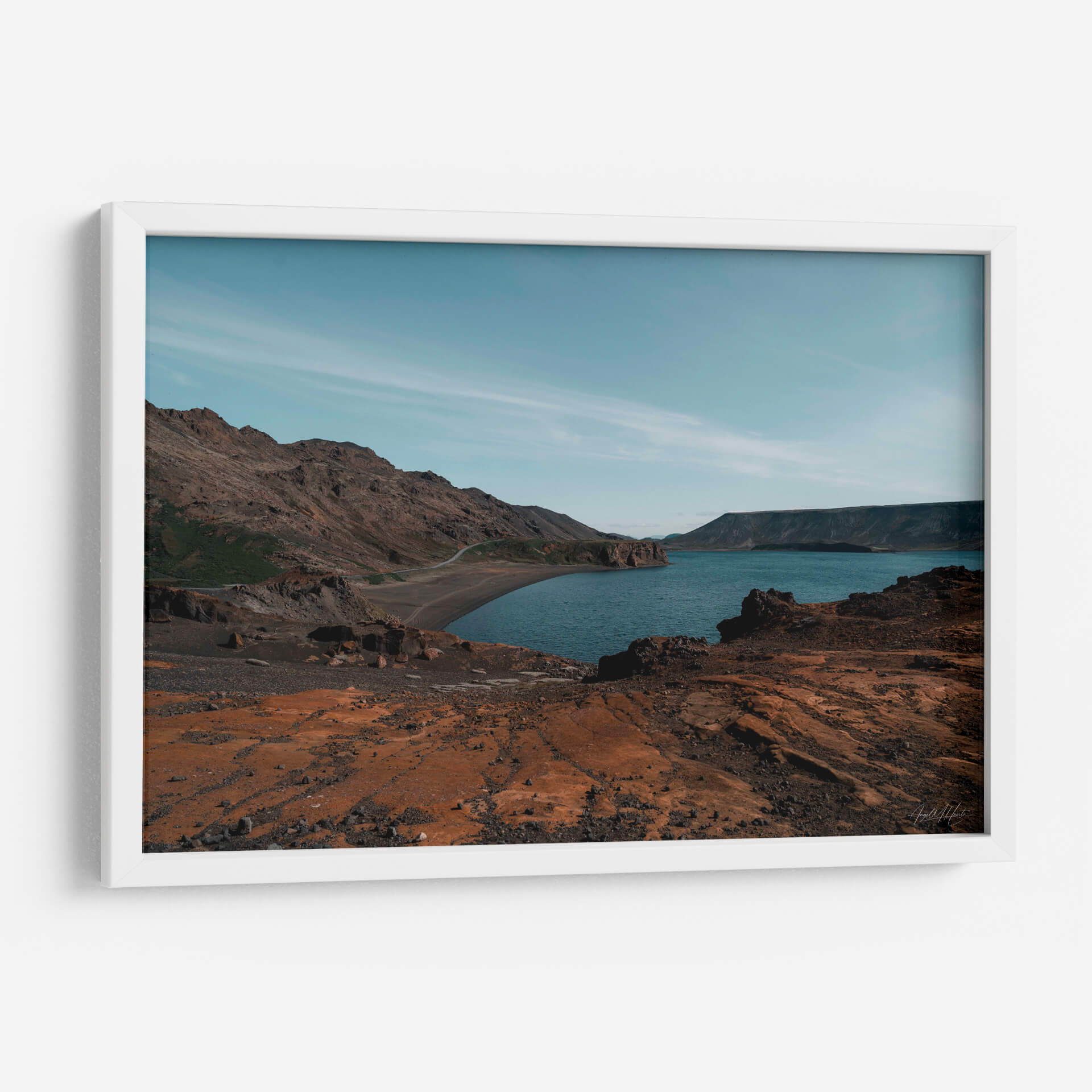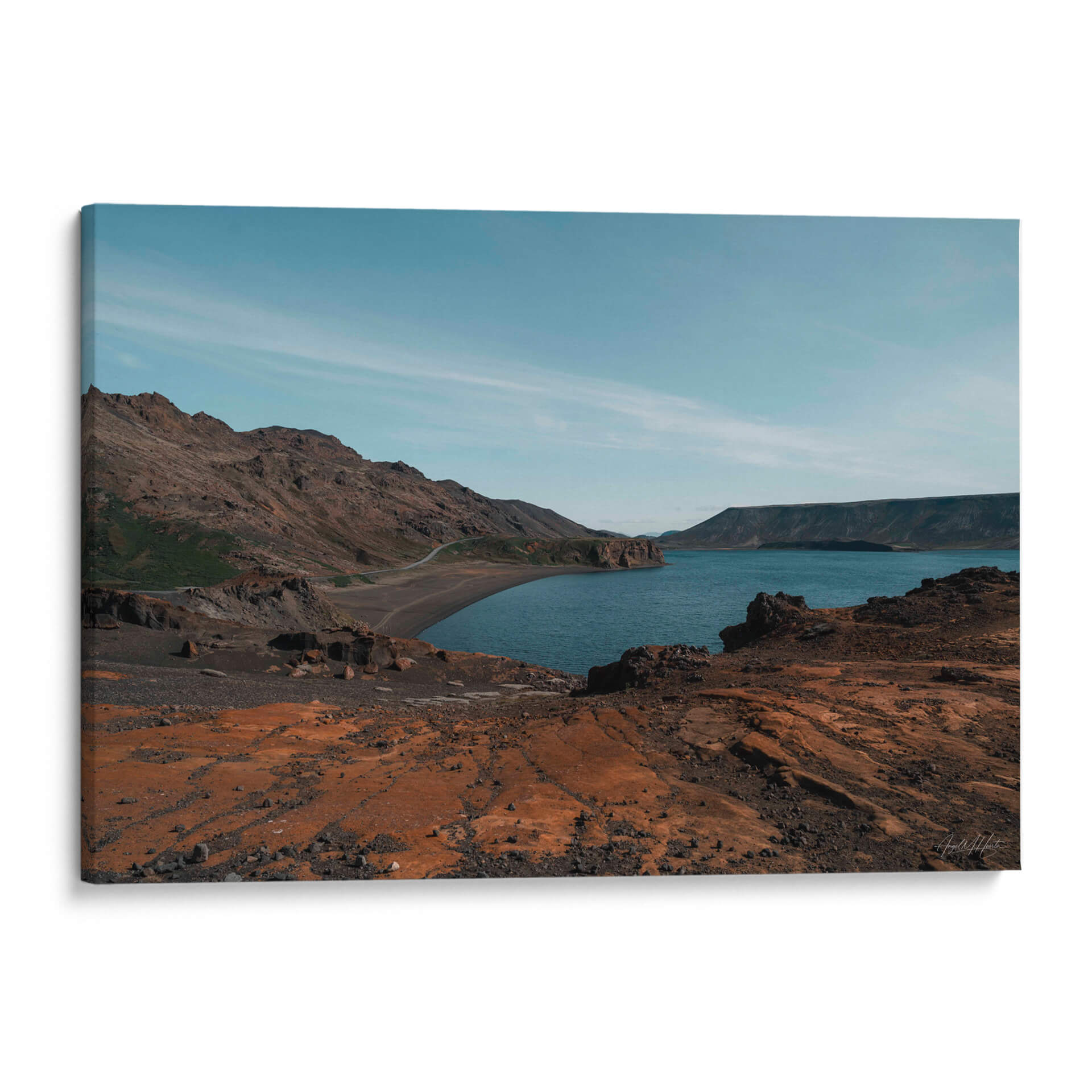 Sumérgete en la serenidad y la vastedad de "Planeta Rojo", una obra maestra fotográfica del artista Ángel M. Huerta. Este cuadro decorativo captura un paisaje dramático y casi extraterrestre, donde la tierra ocre se encuentra con las aguas profundas de un lago sereno bajo un cielo azul infinito. La composición, con sus imponentes montañas y el camino sinuoso que se adentra en la distancia, evoca una sensación de aventura y exploración, invitando a la contemplación de la belleza indómita de la naturaleza. Los tonos cálidos de la tierra, contrastando con el frío azul del agua y el cielo, crean una paleta de colores rica y cautivadora que añade profundidad y carácter a cualquier espacio. Ideal para salones modernos, estudios o cualquier lugar donde se desee añadir un toque de misterio y tranquilidad. Este cuadro decorativo es perfecto para aquellos que aprecian la fotografía de paisajes con una perspectiva única y un toque de surrealismo. Añade una ventana a otro mundo a tu hogar u oficina y deja que "Planeta Rojo" inspire conversaciones y momentos de reflexión.